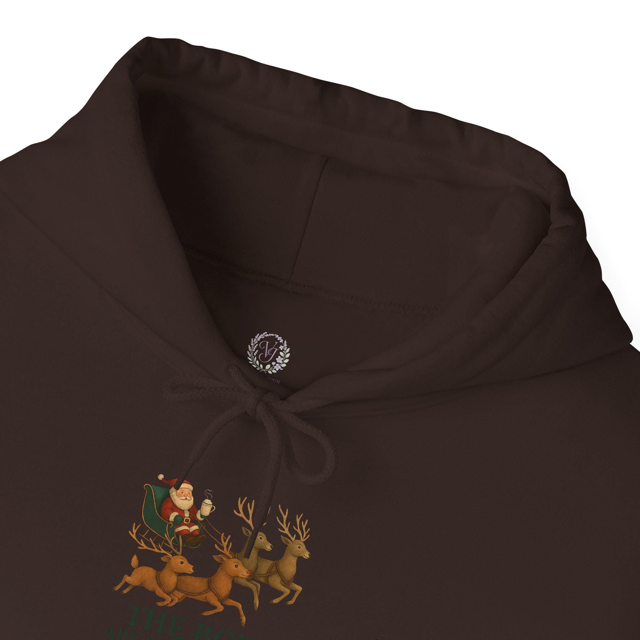 Get into the holiday spirit with this Santa and Reindeer themed Hoodie. Featuring retro holiday vibes and holiday humor, this cozy sweatshirt is perfect for decking the halls and spreading festive cheer. Suitable for adults looking to add a touch of fun to their holiday wardrobe.