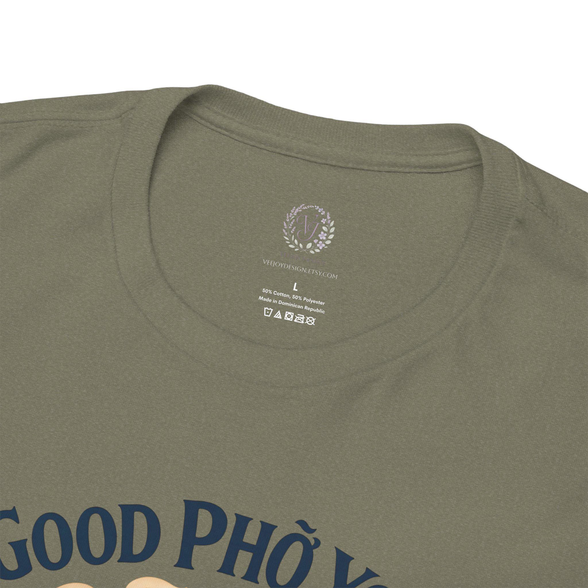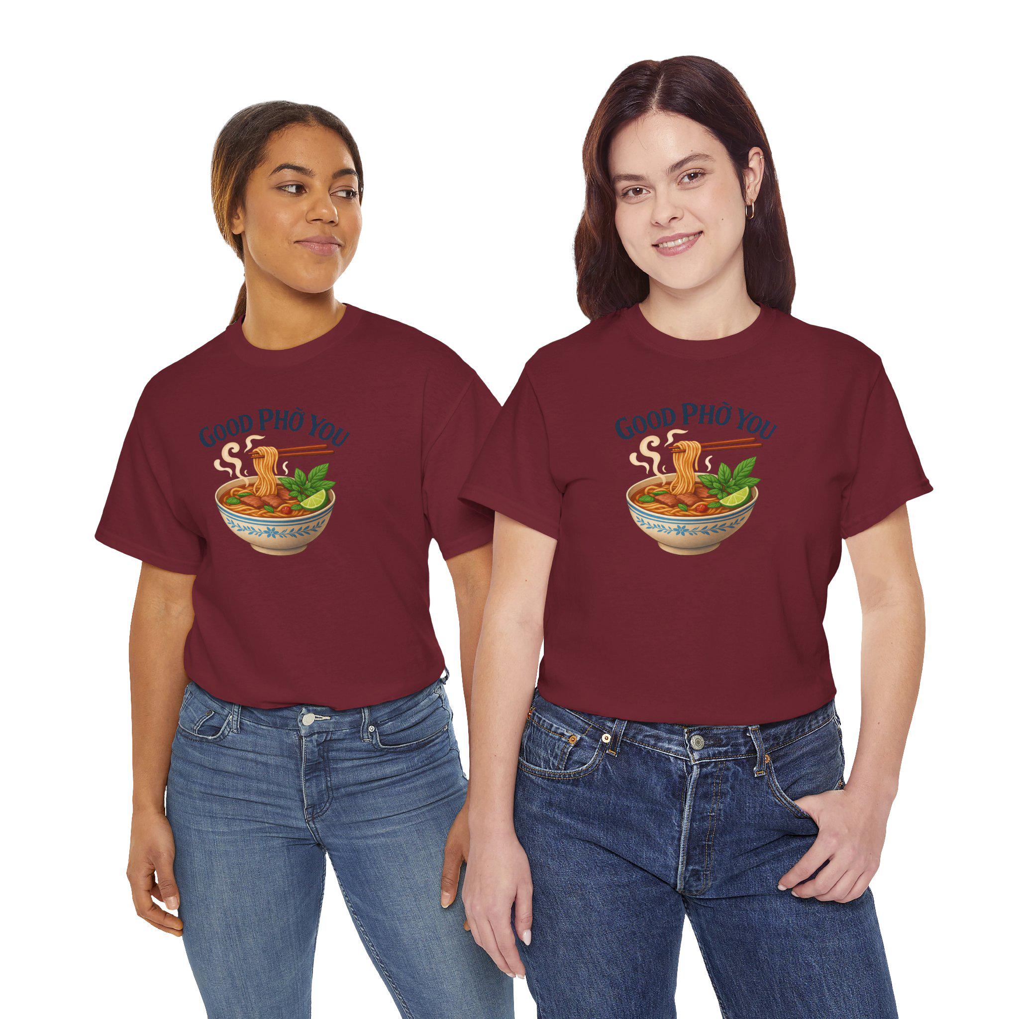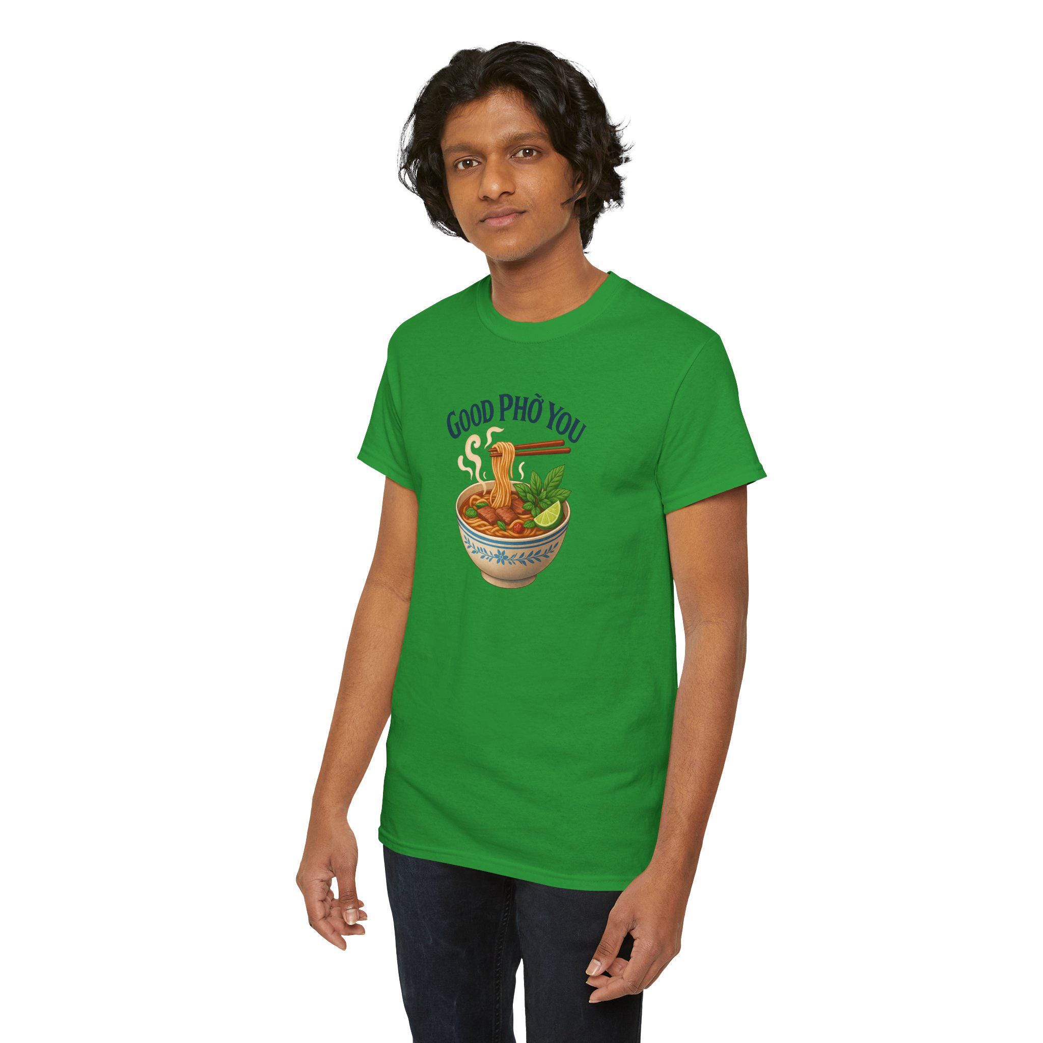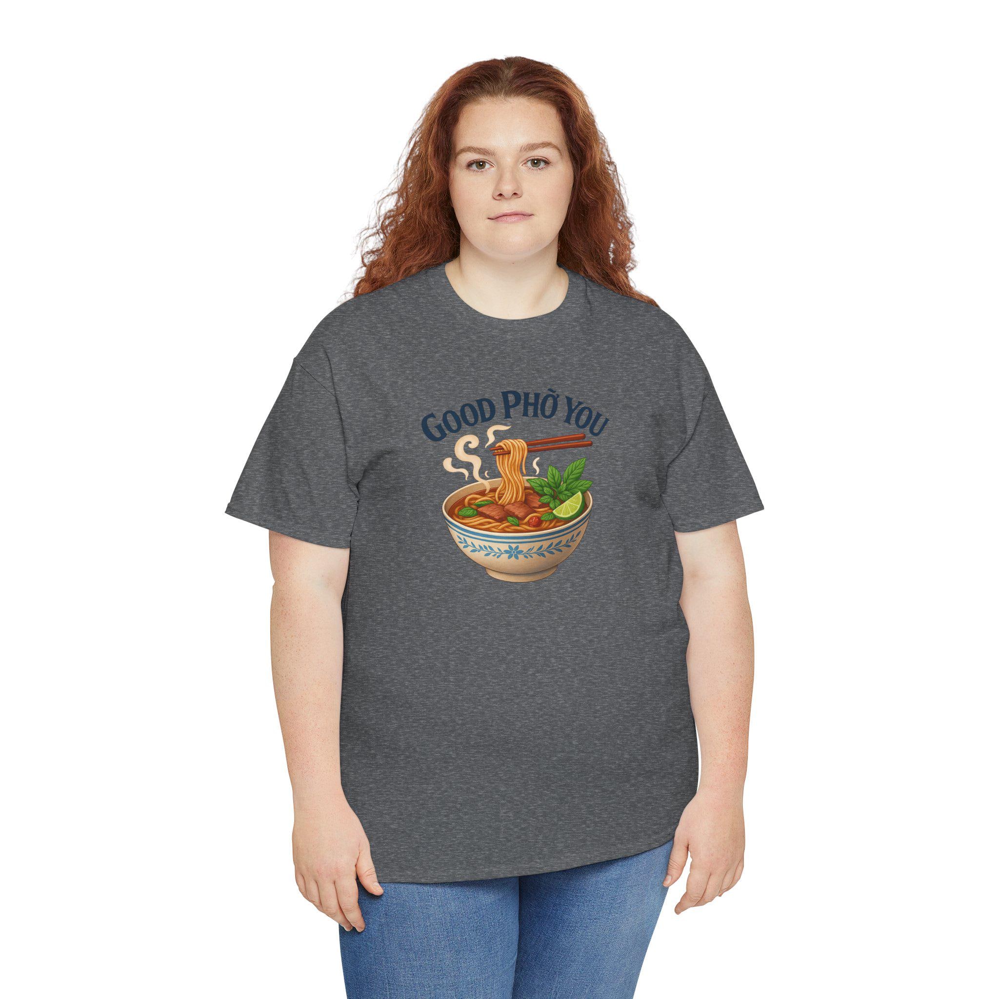 This tee brings a sly, food-loving wink to lazy afternoons and late-night takeout runs. Soft, substantial cotton holds the graphic with clean lines, so the cheeky "Good Pho You" message stays bold wash after wash. Wear it to noodle shops, weekend markets, or while experimenting with broth at home — it feels lived-in from the first wear and ages with character. The relaxed, classic fit layers easily under a jacket or over a long-sleeve for cooler nights. It’s for people who laugh at puns, collect new restaurant recommendations, and treat every meal like a small celebration.