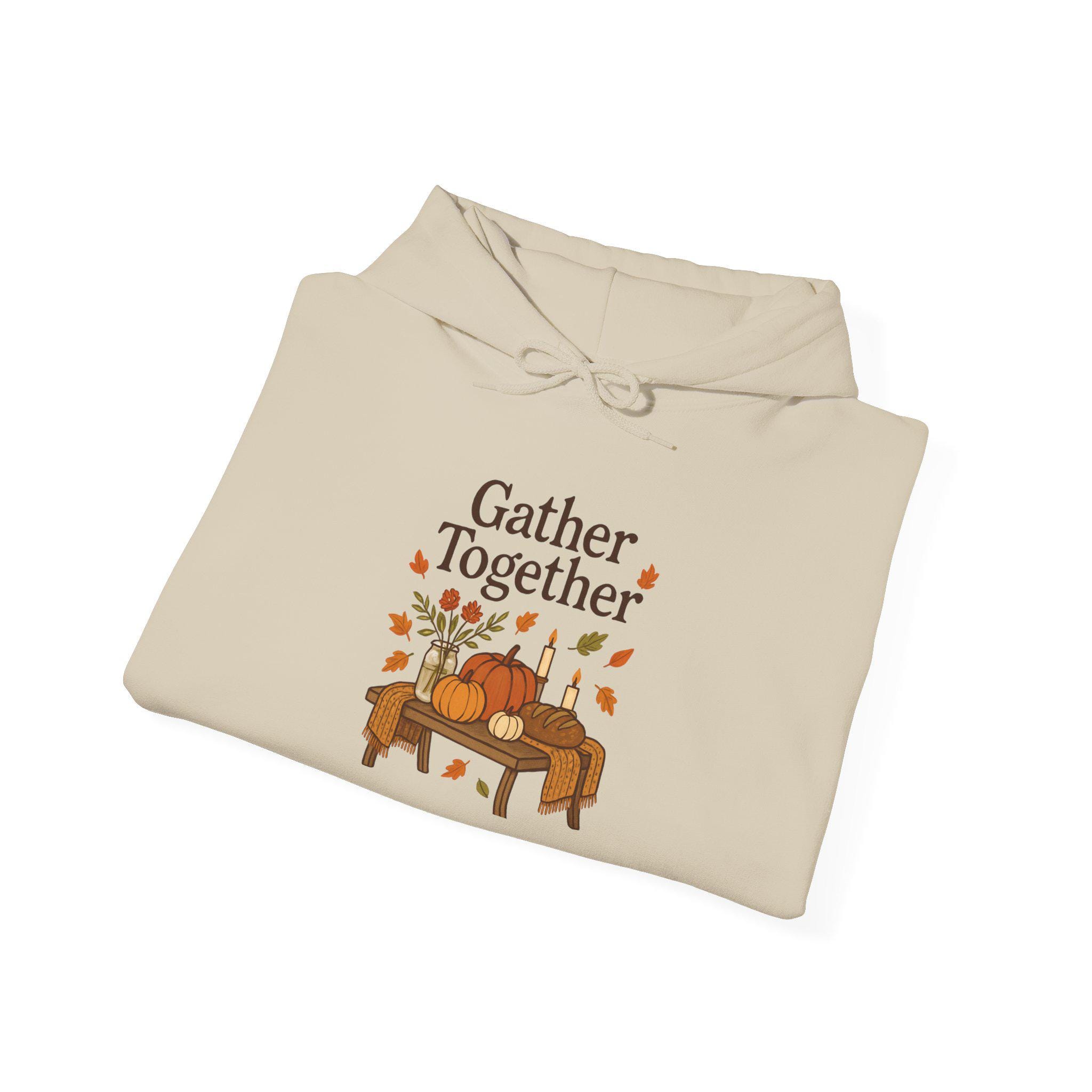 A cozy, softly structured hoodie that invites slow mornings, shared meals, and warm conversations. The center-front illustration — a rustic table laden with pumpkins, warm tones, and falling leaves — whispers of harvest evenings and family-style gatherings. Wear it over a tee or layer under a wool coat; the roomy kangaroo pocket keeps hands warm and the double-lined hood tucks in like a small refuge on windy walks. Subtle, durable details — color-matched drawcord, tear-away label, and a smooth cotton/poly blend — make it comfortable to live in from crisp fall outings to quiet nights by the stove. It feels like settling into a favorite chair: familiar, gentle, and made for togetherness.