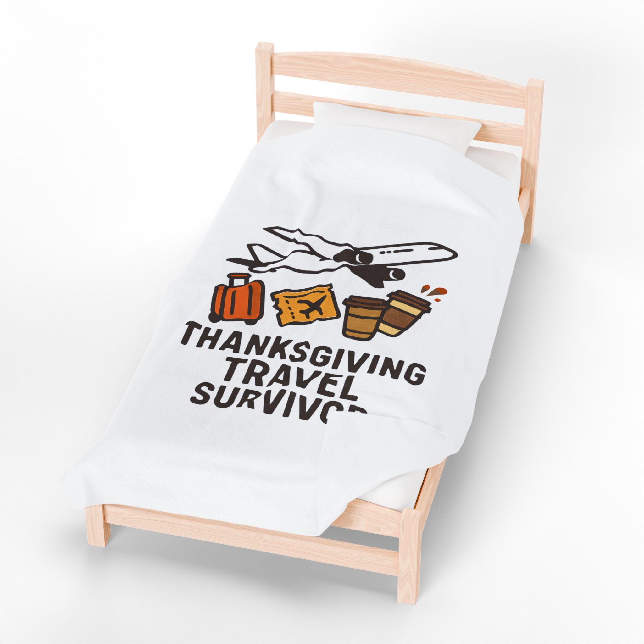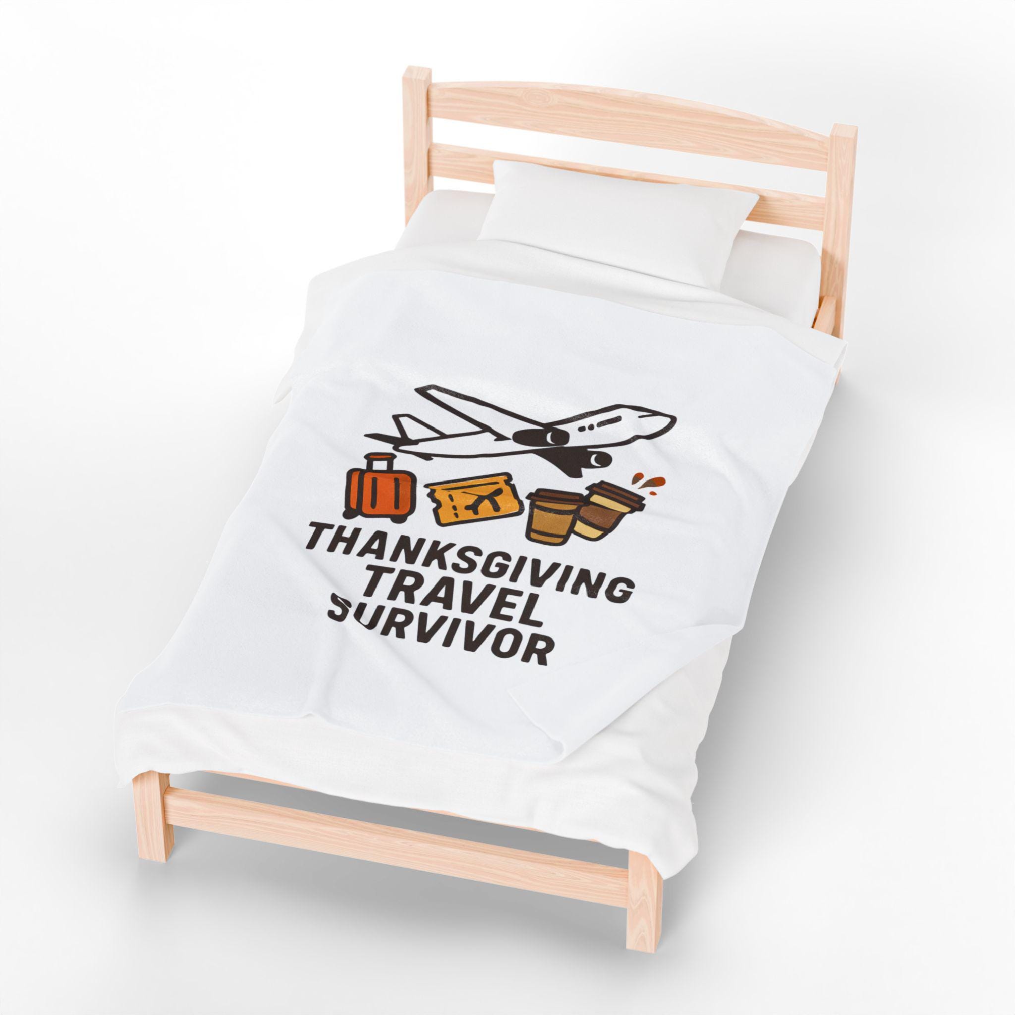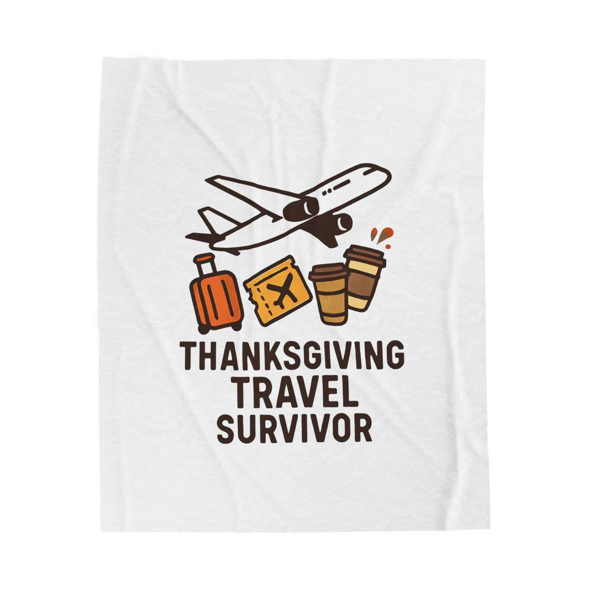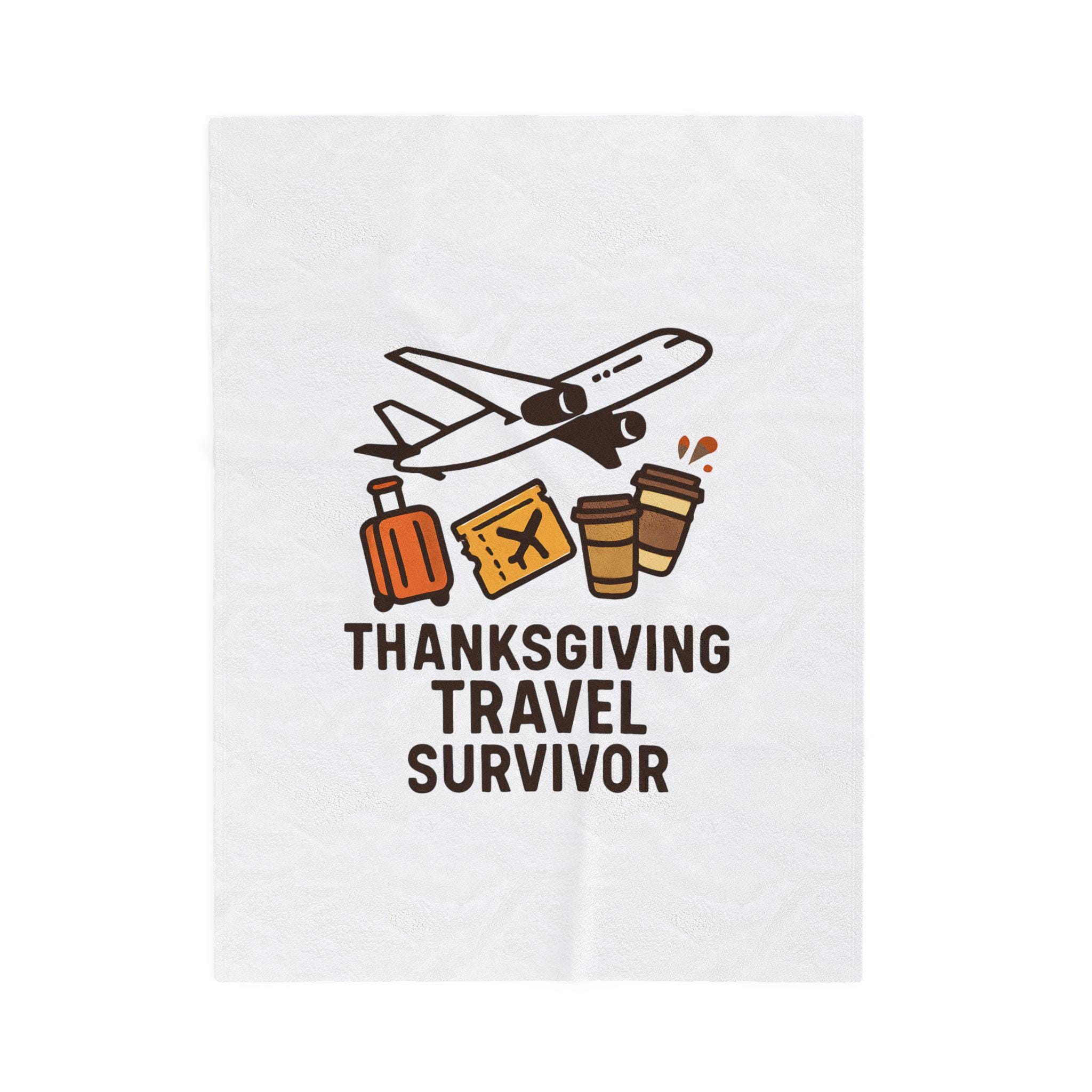 Wrap yourself in a soft, cozy layer that remembers the chaos and comedy of holiday travel. This plush blanket features a cheerful travel-themed design—an airplane, luggage, coffee cups and a stamped boarding pass—paired with the playful line “Thanksgiving Travel Survivor.” It’s lightweight enough to carry on the go, yet substantial enough to curl up under while recovering from long lines, layovers, or that late-night arrival. The smooth, velveteen surface makes the print pop in rich color on one side, while the medium-heavy weight keeps you comfortably warm without overheating. Tuck it over your shoulders on the couch, drape it over a suitcase for a quick photo op at the gate, or bring it along for a familiar, comforting reminder after a hectic holiday trip.