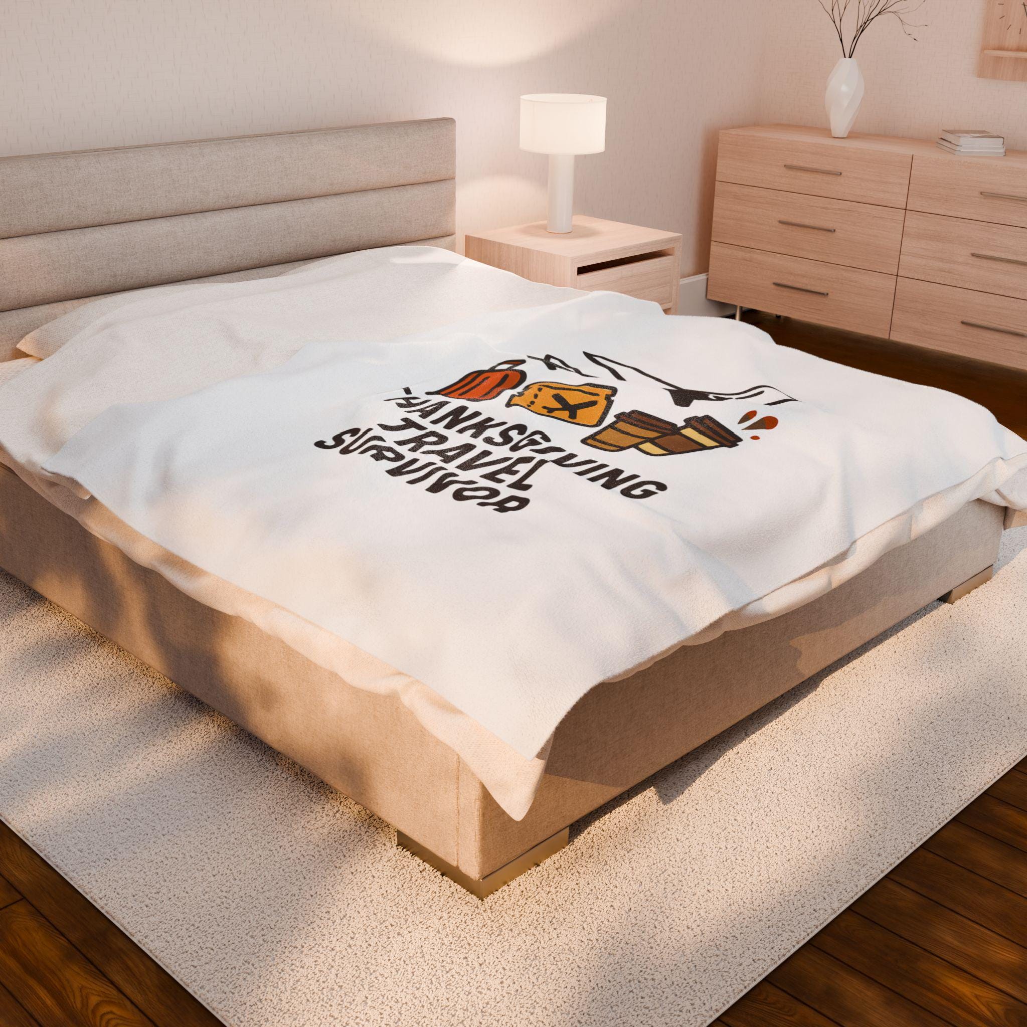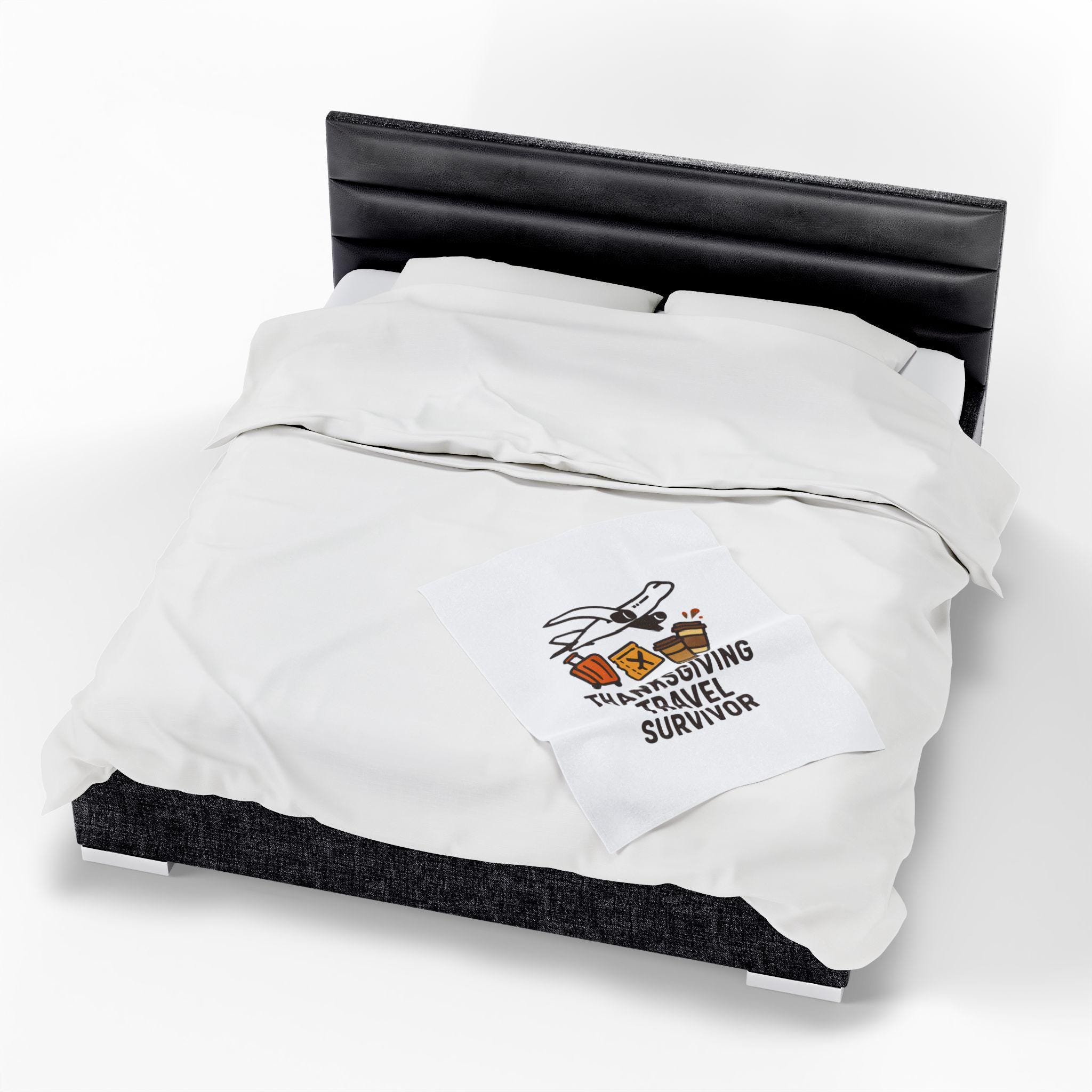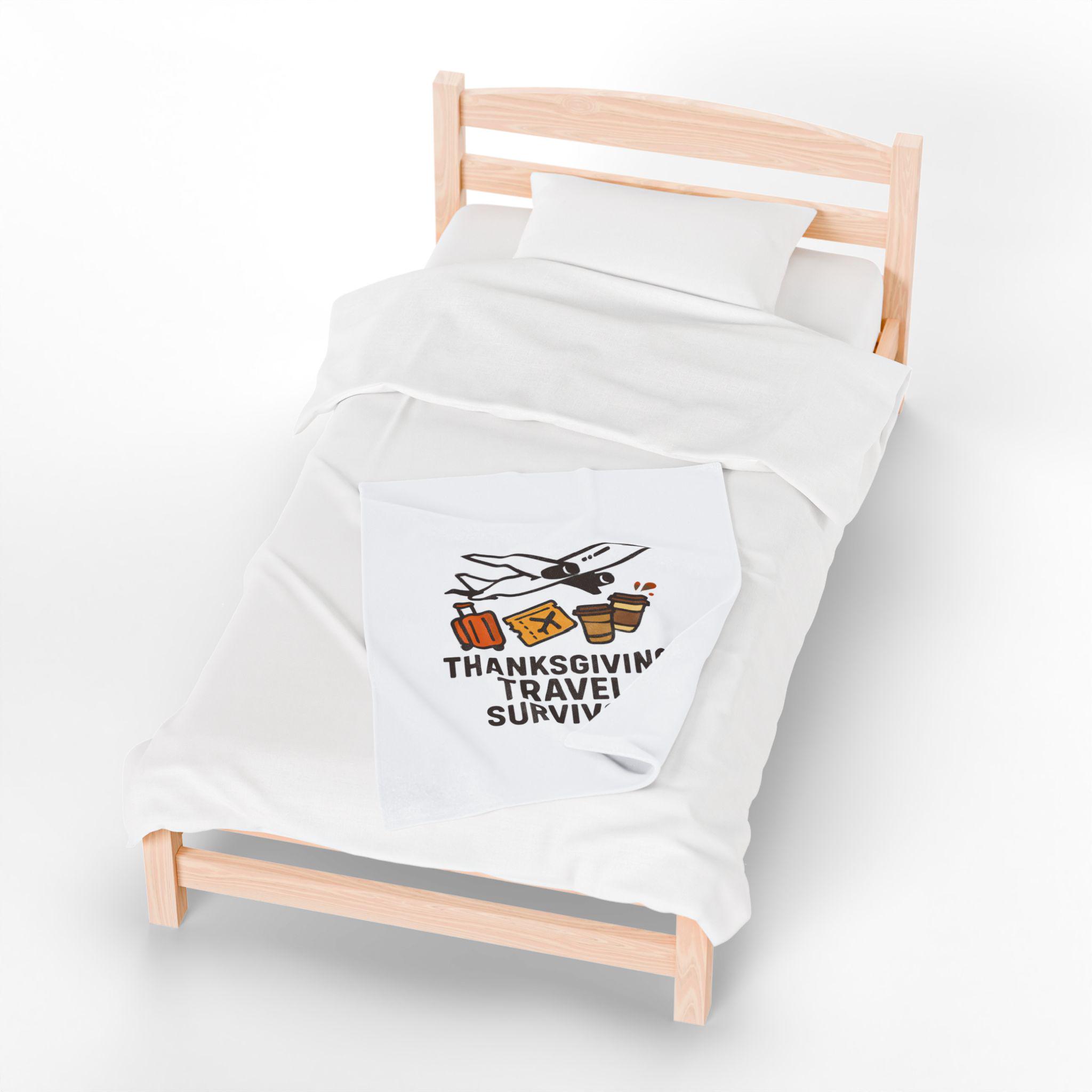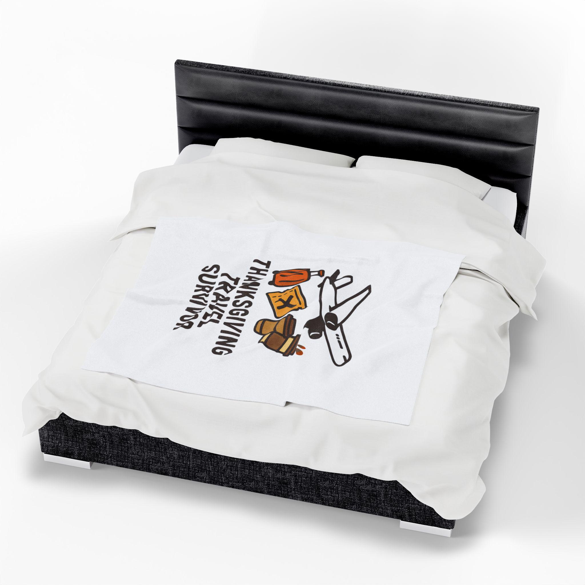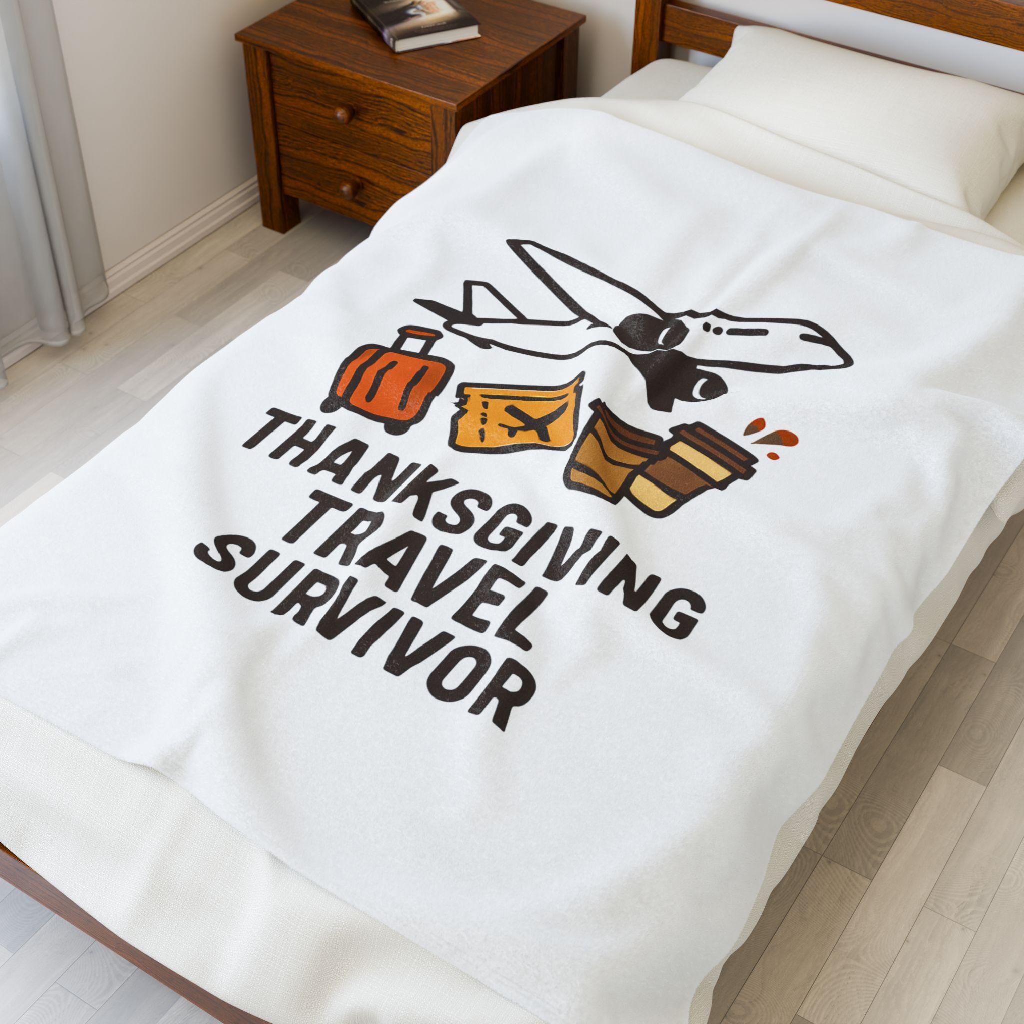 Wrap yourself in a soft, cozy layer that remembers the chaos and comedy of holiday travel. This plush blanket features a cheerful travel-themed design—an airplane, luggage, coffee cups and a stamped boarding pass—paired with the playful line “Thanksgiving Travel Survivor.” It’s lightweight enough to carry on the go, yet substantial enough to curl up under while recovering from long lines, layovers, or that late-night arrival. The smooth, velveteen surface makes the print pop in rich color on one side, while the medium-heavy weight keeps you comfortably warm without overheating. Tuck it over your shoulders on the couch, drape it over a suitcase for a quick photo op at the gate, or bring it along for a familiar, comforting reminder after a hectic holiday trip.