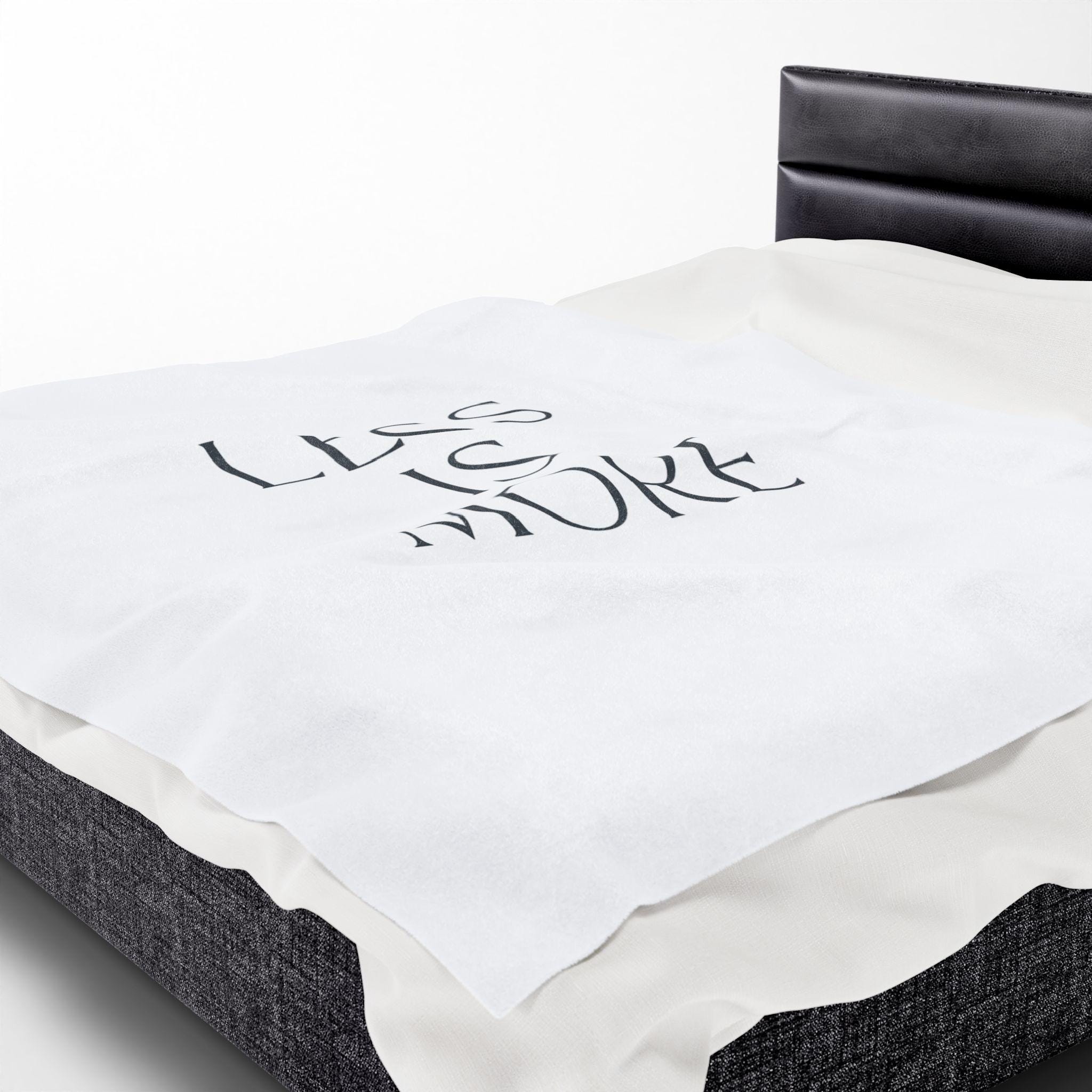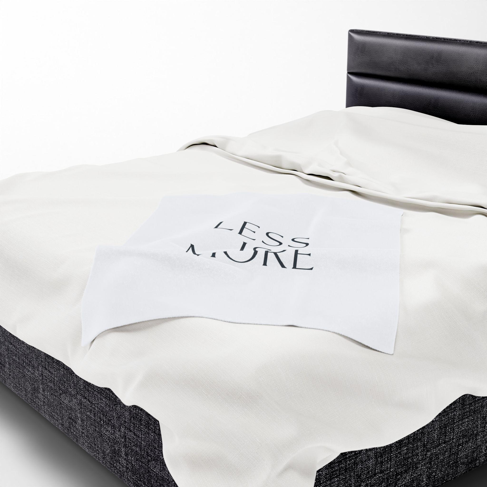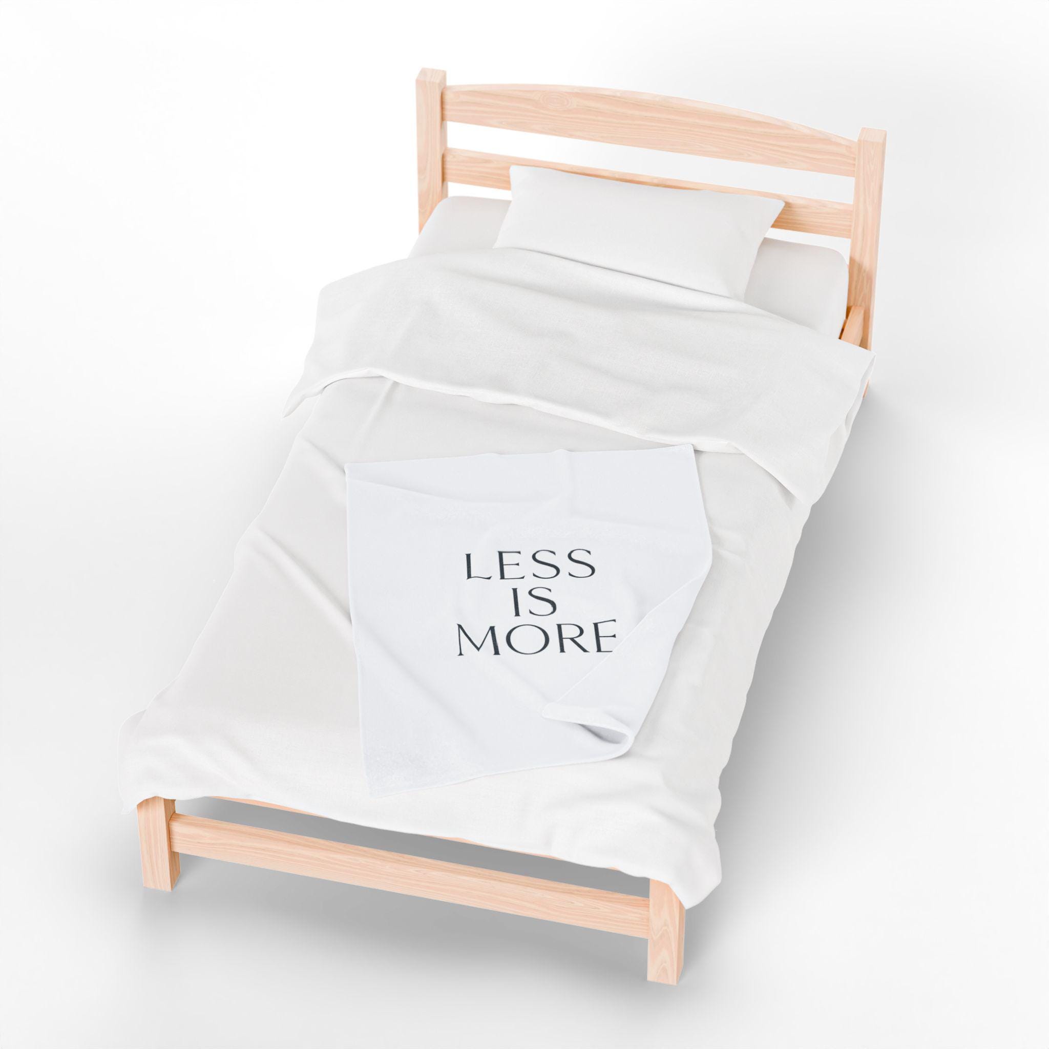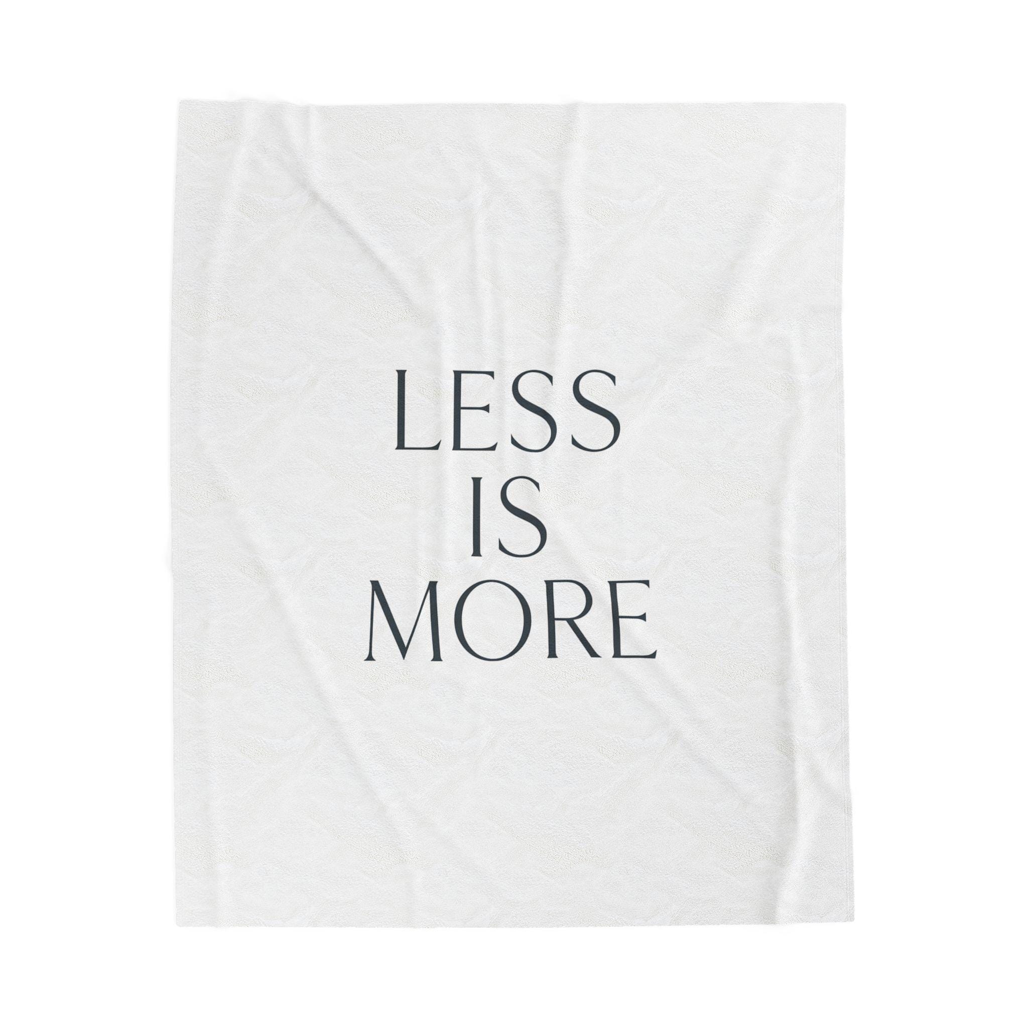Soft, quietly stylish velveteen blanket printed with a minimalist “LESS IS MORE” message. The medium-weight plush feels warm without weight, draping easily over shoulders or the end of a bed. Subtle topstitching reinforces the edges so this blanket stays neat through repeated use. Its clean white field and refined type make it a calm accent in a modern living room, a cozy layer for late-night reading, or a gentle backdrop during slow weekend mornings. Designed for adults who appreciate simple, intentional interiors and tactile comfort.