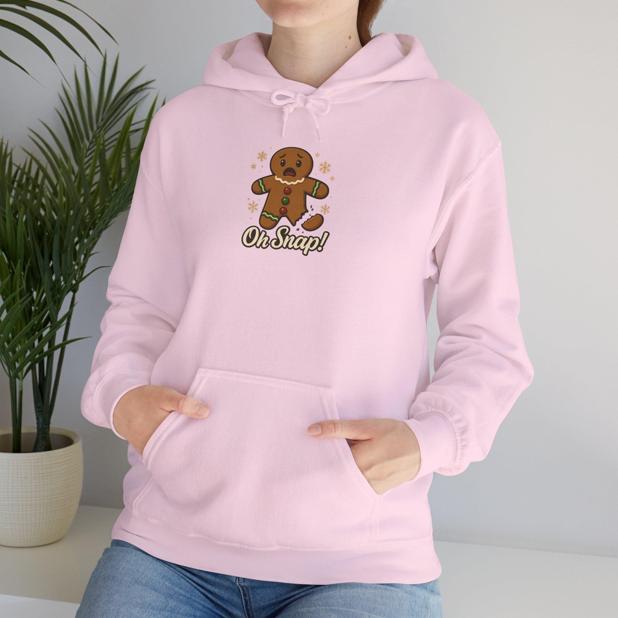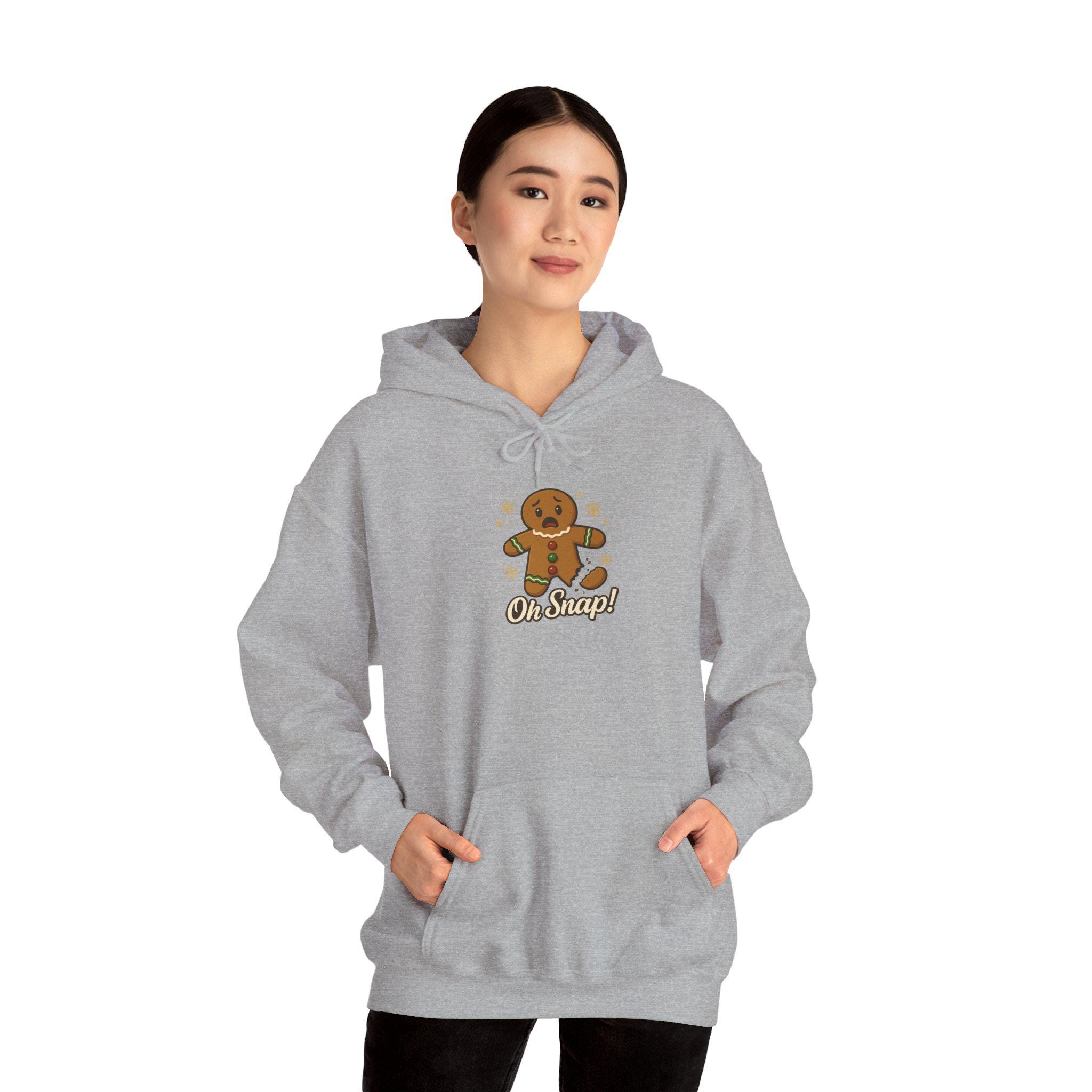 This cozy holiday sweatshirt brings a wink of gingerbread mischief to cold evenings. The cheeky “Gingerbread, Gingerbread...Oh Snap!” design sits bold on a soft, medium-weight hooded pullover that moves easily from cookie exchanges to late-night carol runs. It feels like slipping into a warm kitchen glow — cinnamon in the air, a laugh at the table — and keeps your hands tucked in the roomy pouch while the double-lined hood shields against winter wind. Durable printing and optional embroidery keep the playful graphic crisp through washes, so the joke and the warmth last through the season.
