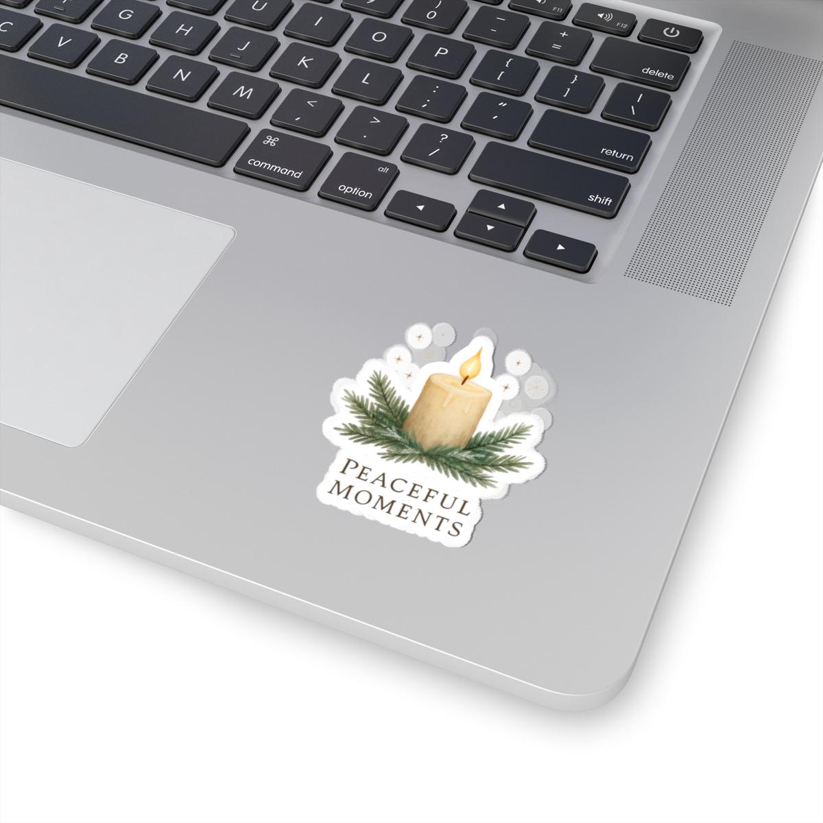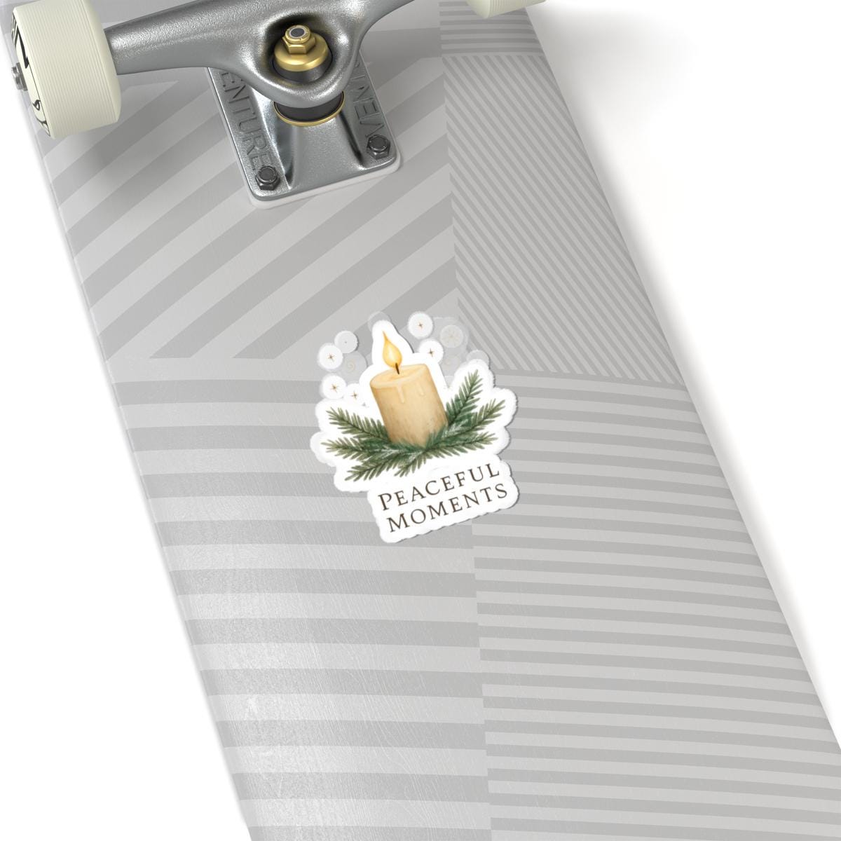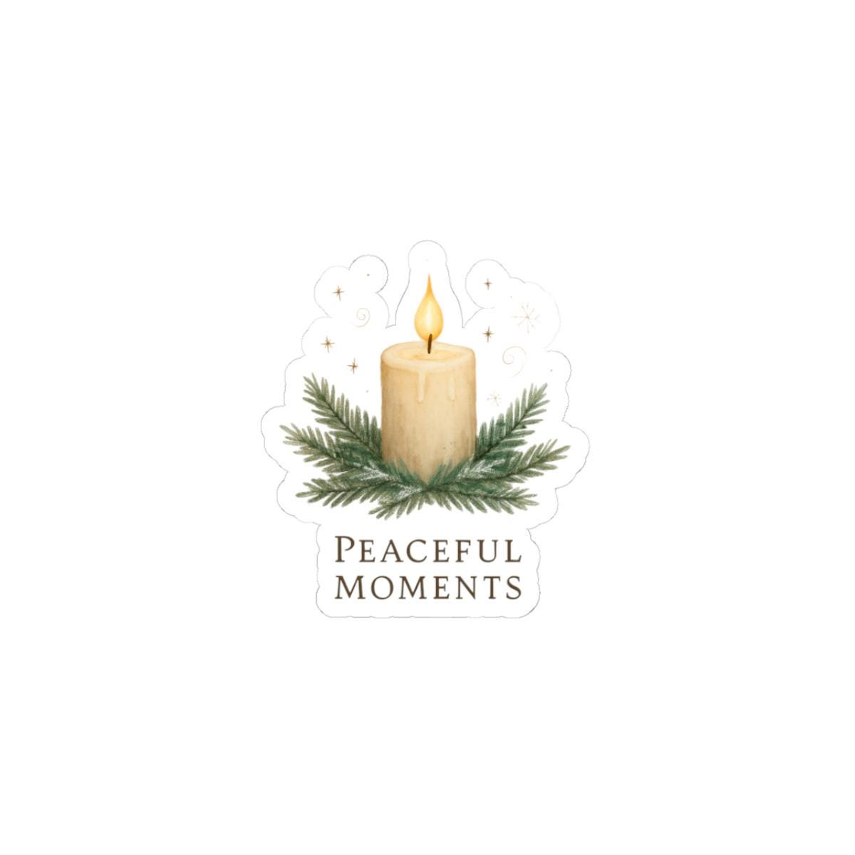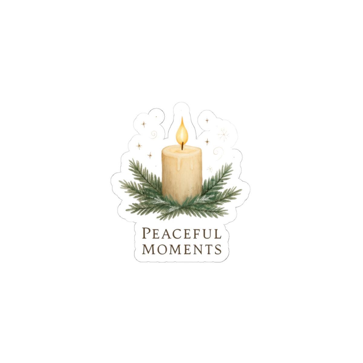 Soft candlelight, cool pine needles, and a hush that makes time slow down. This glossy kiss-cut sticker captures a warm, hand-painted candle tucked into evergreen sprigs with tiny star-like sparks floating above. It sticks smoothly to laptops, journals, windows, or water bottles to bring a quiet, comforting accent wherever you go. The subtle watercolor tones and the understated “Peaceful Moments” lettering make it feel like a small reminder to breathe, settle in, and savor a gentle pause in a busy day.