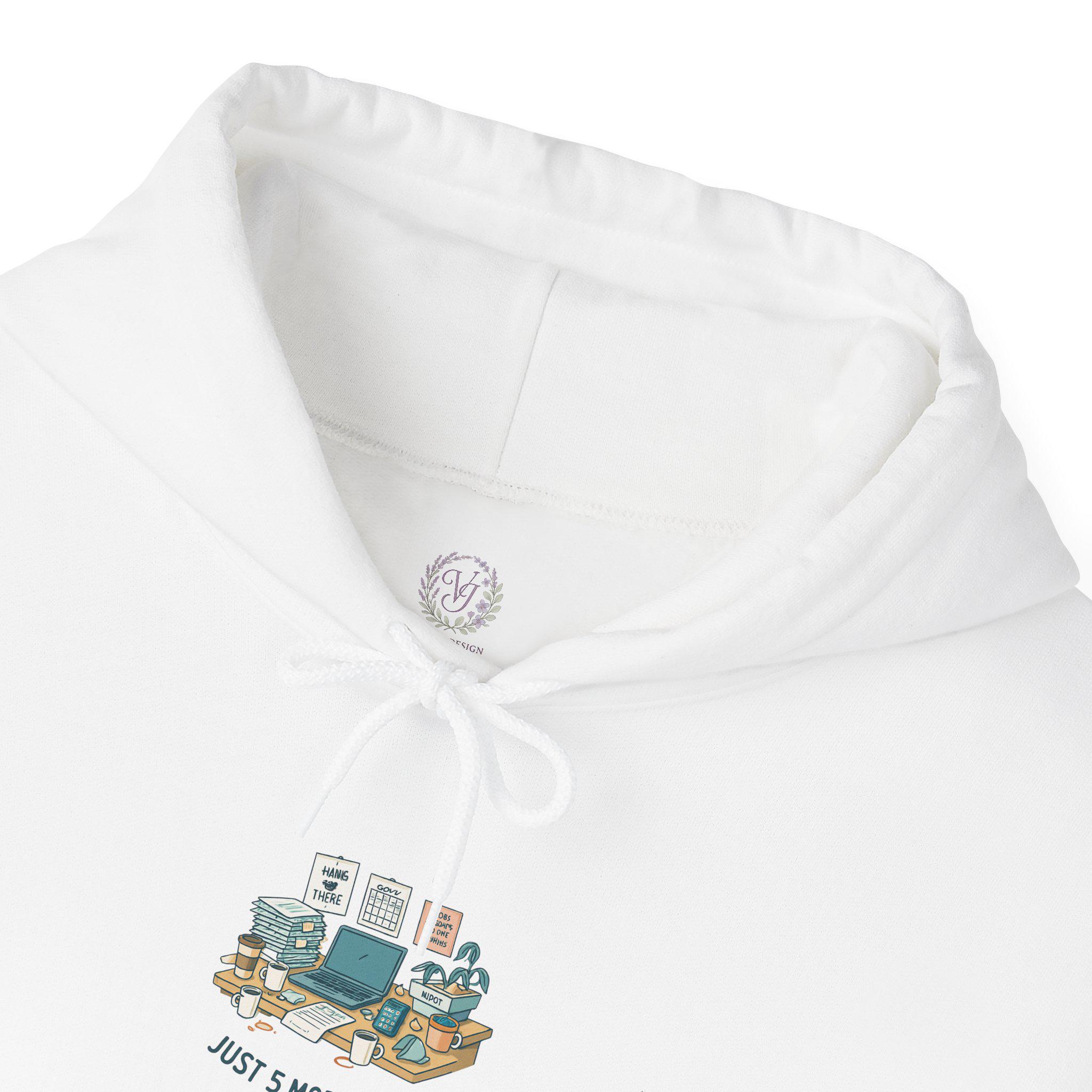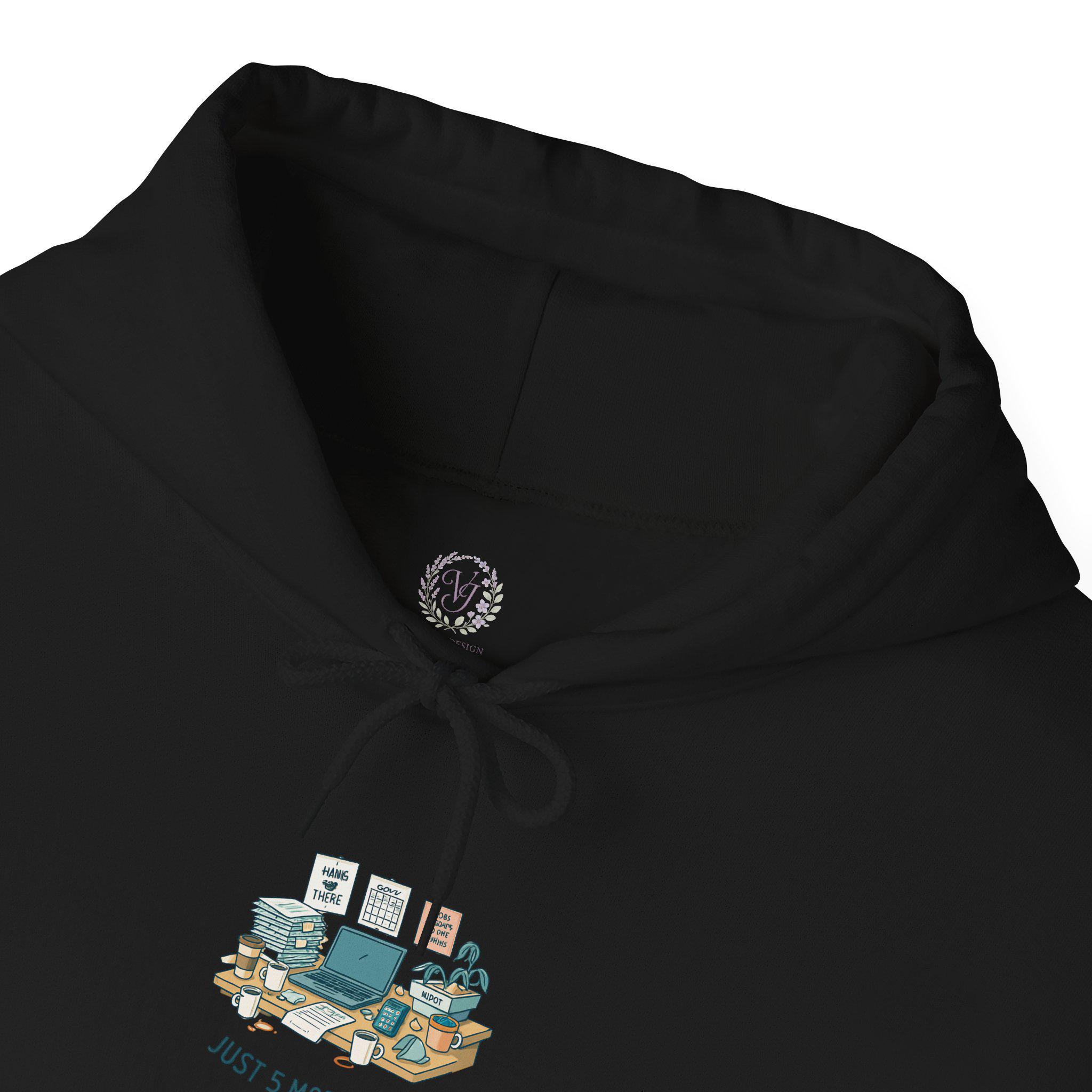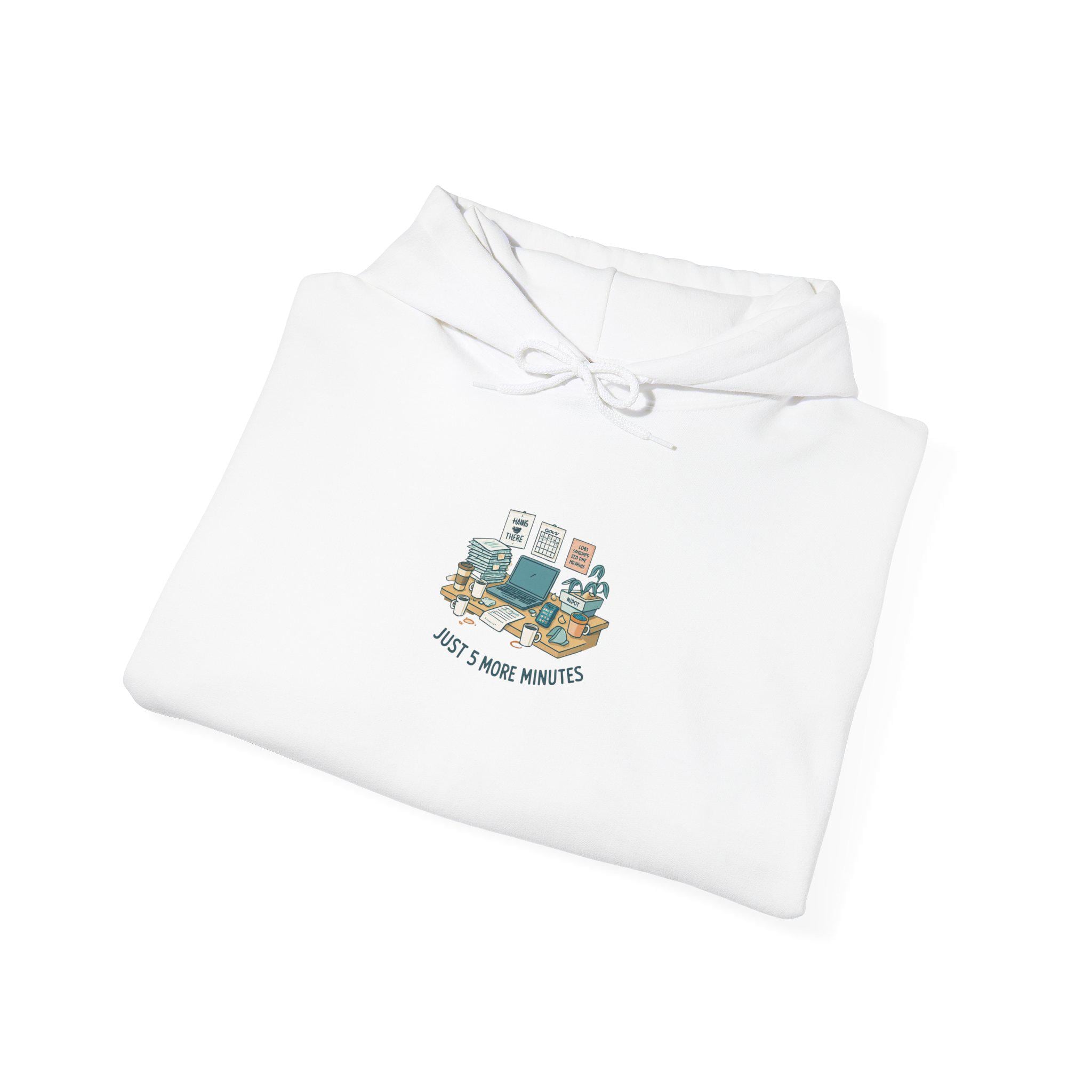 Slide into something that feels like a warm, quiet pause. This mid-weight hoodie wraps you in soft, cozy fabric while a small, whimsical illustration rests over the heart — a sleepy living-room scene with the caption “Just 5 More Minutes.” It’s the kind of sweatshirt you reach for when the world slows down: morning slow-sips of coffee, late-night reading, or lounging through a weekend of nothing-in-particular. The pouch pocket keeps hands tucked and warm; the double-lined hood and color-matched drawcord give a neat, finished look. Ethically sourced fibers and durable printing methods mean the piece wears in, not out. This hoodie is gentle, honest, and quietly designed to be part of your everyday comfort ritual.