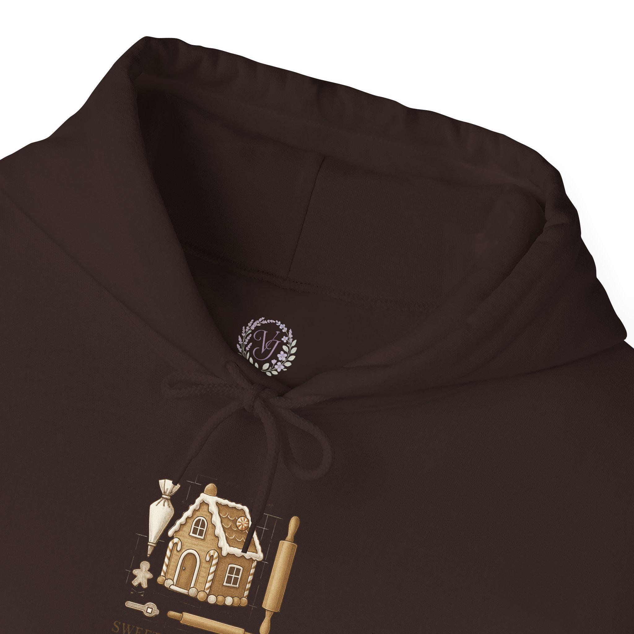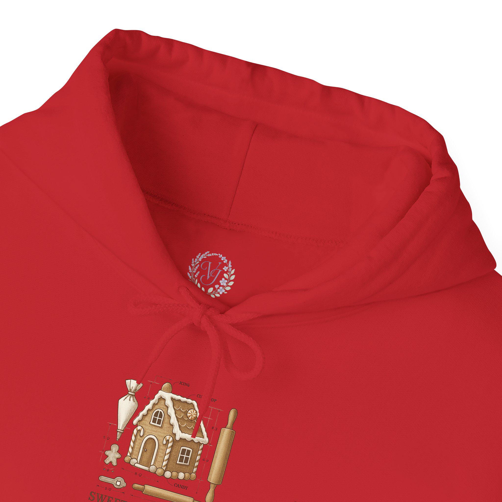 Wrap yourself in cozy nostalgia with this soft, mid-weight hooded sweatshirt featuring a charming gingerbread-house illustration and the playful phrase “Sweet Engineering.” The art blends warm browns and biscuit tones with tiny baking tools—rolling pin, whisk, cookie cutter—so the design feels like a quiet kitchen scene after flour-dusted hands have finished shaping dough. The roomy kangaroo pocket and double-lined hood add comfort for slow mornings, baking sessions, or holiday movie nights. This hoodie settles into your day like a warm mug on a cold counter—comfortable, familiar, and a little bit whimsical.