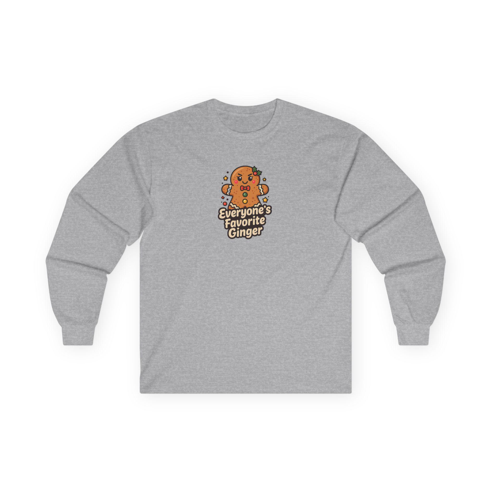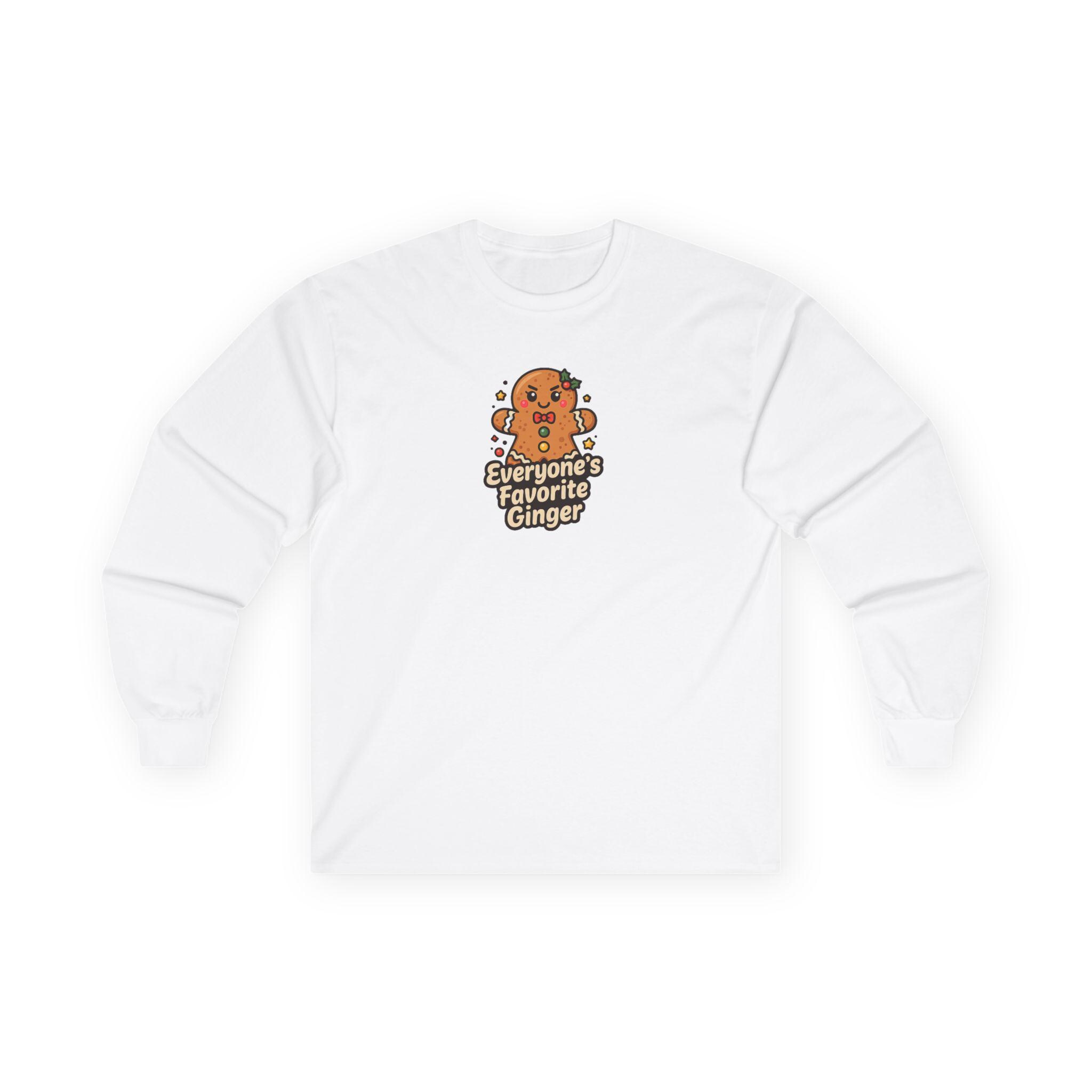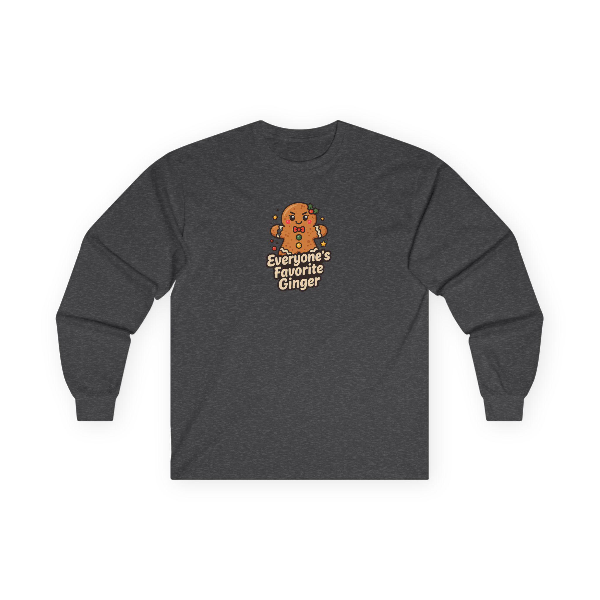 Soft, slightly worn-in cotton that feels like a childhood holiday memory. This long-sleeve tee features a cheeky “Everyone’s Favorite Ginger” gingerbread motif that brightens cold mornings and late-night cookie runs. The thicker, vintage-feel fabric and classic fit drape just right for bundled coffee shop walks or low-key family gatherings. Tubular knit construction keeps the silhouette clean and simple, while ribbed collar and shoulder tape hold their form through wash after wash. Wear it to holiday movie nights, tree-trimming sessions, or any cozy evening when you want a little festive humor without shouting for attention.