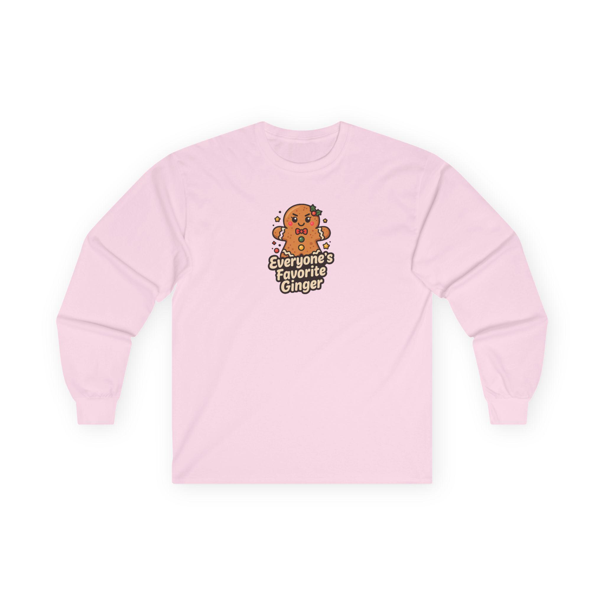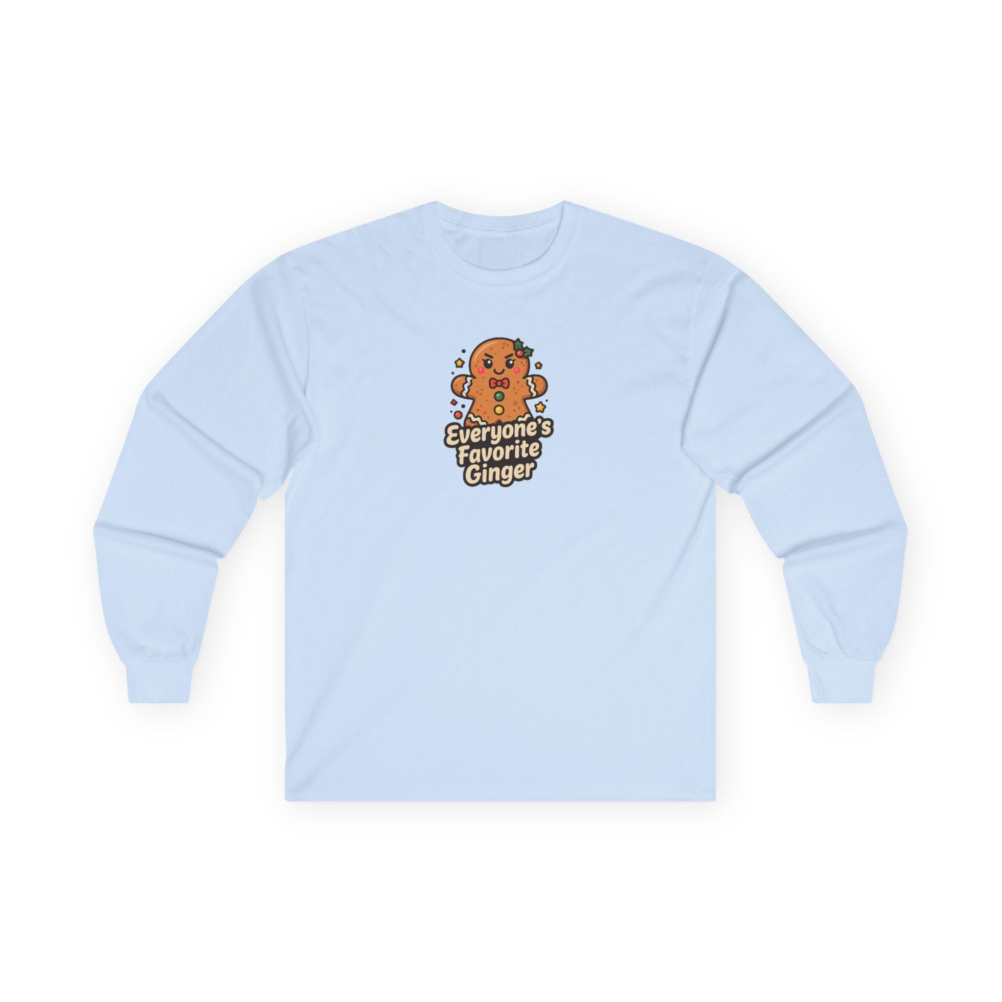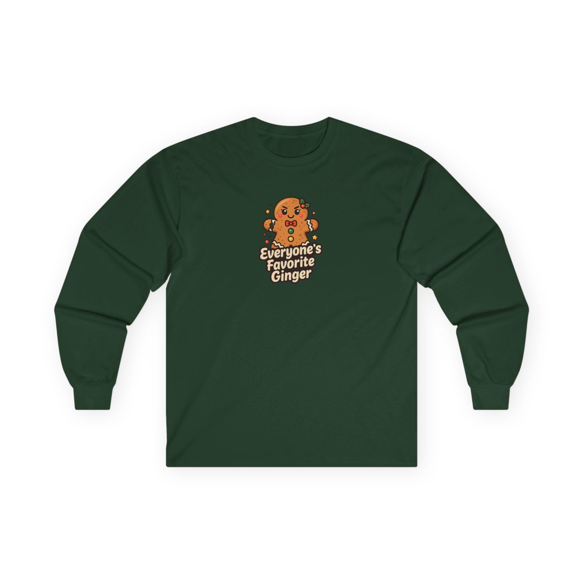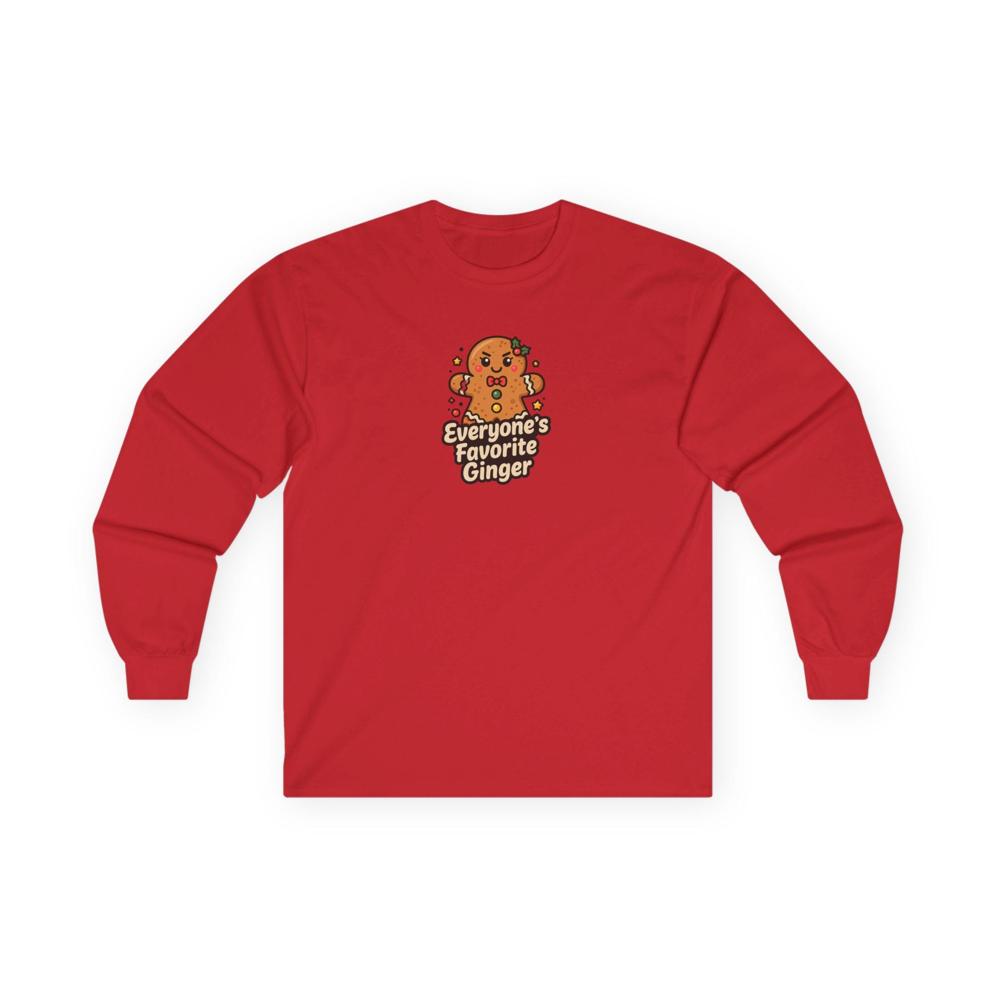 Soft, slightly worn-in cotton that feels like a childhood holiday memory. This long-sleeve tee features a cheeky “Everyone’s Favorite Ginger” gingerbread motif that brightens cold mornings and late-night cookie runs. The thicker, vintage-feel fabric and classic fit drape just right for bundled coffee shop walks or low-key family gatherings. Tubular knit construction keeps the silhouette clean and simple, while ribbed collar and shoulder tape hold their form through wash after wash. Wear it to holiday movie nights, tree-trimming sessions, or any cozy evening when you want a little festive humor without shouting for attention.