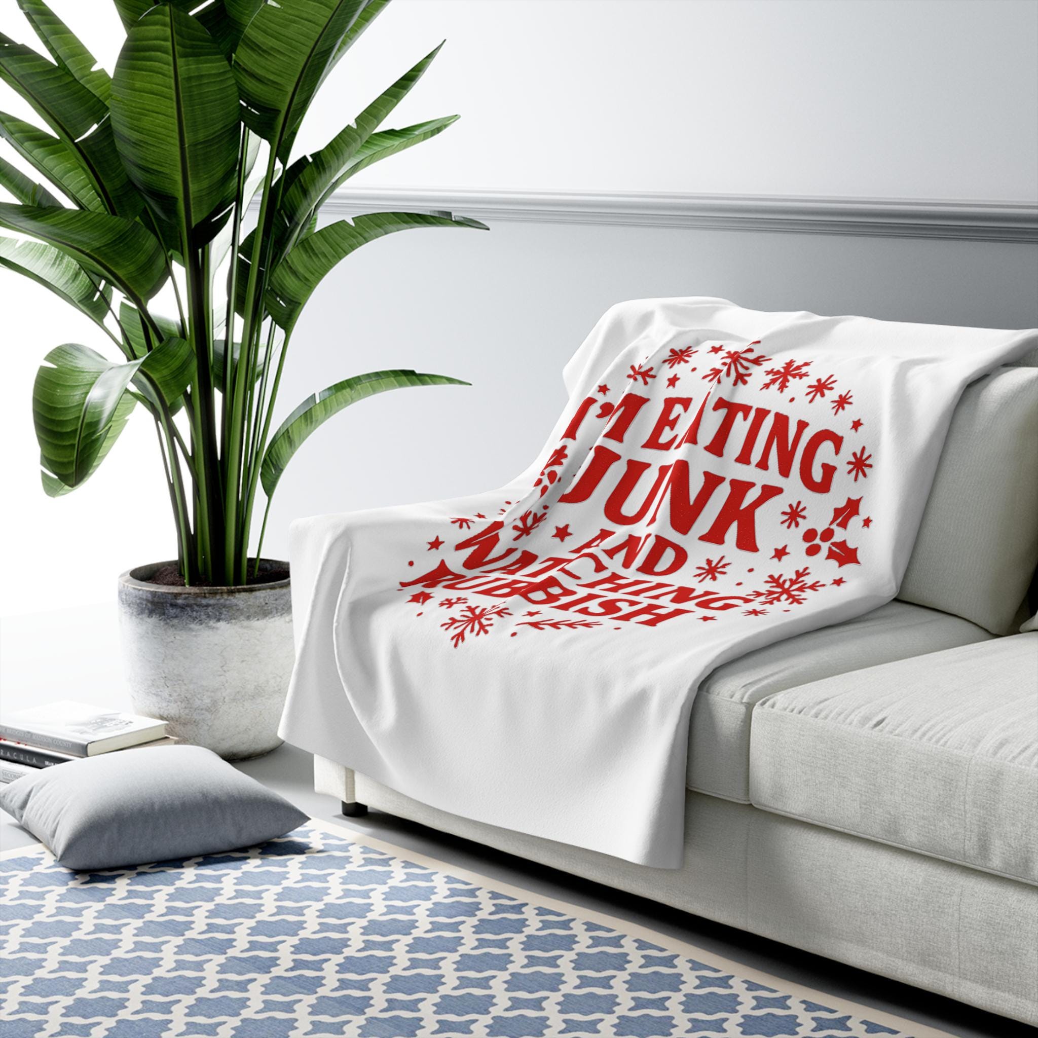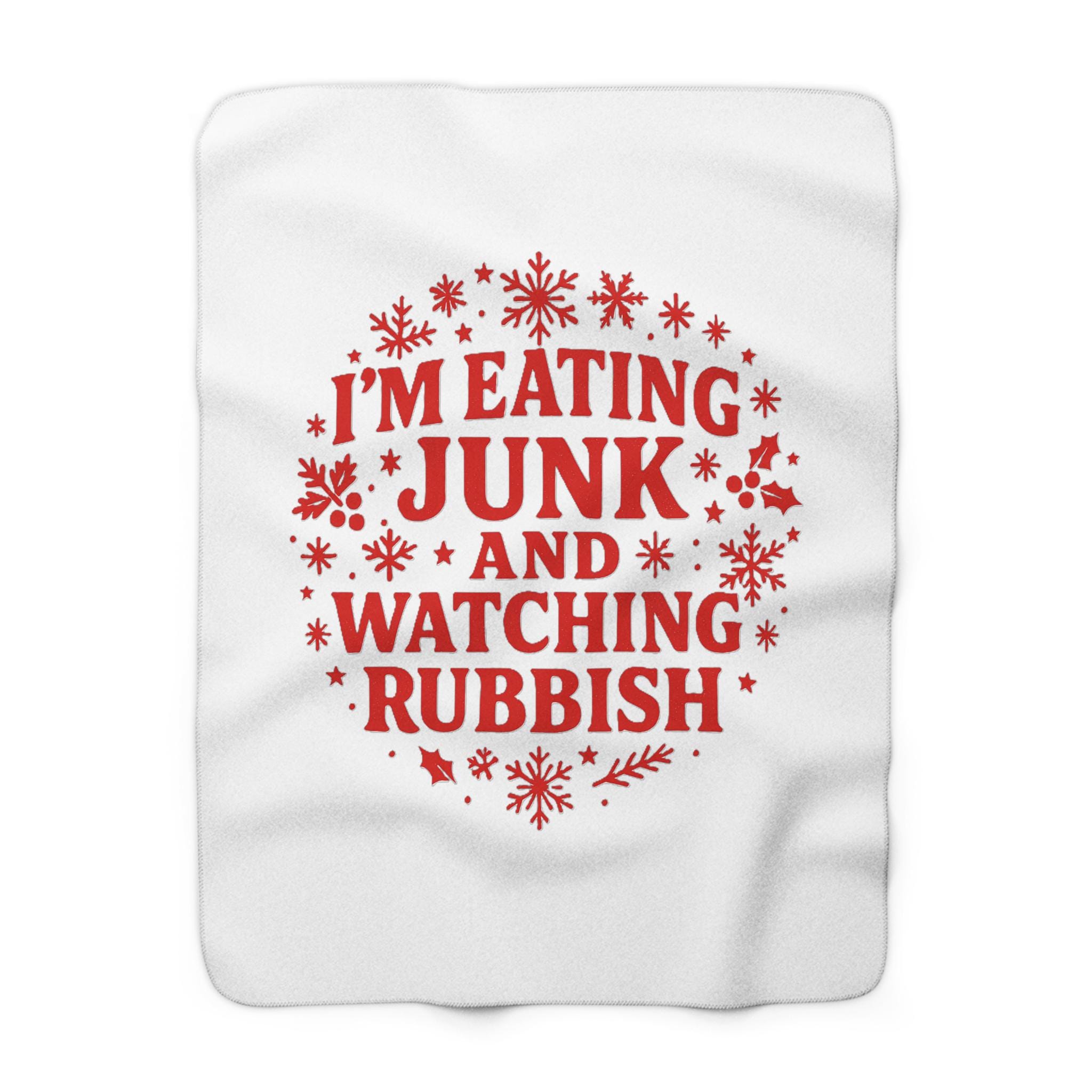 Sink into sofa-night comfort with a sherpa fleece blanket that speaks your mind. Soft, velvety fleece on one side and plush sherpa on the other wrap you in warmth while a bold, holiday-styled graphic—“I’M EATING JUNK AND WATCHING RUBBISH”—adds a wink of humor to slow evenings. It’s made to be lived in: thick 100% polyester for cozy heft, hemmed edges for durability, and a generous size range so you can curl up, drape it over the couch, or toss it across a chair. The neutral cream sherpa pairs with the bright red print to bring a festive, tongue-in-cheek energy to movie nights, sofa binges, and laid-back holiday hangs.