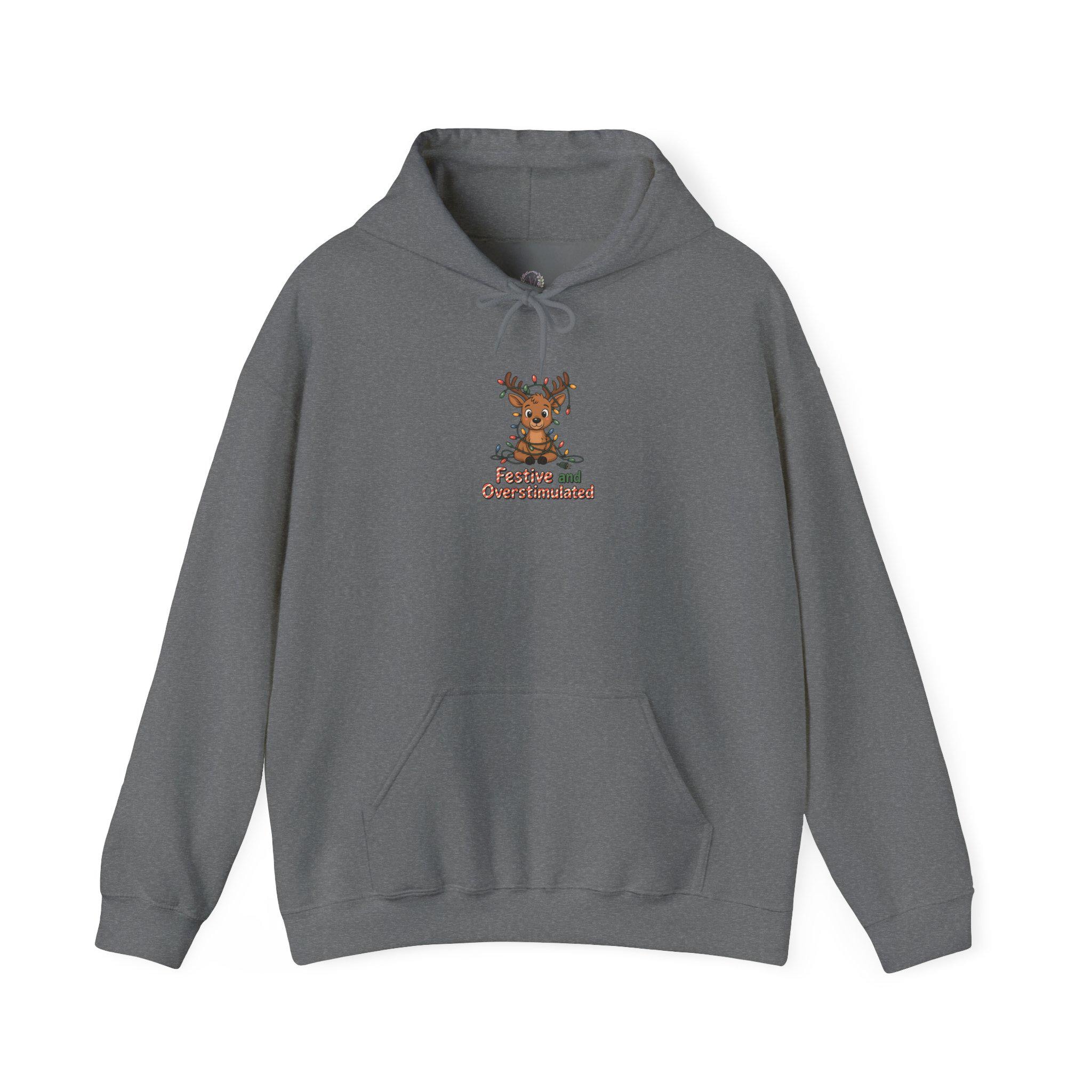 This cozy holiday hoodie reads like a wink to anyone who’s had one too many yuletide gatherings. Soft and substantial, it carries a witty “Overstimulated and Festive” attitude that slips on easily after a long day of lights, cookies, and small-talk. Wear it to unwind by the tree, laugh through a hectic cookie exchange, or layer up for late-night caroling. The relaxed fit and kangaroo pocket invite you to tuck your hands in and breathe out; the drawstring hood adds a little privacy when you need to step away from the crowd. It feels lived-in from the first wear and keeps the season’s chaos feeling a little more manageable — funny, warm, and honest.