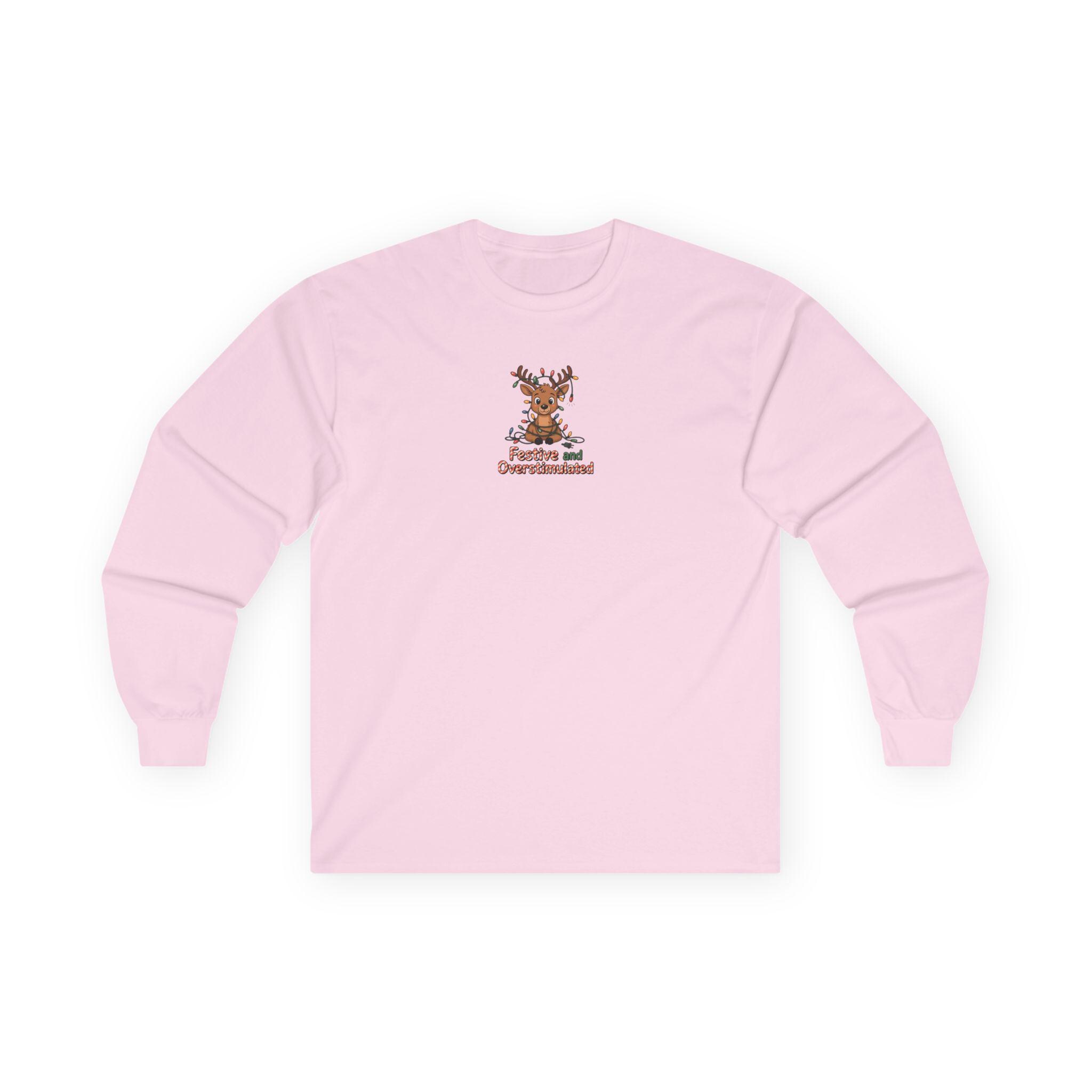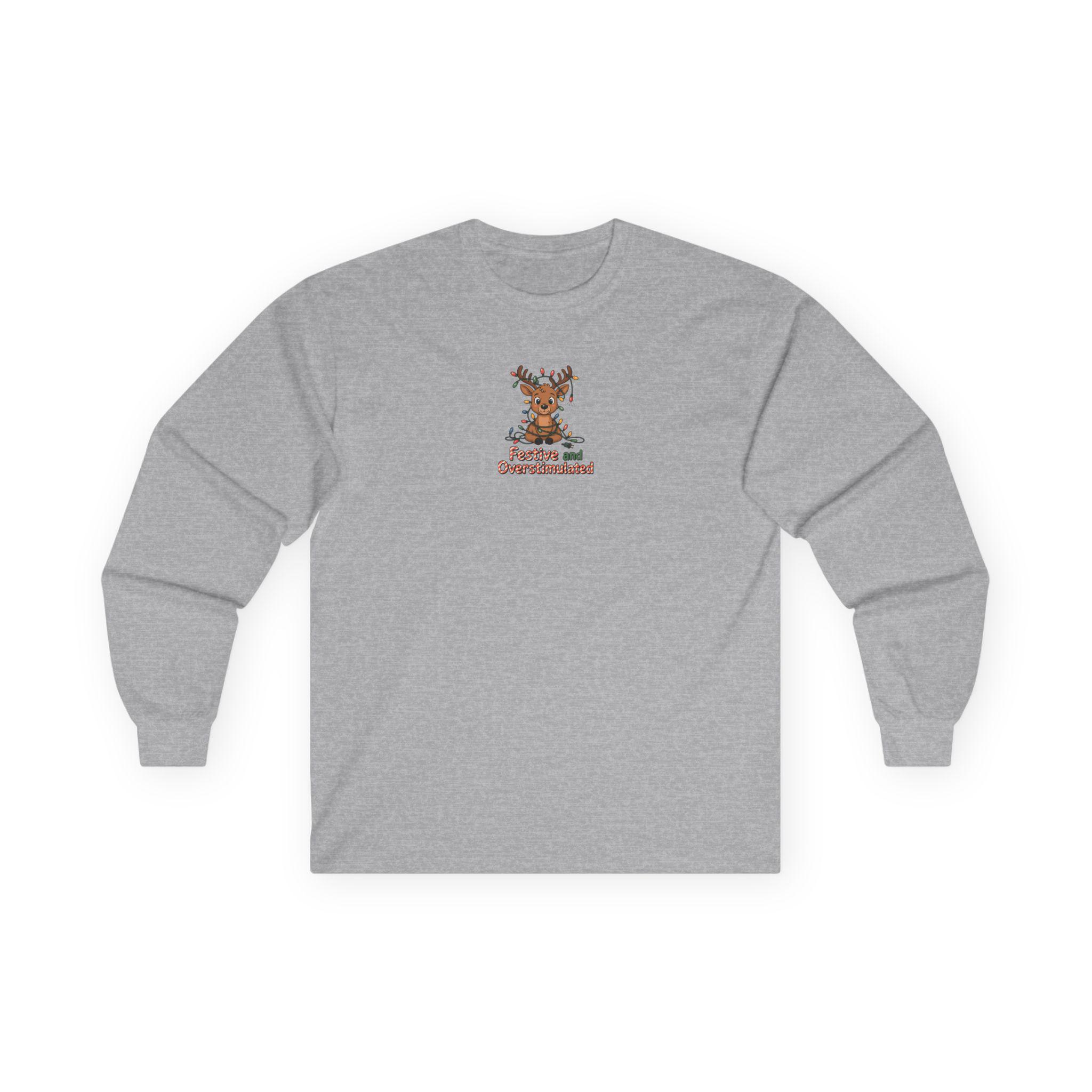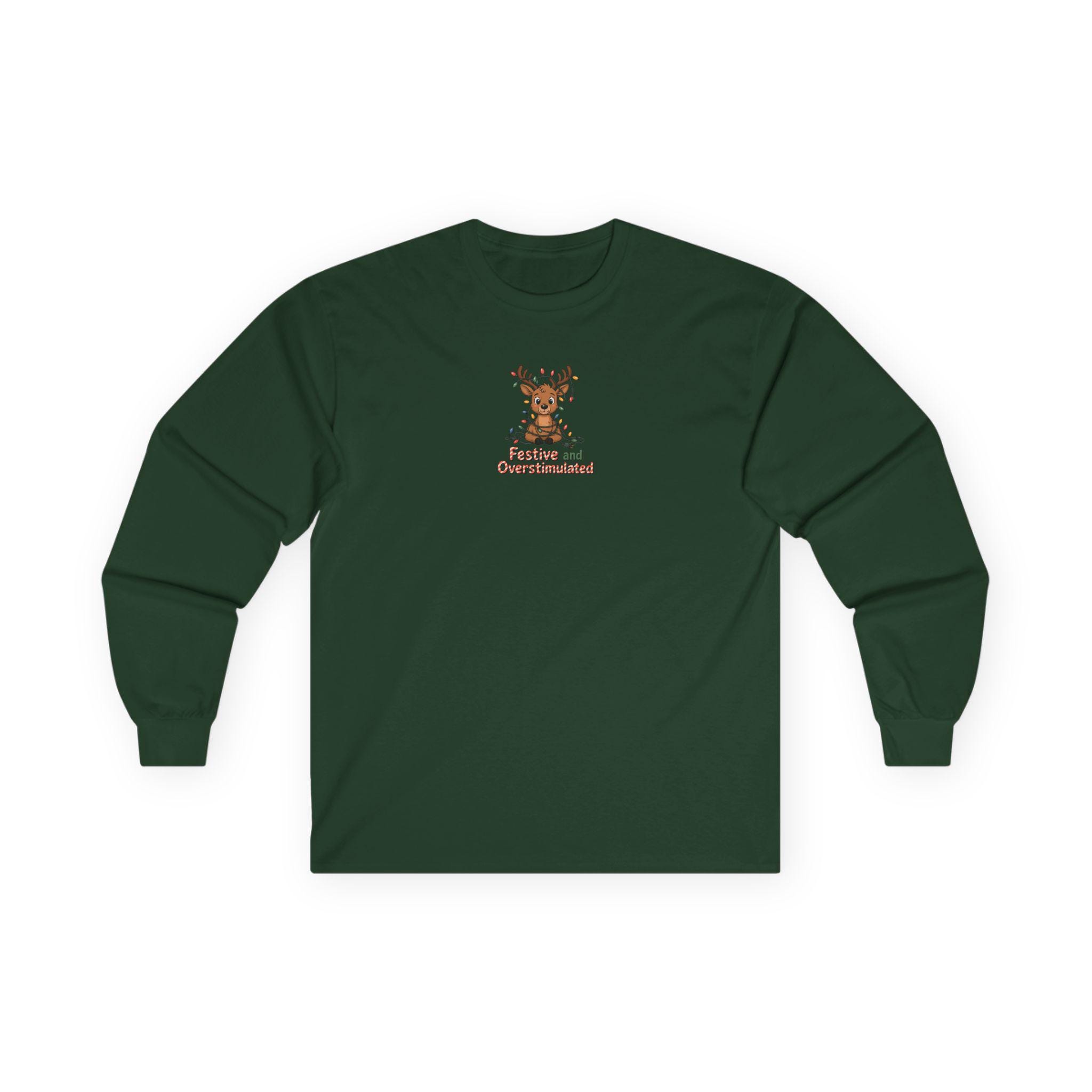 This long sleeve tee channels holiday overstimulation with a wink — the kind of shirt you reach for when twinkling lights, crowded kitchens, and loud laughter are all part of the plan. The slightly vintage, thicker cotton feels grounded against the skin while the relaxed classic fit lets you move through prepping, mingling, and lounging without fuss. Subtle details like a ribbed collar and shoulder tape keep the silhouette tidy after multiple wears. Say it with a grin: you came for the chaos and stayed for the cocoa. Wear it to late-night wrapping sessions, family movie marathons, or neighborhood light walks to lean into the messy, bright pulse of the season.