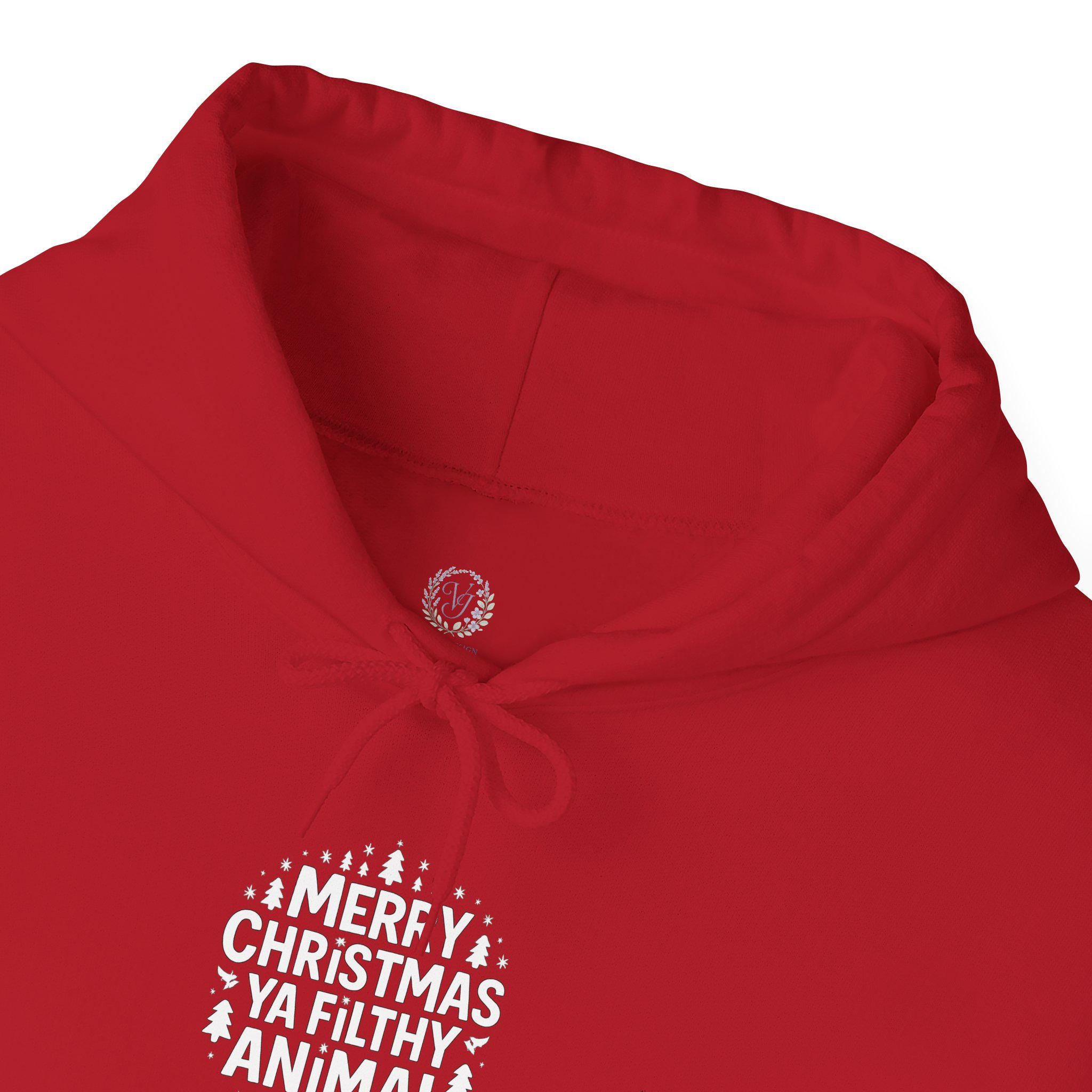 This cozy hoodie brings a wink of retro holiday mischief into cold evenings and family gatherings. The cheeky “Merry Christmas Ya Filthy Animal” wording sits front-and-center, instantly sparking smiles and memories of the movie’s stubborn, hilarious spirit. Slip it on while stringing lights, watching classic holiday films, or lounging by the tree — it feels lived-in and playful, not overdone. The roomy pouch and double-lined hood add casual comfort for late-night cocoa runs or backyard firepit chats. For anyone who loves irreverent holiday humor and wants something warm, wearable, and unmistakably festive, this hoodie becomes part of the season’s small rituals and inside jokes.