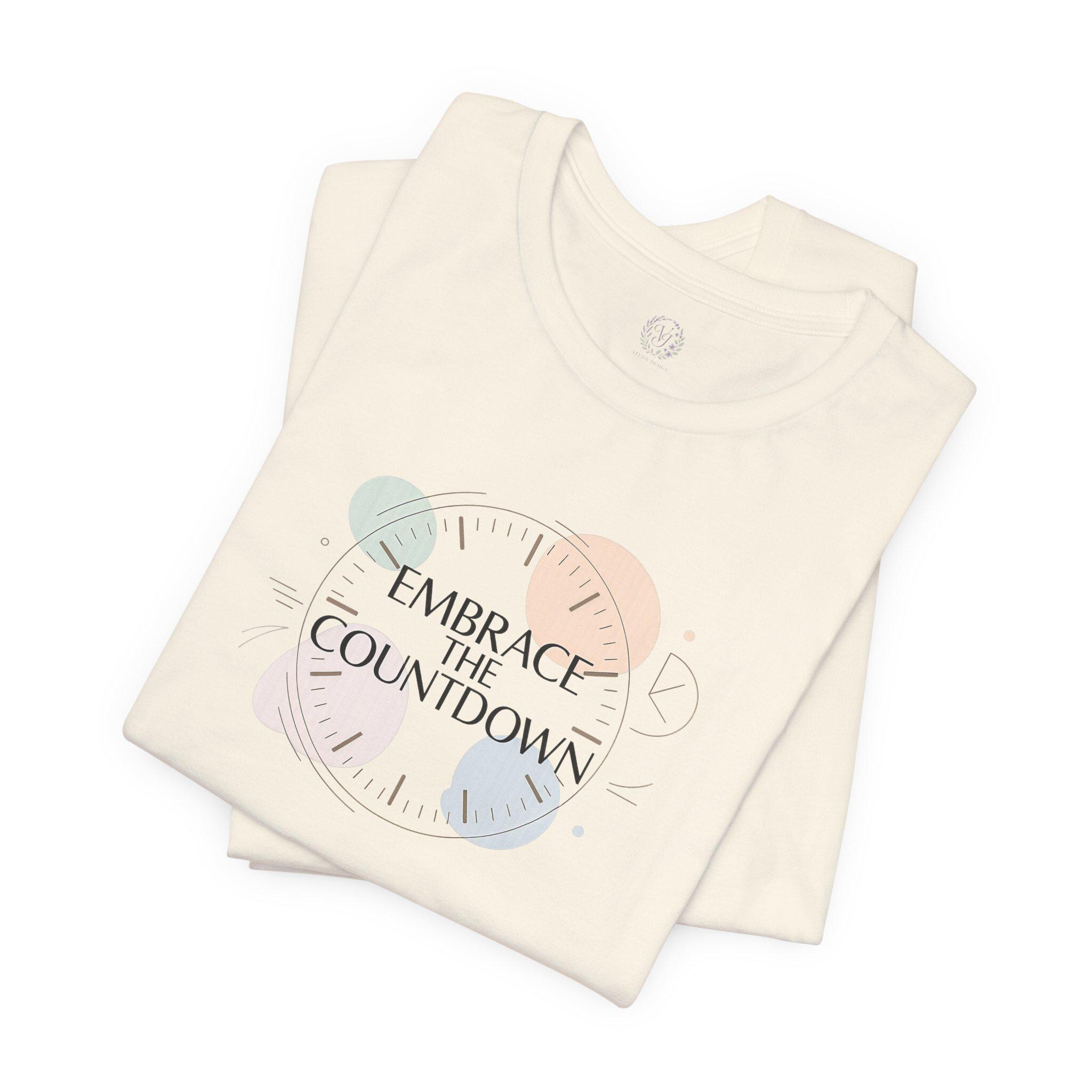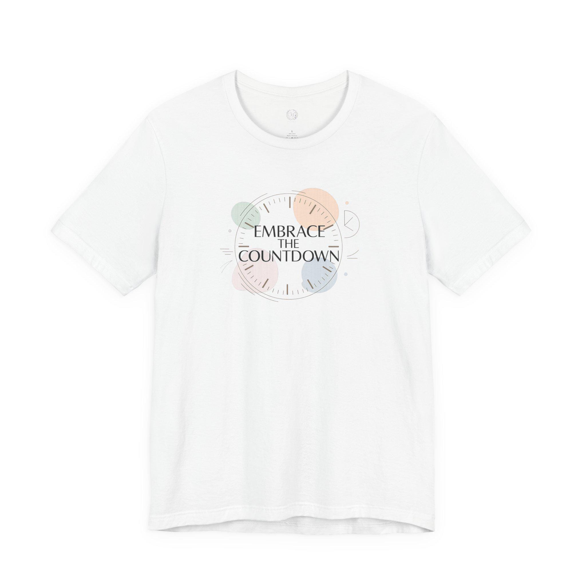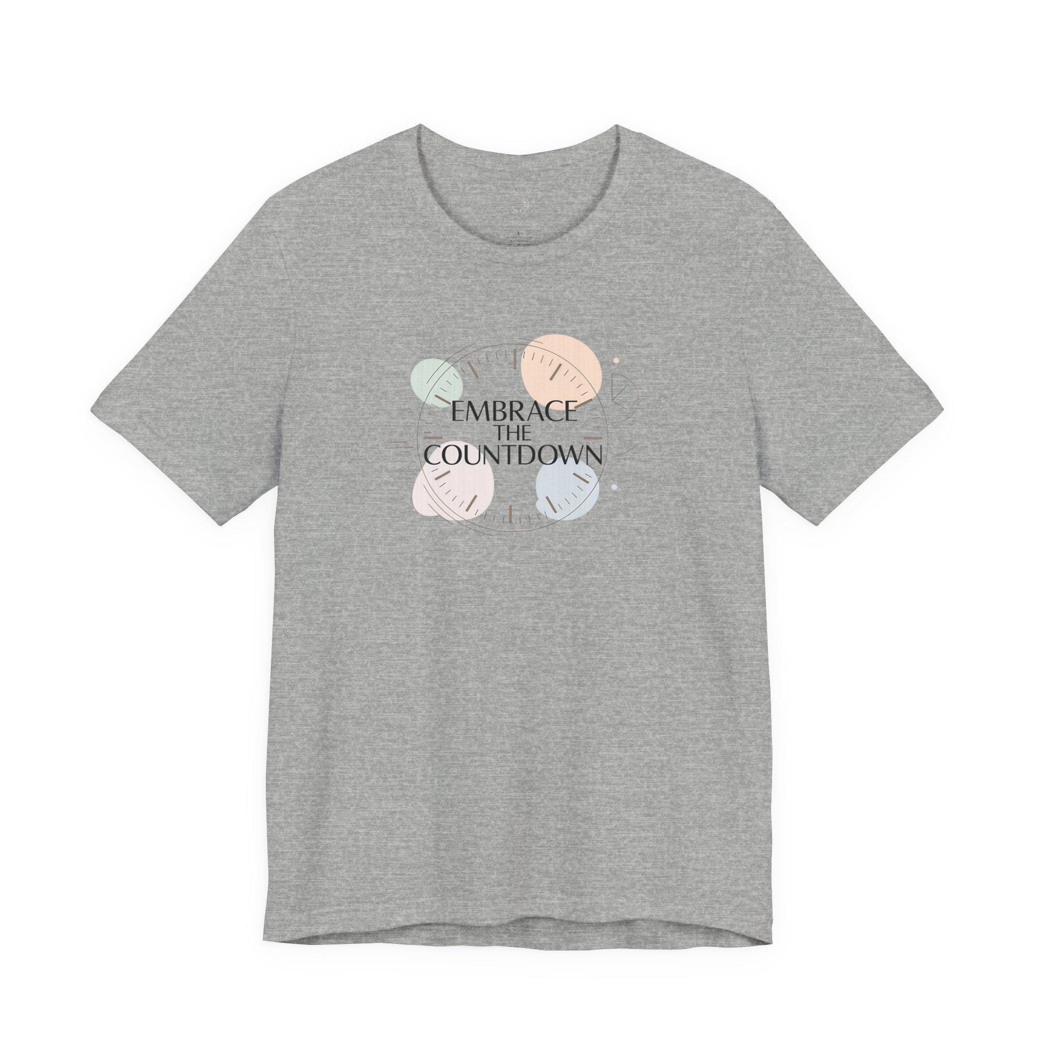 Embrace the Countdown tee pairs quiet optimism with a wry nod to end-of-year jitters—clean sans-serif text sits over soft pastel circles that suggest clocks and moments passing. The design reads as modern, restrained, and slightly humorous, fitting the 2026 goals and new year motivation conversation without leaning into flashy holiday tropes. Lightweight and breathable, this shirt layers easily for parties, casual meetups, or reflective moments during the season’s busy transition.