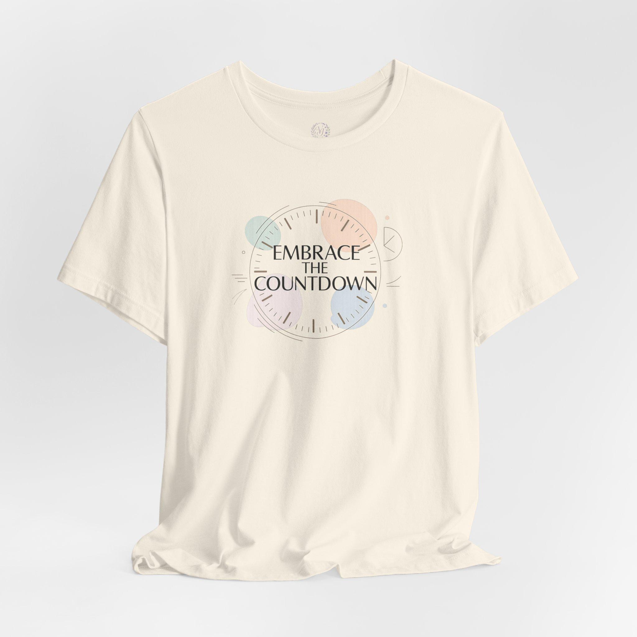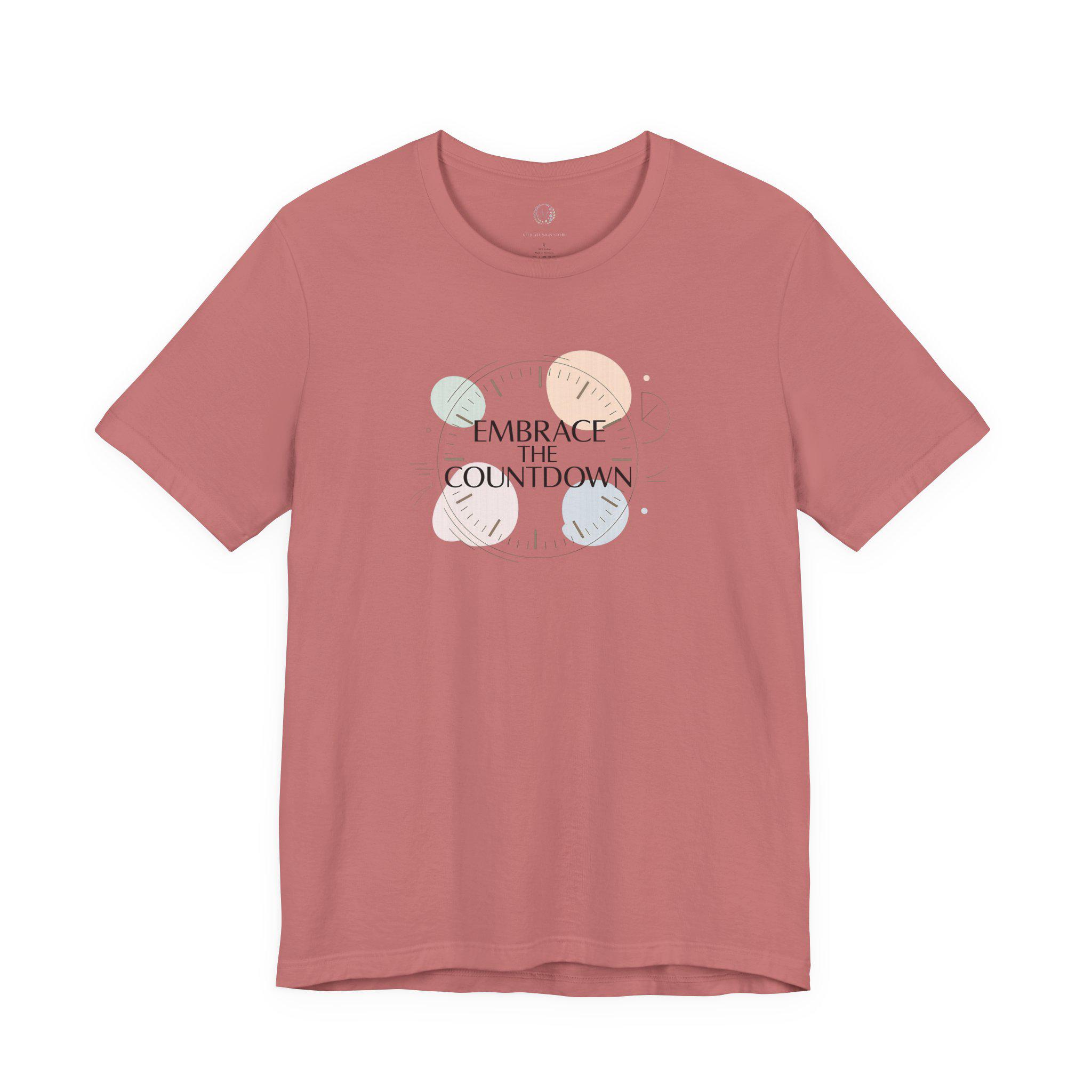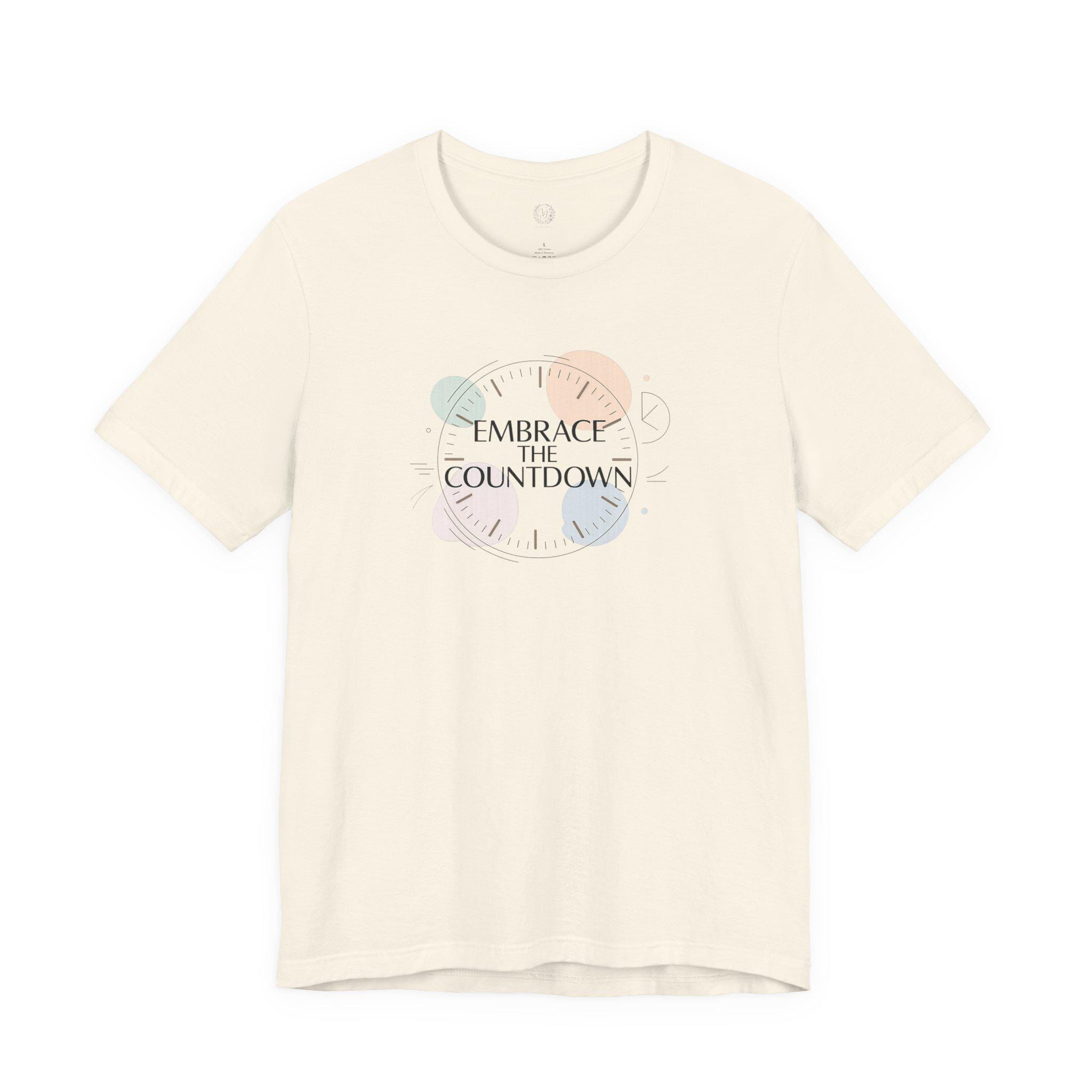 Embrace the Countdown tee pairs quiet optimism with a wry nod to end-of-year jitters—clean sans-serif text sits over soft pastel circles that suggest clocks and moments passing. The design reads as modern, restrained, and slightly humorous, fitting the 2026 goals and new year motivation conversation without leaning into flashy holiday tropes. Lightweight and breathable, this shirt layers easily for parties, casual meetups, or reflective moments during the season’s busy transition.