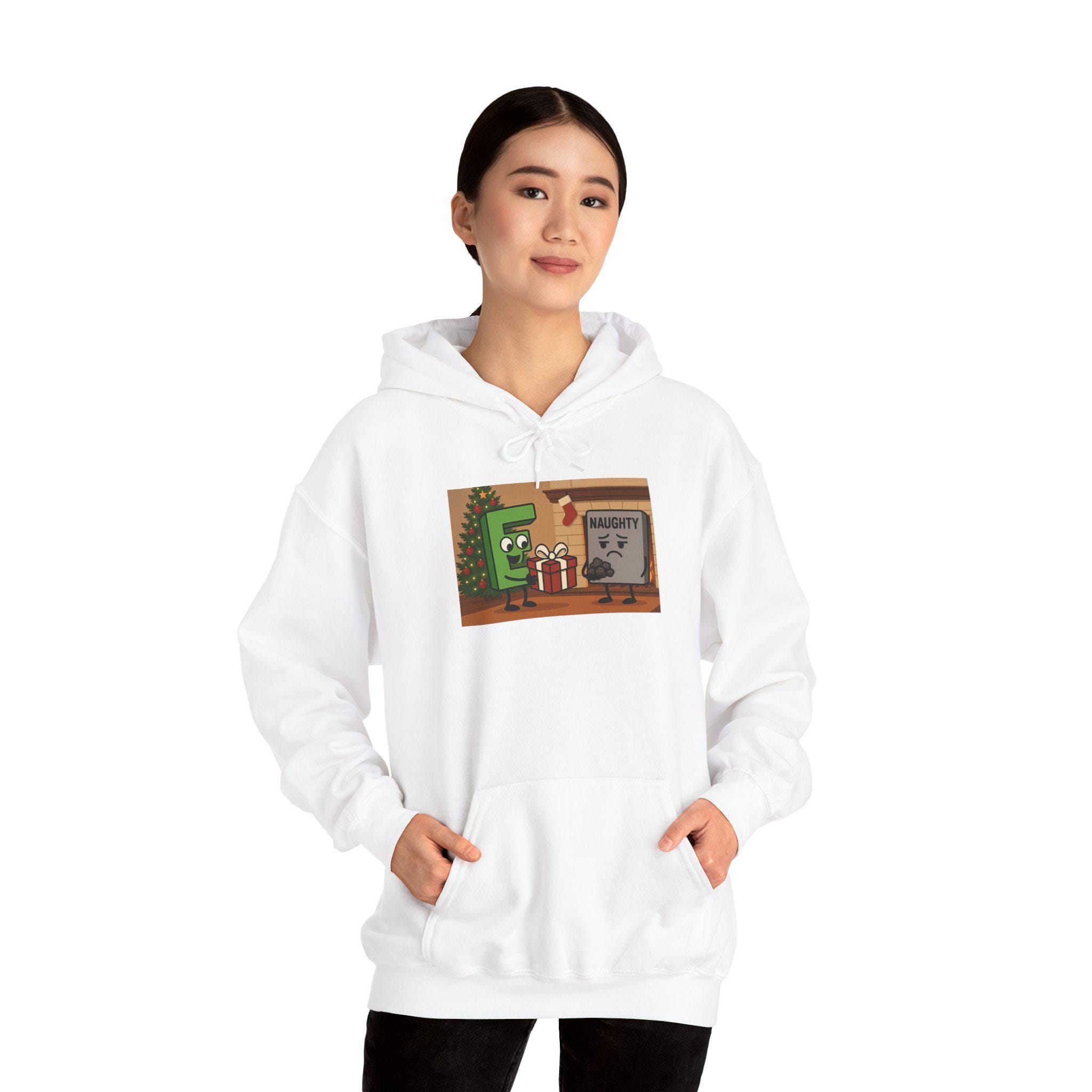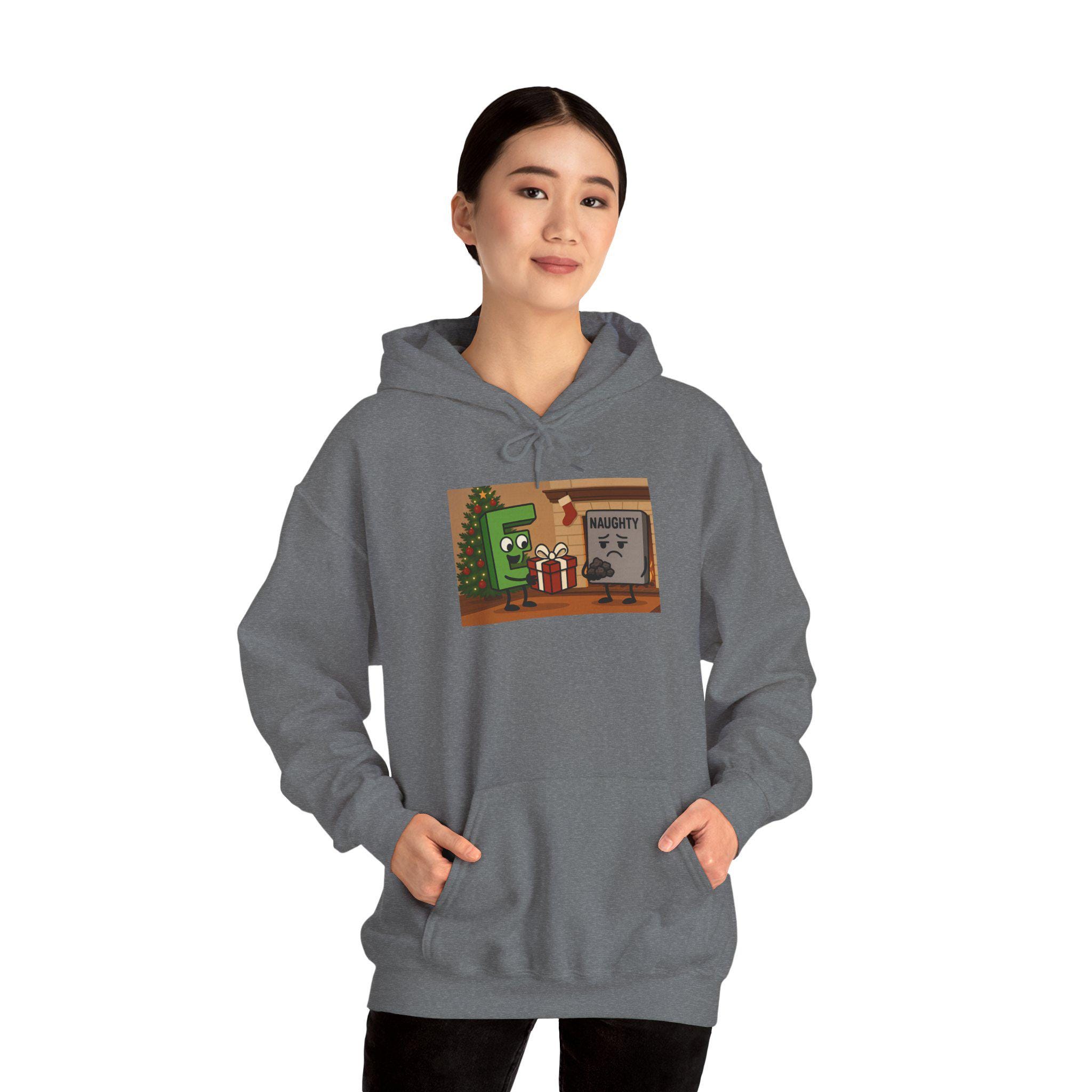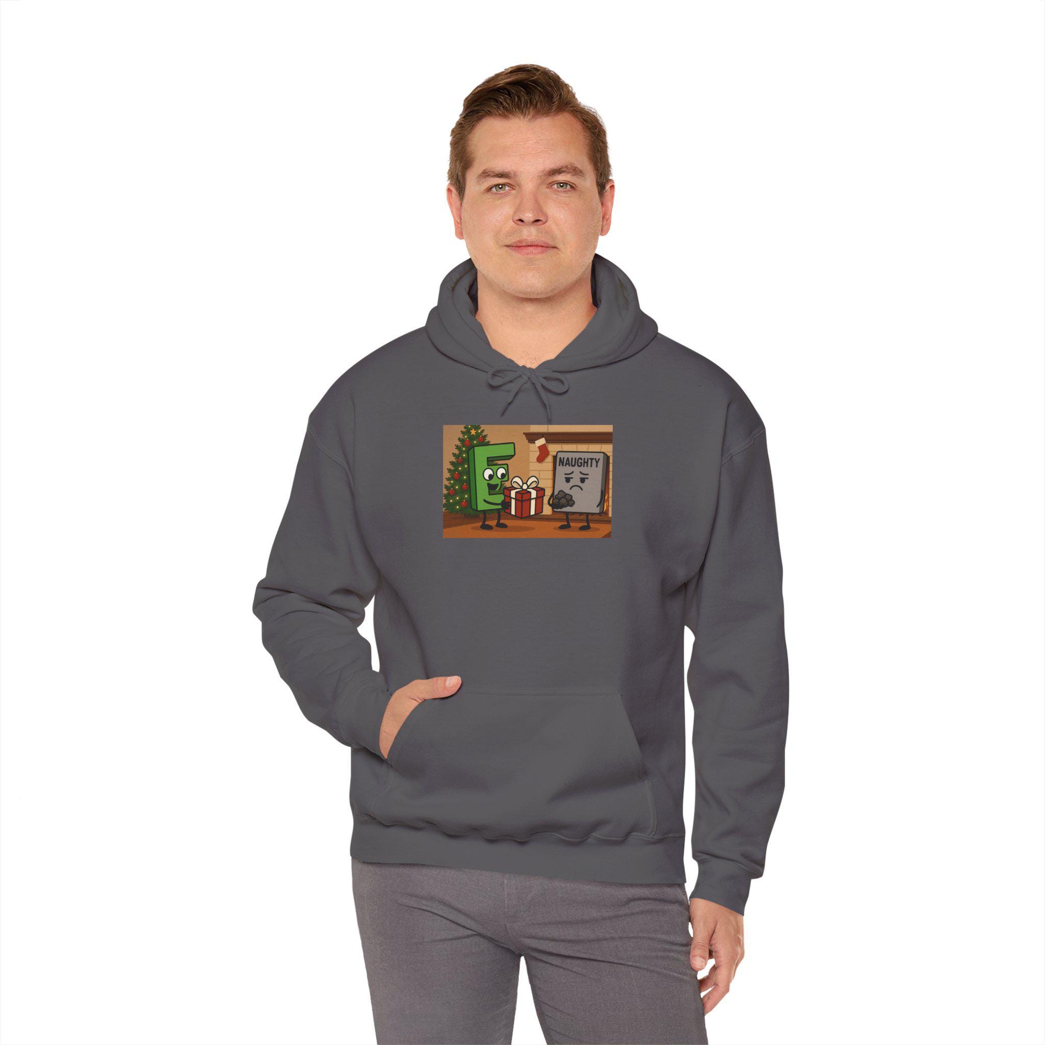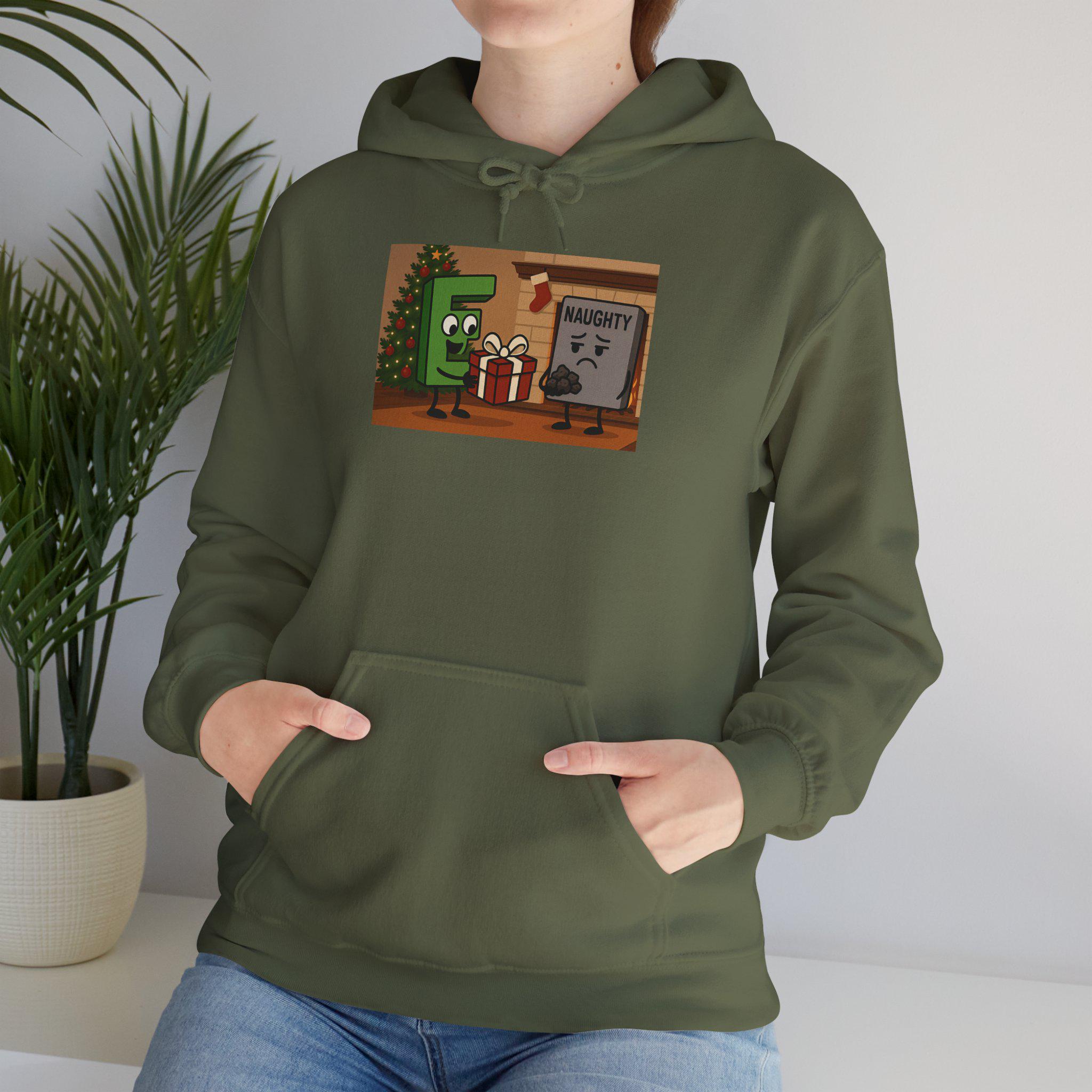 Wrap yourself in tongue-in-cheek holiday cheer with this cozy hoodie that jokingly walks the line between ‘good’ and ‘naughty.’ Soft and warm, it feels like a familiar laugh around a fire — the kind that comes after a cheeky story and a raised glass. The roomy kangaroo pocket keeps cold hands tucked in while the double-lined hood and color-matched drawcord add subtle style. Lightweight enough for layering under a coat, yet substantial enough to wear on a crisp evening stroll to see holiday lights. Whether you’re trading playful banter at a family gathering or slipping it on for a relaxed night of movies and cocoa, this hoodie brings warmth and humor in equal measure.