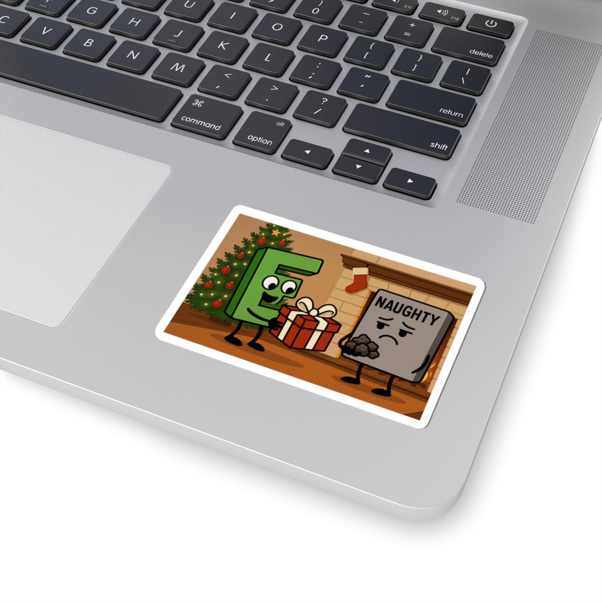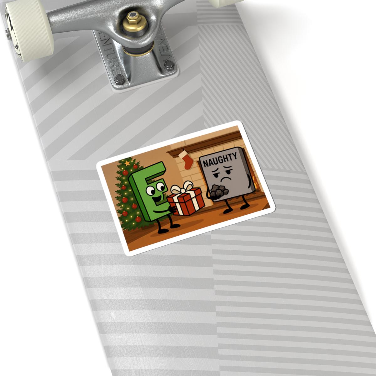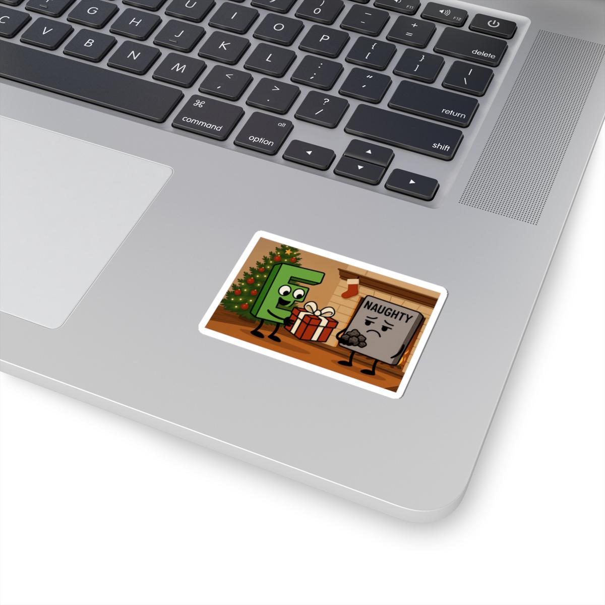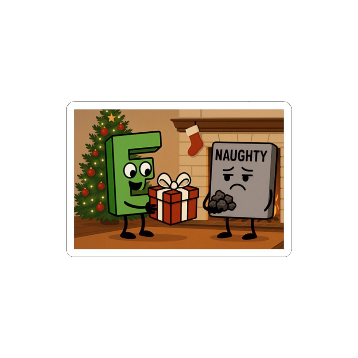 A sassy, cheeky kiss-cut sticker that brings a wink to the holidays. Matte-free glossy print catches the lights on your laptop, planner, or window while the playful “Good E and Naughty” humor sparks smiles from fellow holiday conspirators. It’s made for adults who enjoy a wink of irreverence during festive gatherings—slip it on a journal, beside your coffee mug, or on a gift tag to give someone a quick laugh. The vinyl surface and strong permanent adhesive mean it stays put on smooth, flat surfaces, and the available white or transparent backgrounds let the design sit seamlessly with your style. Choose a size that fits your vibe and stick it on where it will make people double-take.