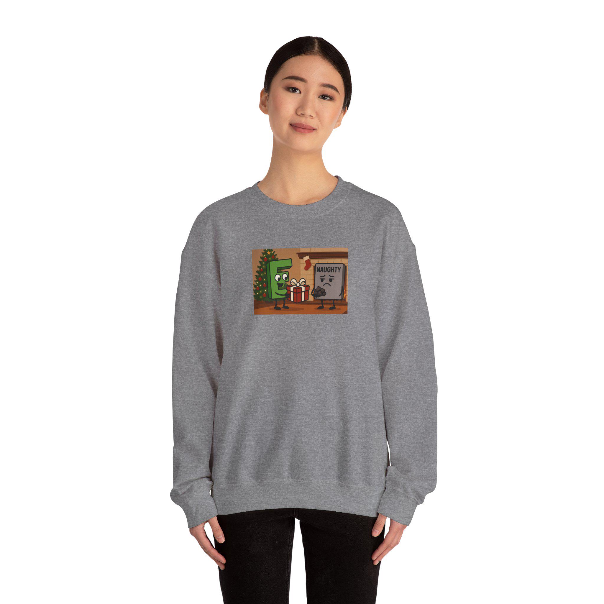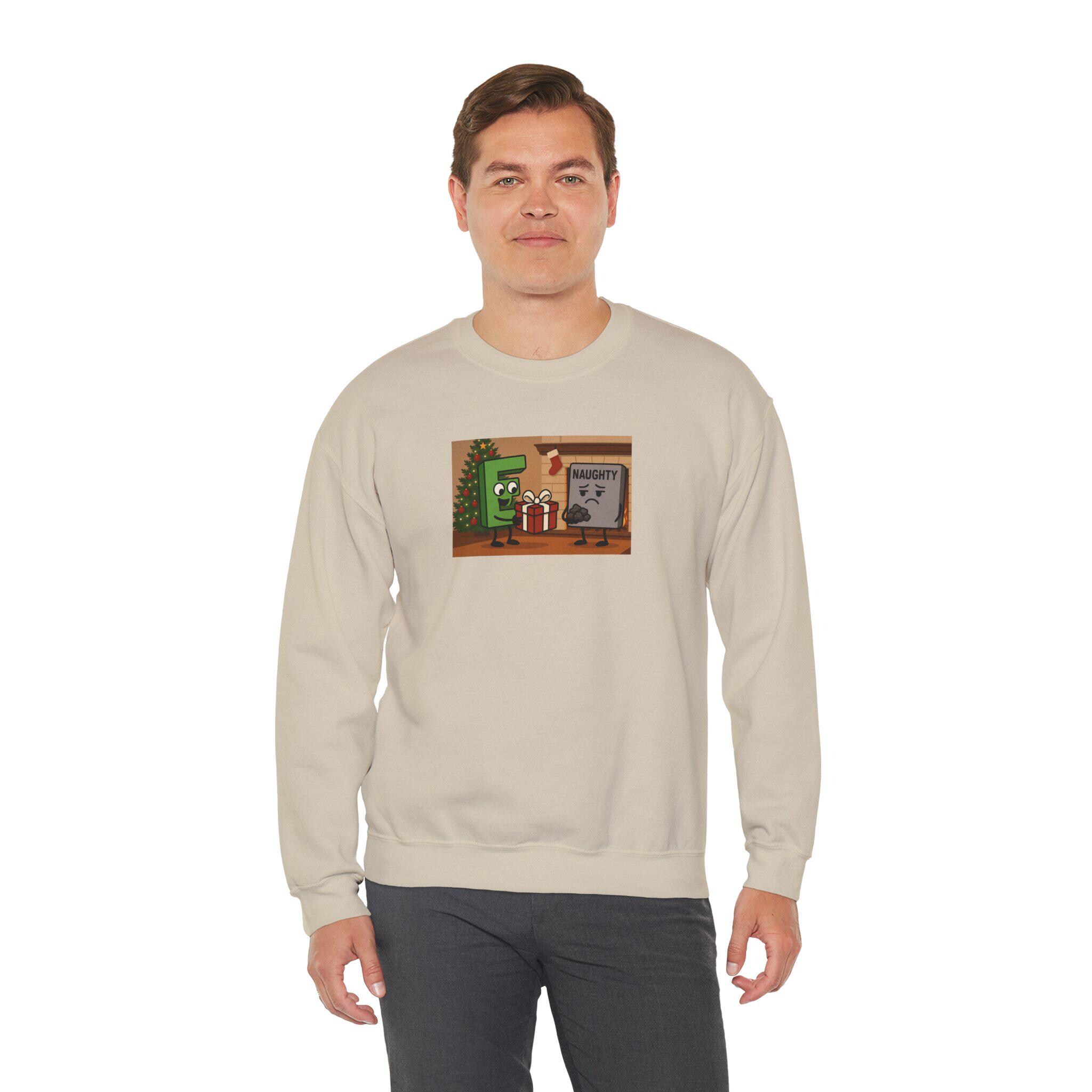Laugh-out-loud holiday spirit wrapped in cozy comfort. This crewneck carries a cheeky Good E and Naughty message embroidered or printed with crisp detail, the kind that sparks grins at holiday parties and family photo attempts. The midweight cotton-poly blend feels warm without being bulky, and the classic crew cut sits naturally under a winter coat or over a favorite tee. Wear it while trimming lights, swapping secret Santa notes, or lingering by the tree with a mug in hand — it’s made to be lived in all season, offering durability and soft, reliable warmth that keeps the joke front and center.