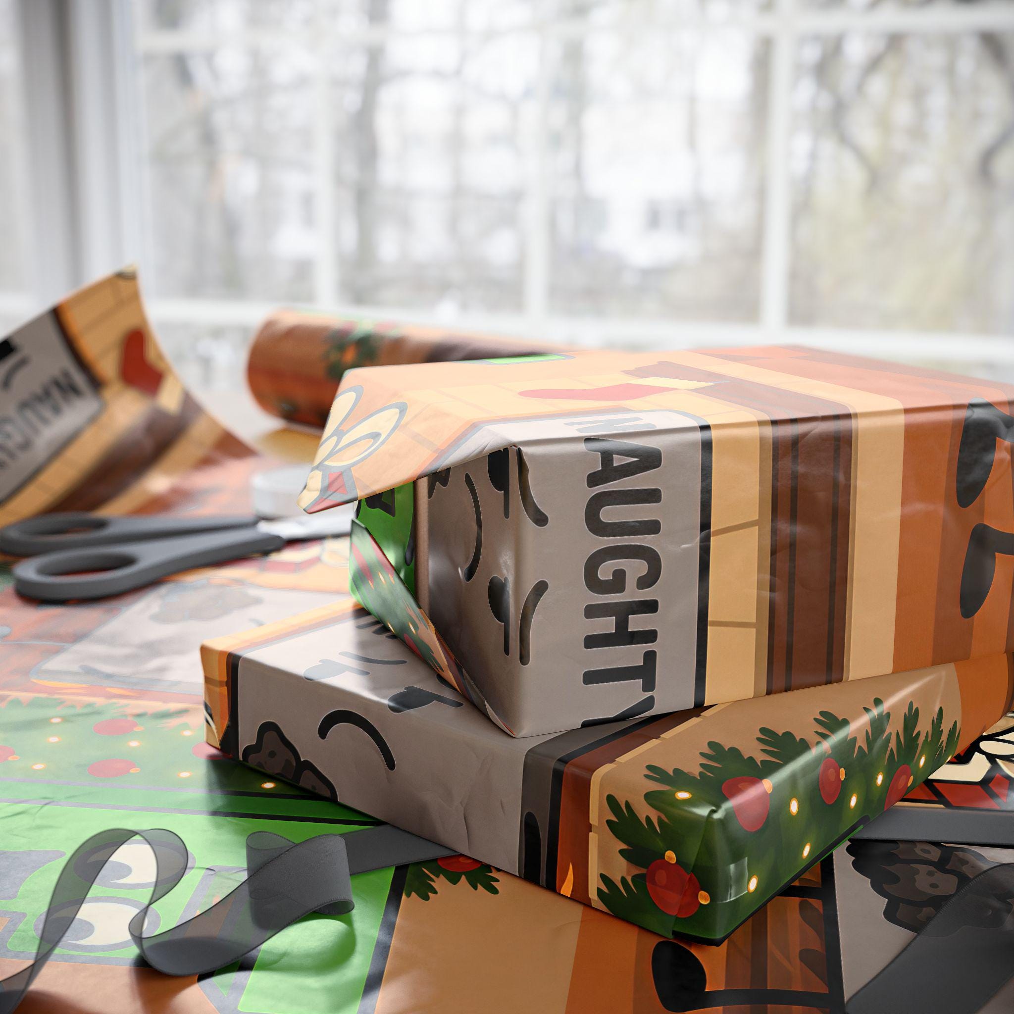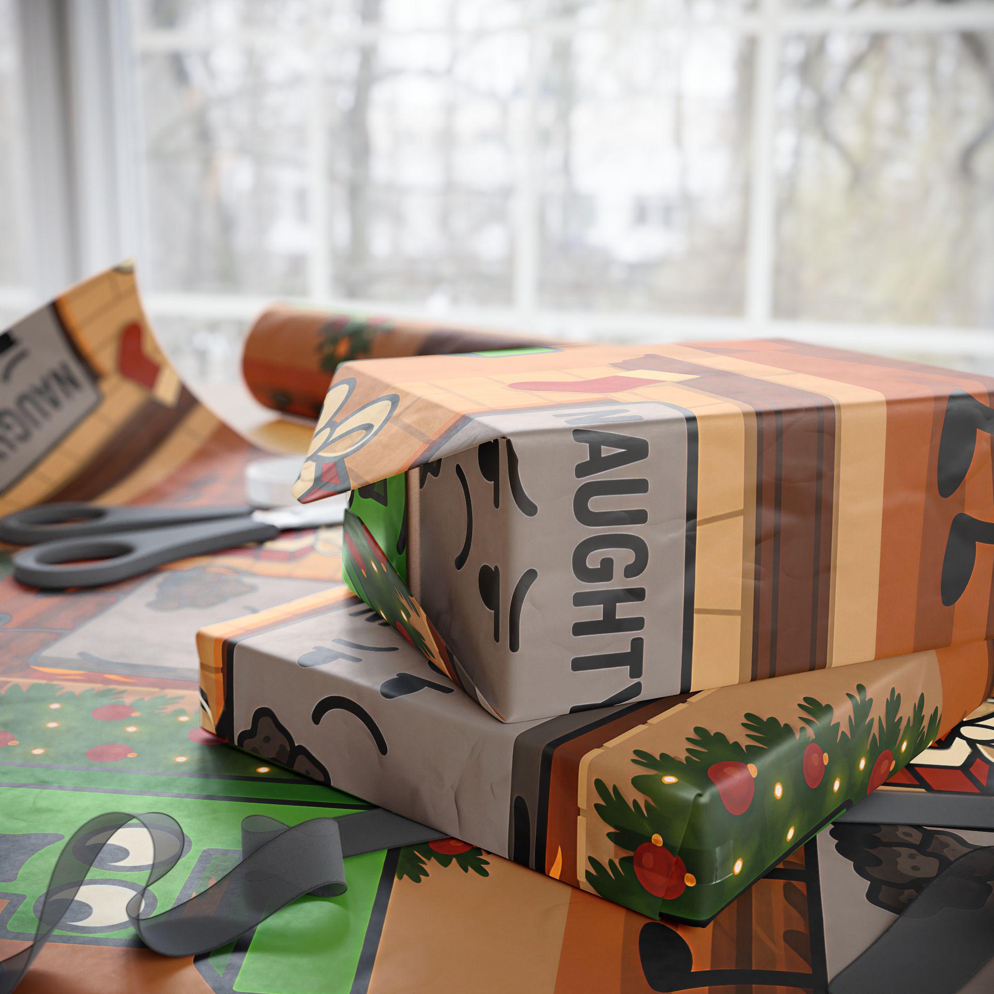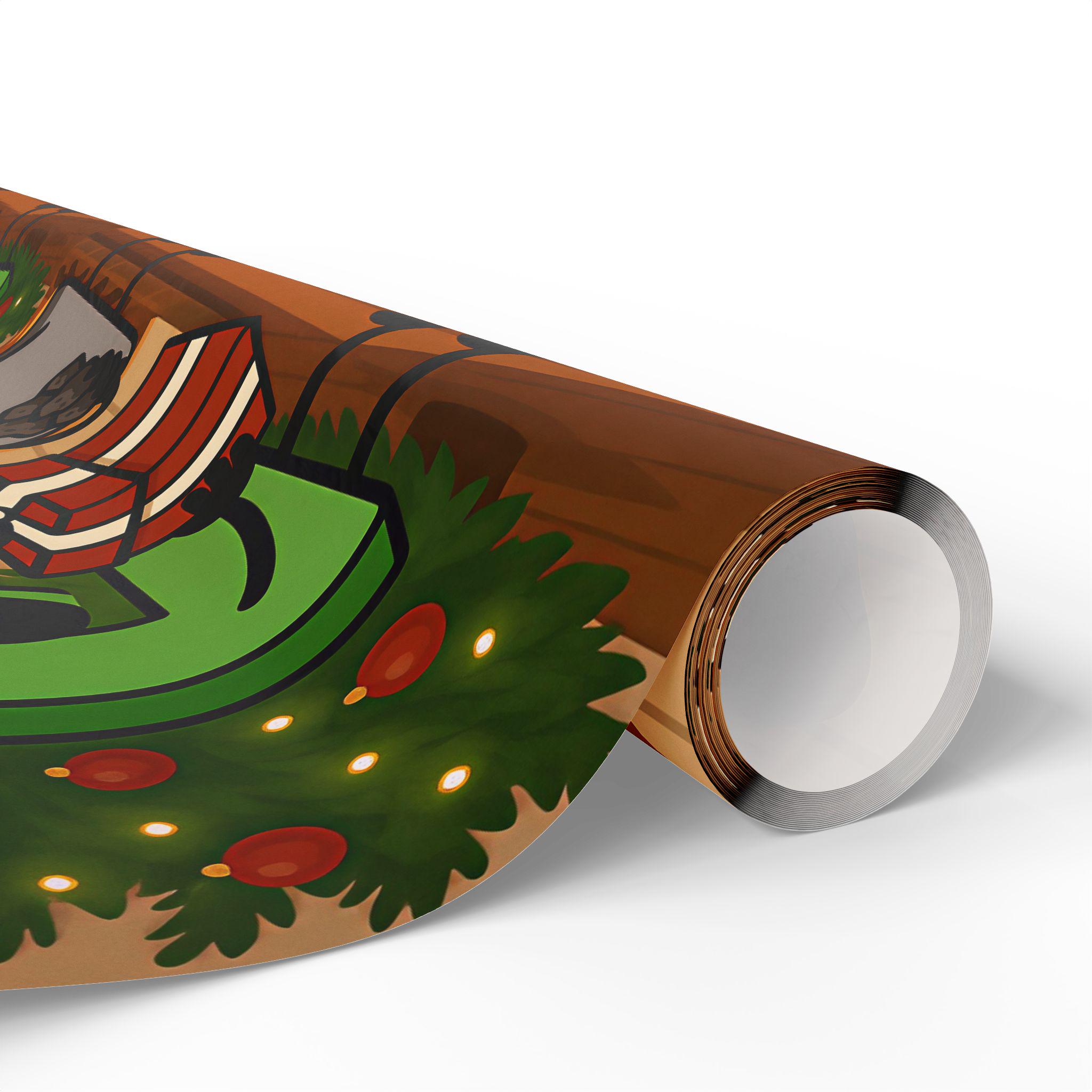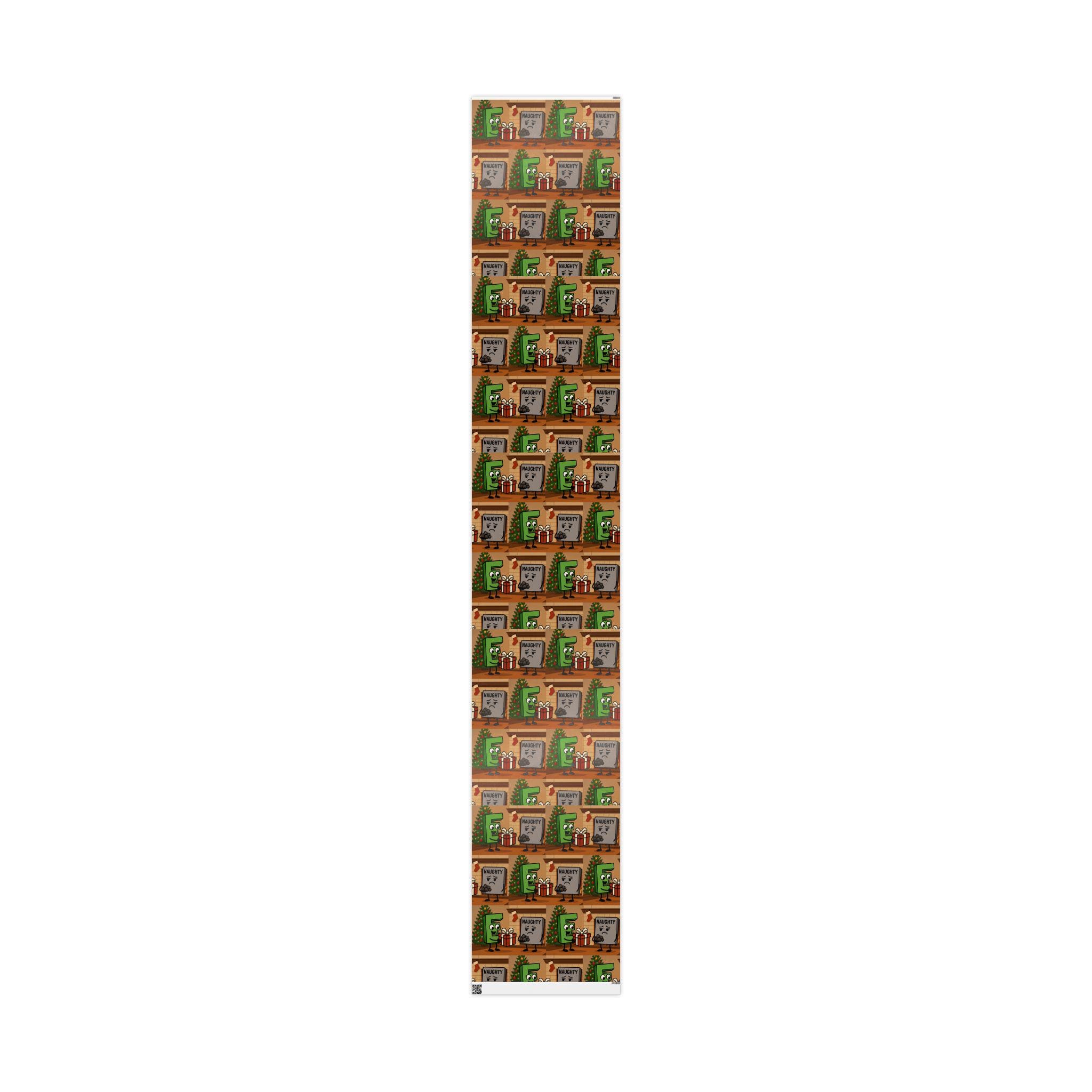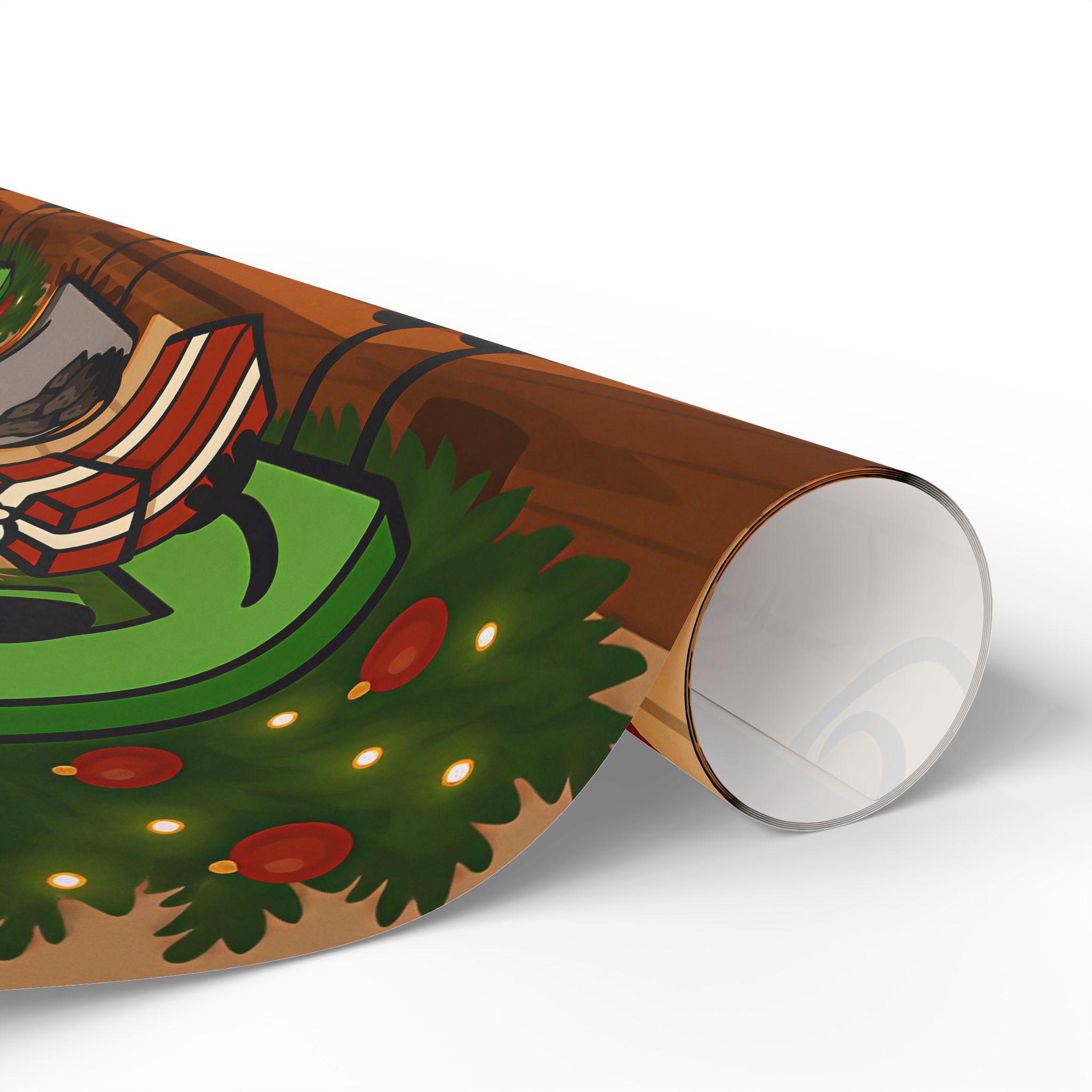 Thick, art-quality wrapping paper printed with a warm, hand-illustrated holiday scene. The repeated design shows cozy seasonal motifs in rich autumnal and evergreen tones — imagine glowing lights, garlands, and layered textures that feel handcrafted. Each roll arrives on 90 gsm fine art paper with the option of a glossy sheen that amplifies color depth or a smooth matte finish for a soft, tactile look. The one-sided print is crisp and high-definition, making small parcels or long packages look thoughtfully wrapped and carefully styled. Because the paper comes in three length options, you can cover anything from little stocking-stuffers to long boxes, and the natural white margins with a production bar and QR code stay out of the main design area.