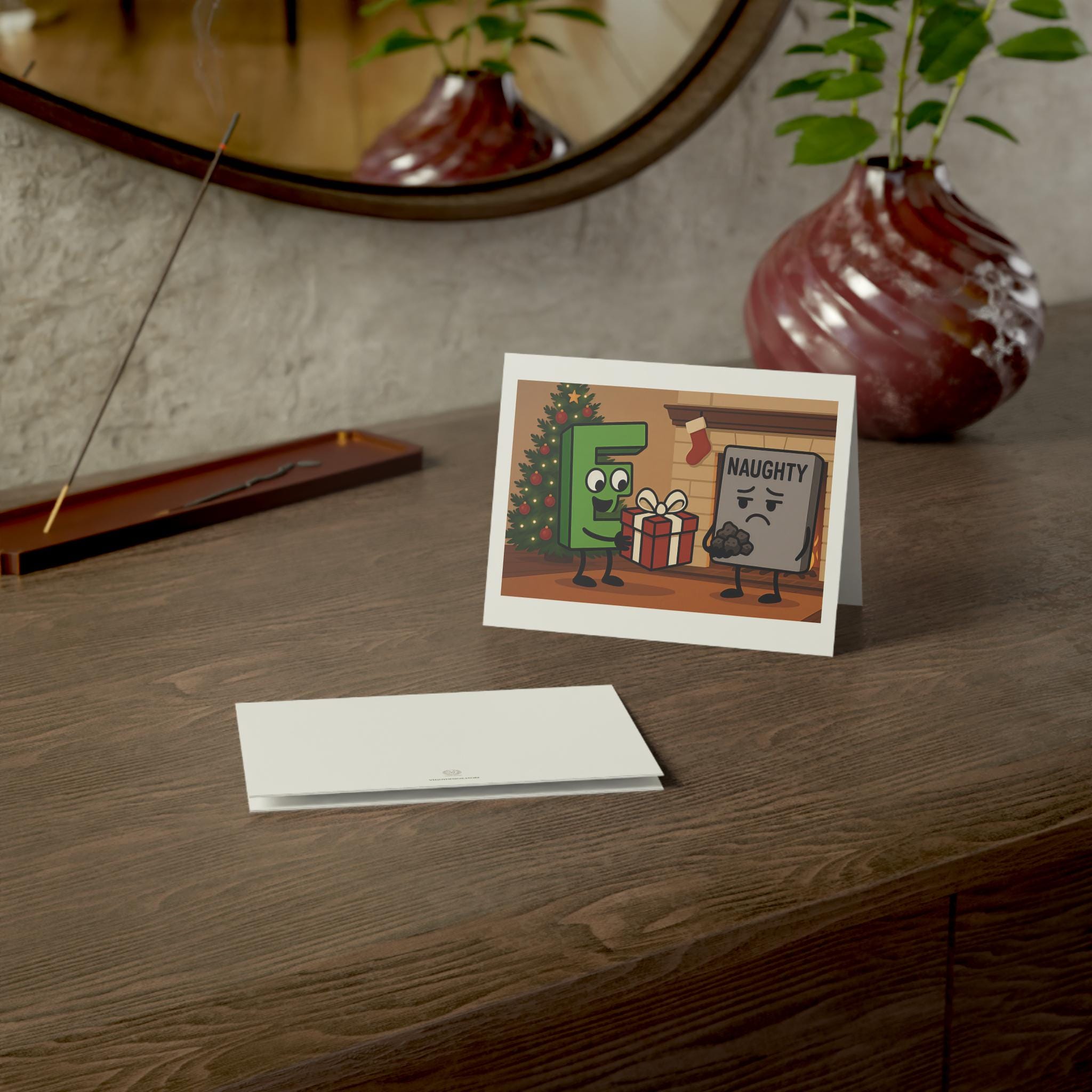 Share a wink and a laugh this holiday season with cards that lean toward cheeky cheer. These greeting cards carry playful “Good E and Naughty” humor across a crisp, colorful front and leave the inside blank for your own note. Hold one and you’ll feel the weight of the thick 270gsm stock and the smooth finish that makes the colors pop. Whether you’re writing a quick quip for longtime friends or slipping a bold joke into an office exchange, these cards sit comfortably in hands and on mantels alike. Choose from multiple sizes and finishes—uncoated, matte, one-side or two-side coated—to tune the look from understated to satin-smooth. Each card comes with a matching envelope, and the balanced front-overlap cover gives it a polished, professional feel. Lighthearted, slightly mischievous, and ready for your own punchline, these cards are made from USA-sourced blanks and printed with modern techniques that keep every color vivid.