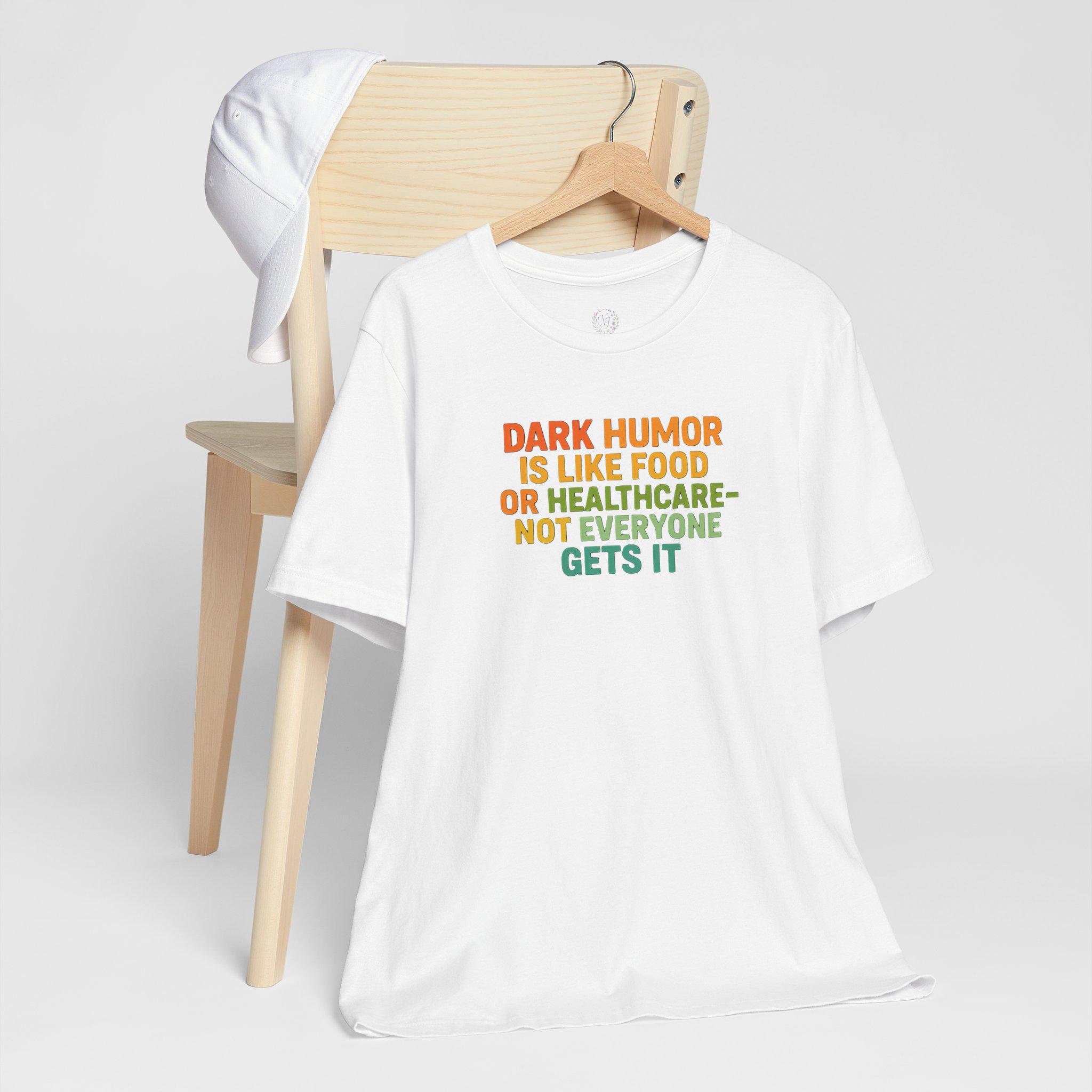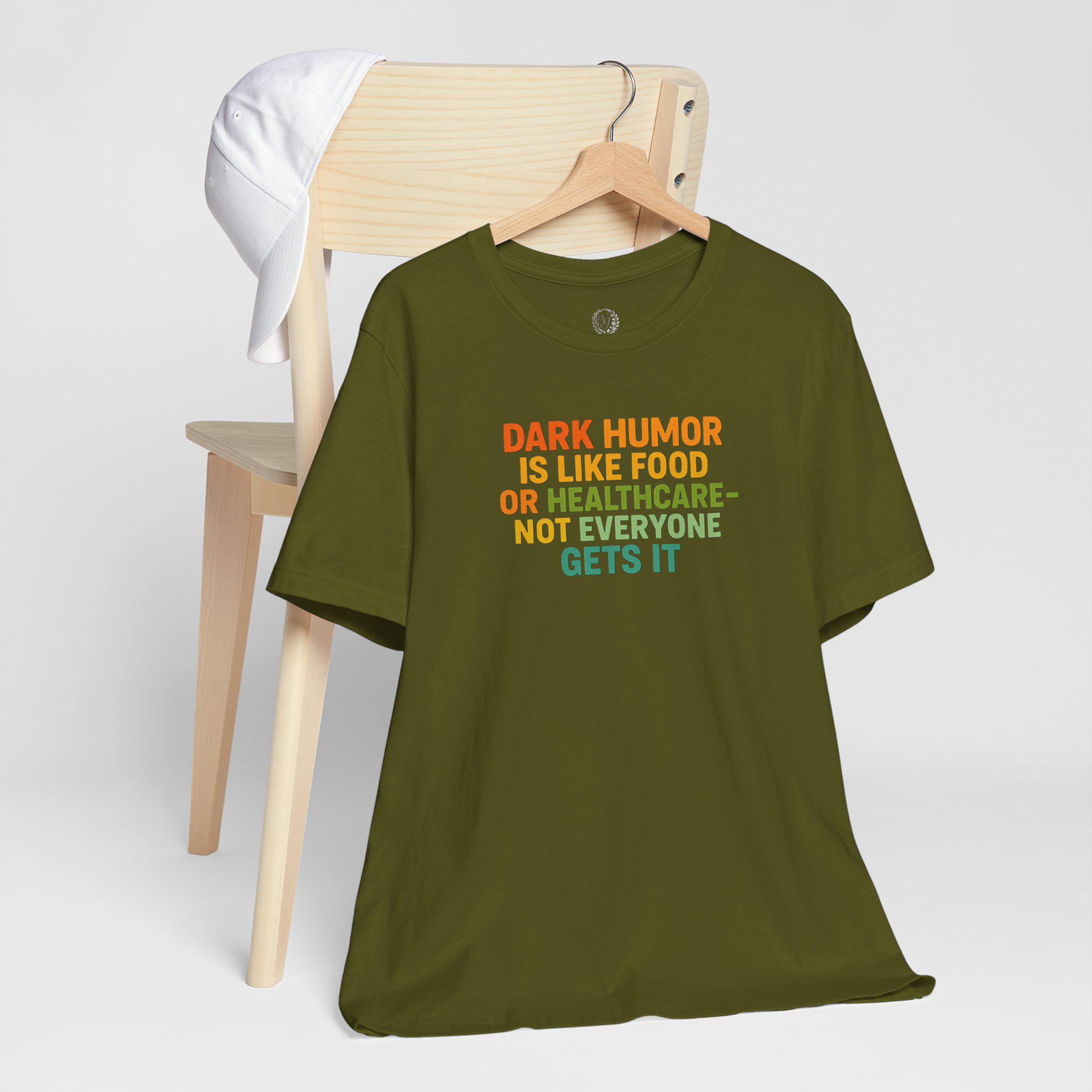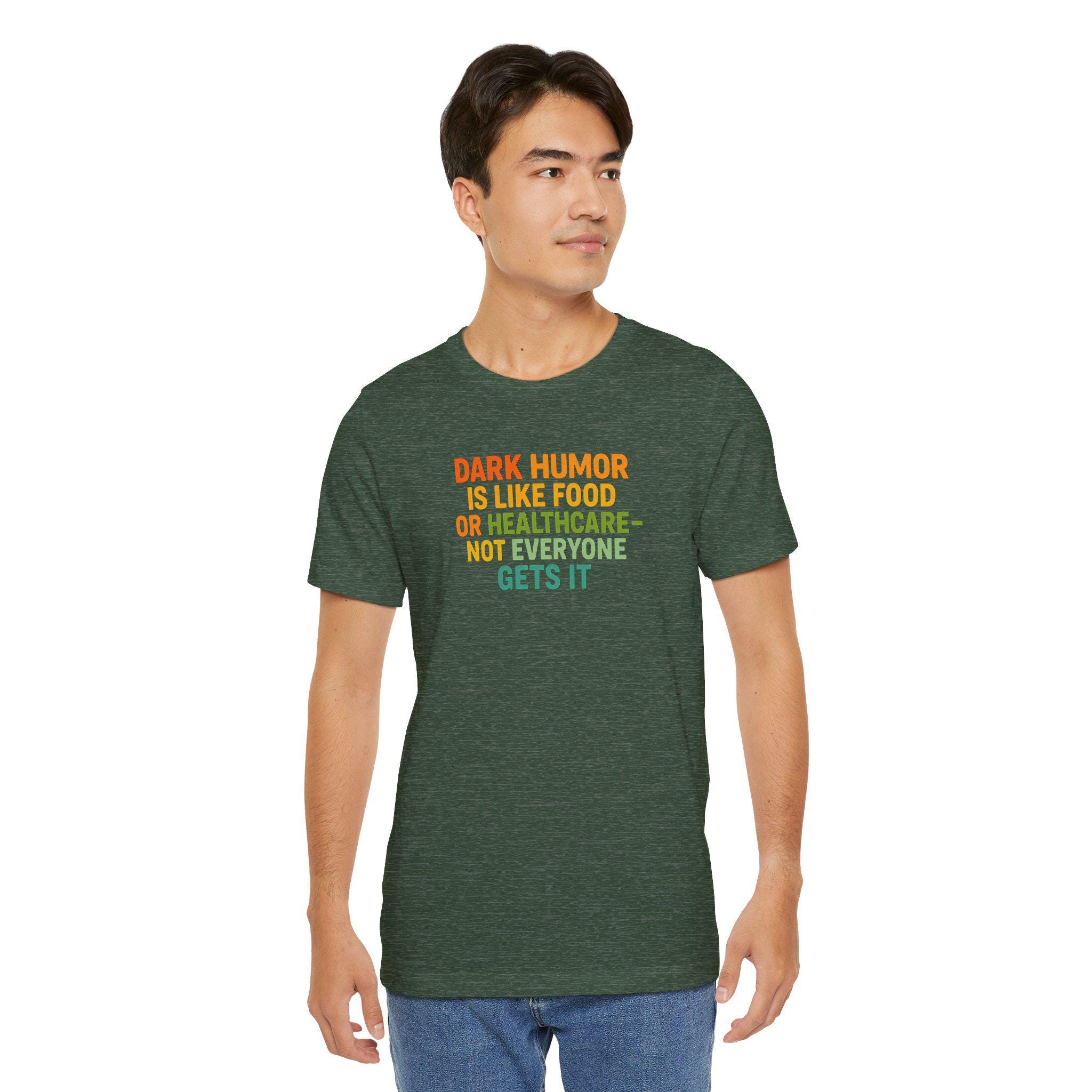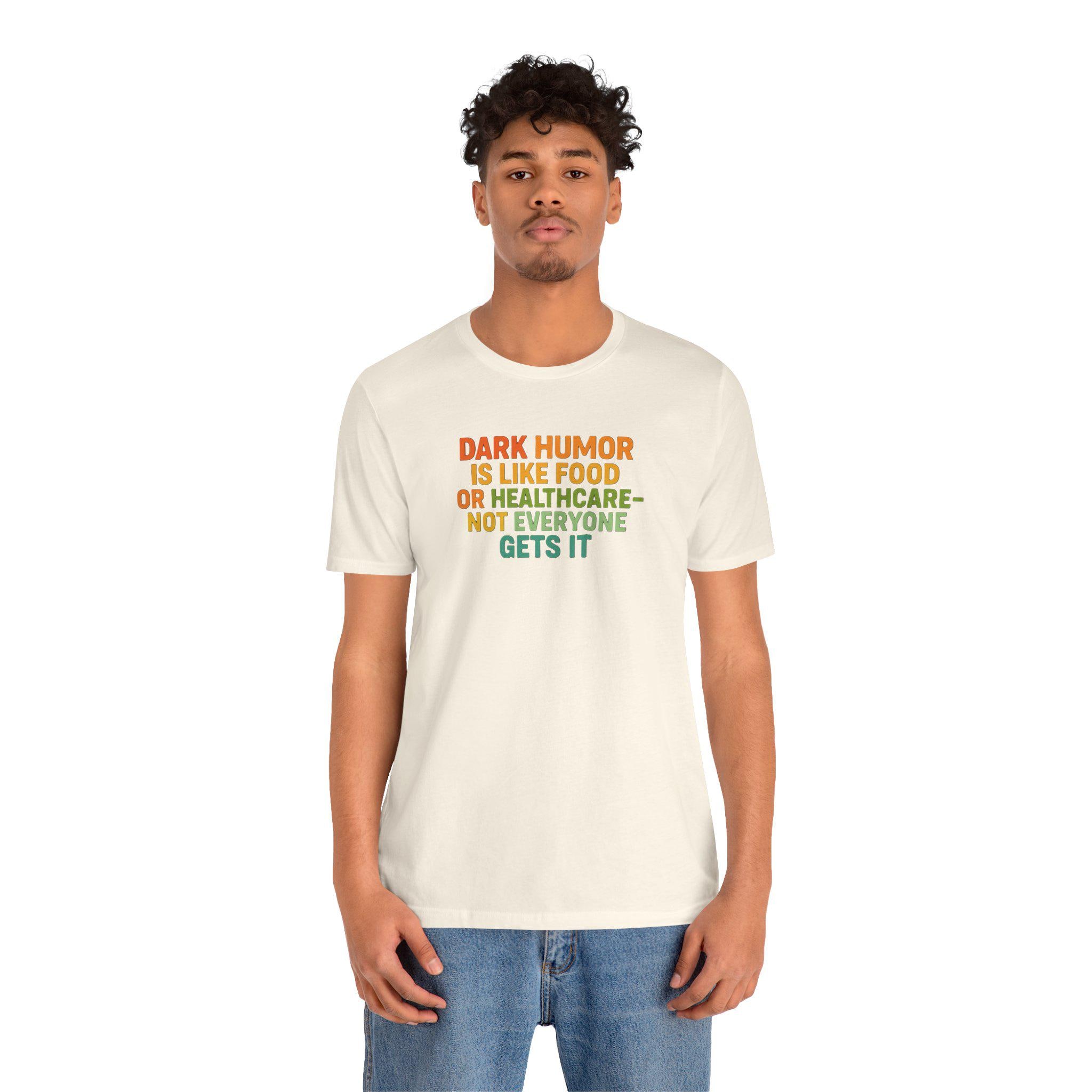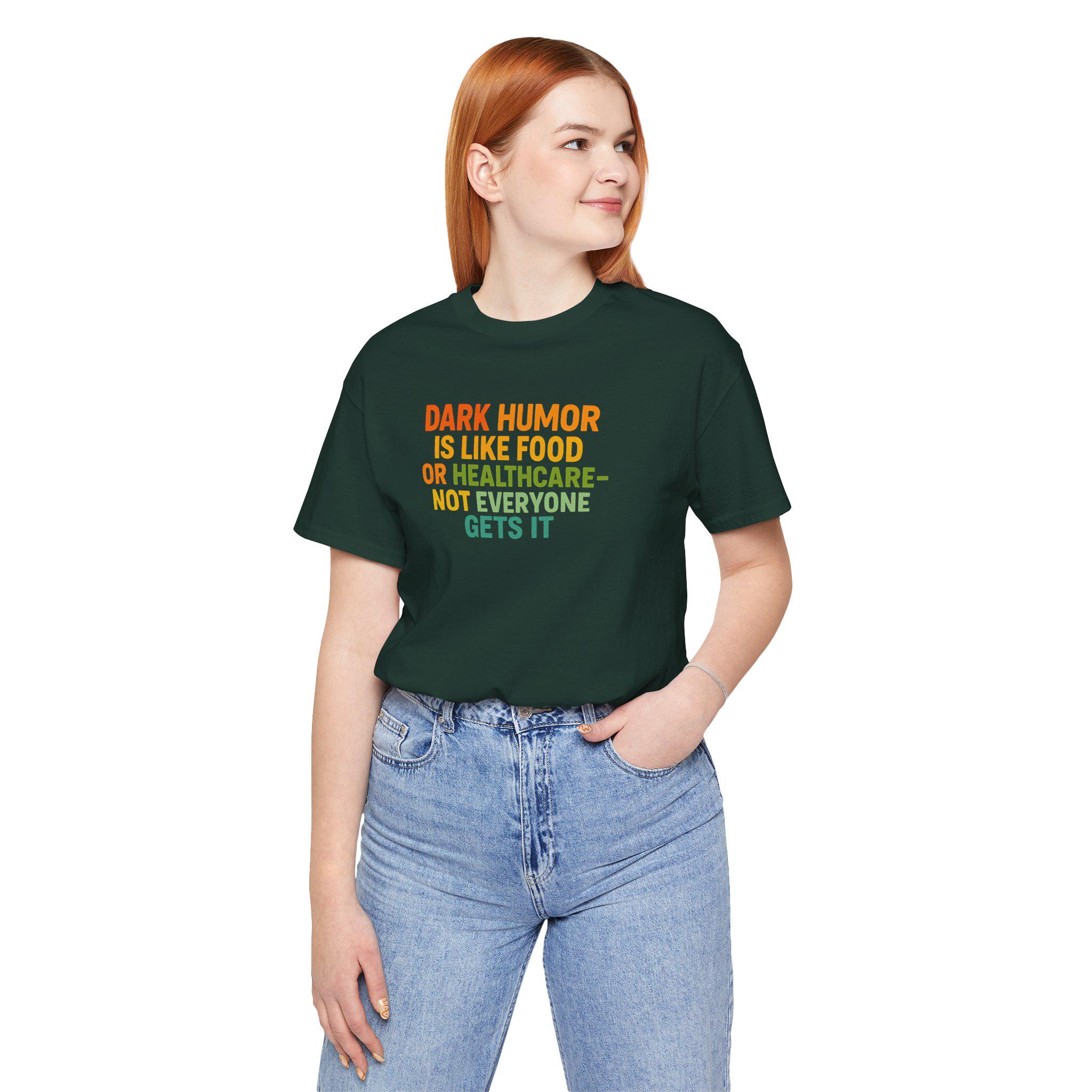 This tee speaks to the kind of person who laughs at the unexpected — the dry, sharp humor that lands when others blink. Lightweight and breathable, the shirt carries a bold, tongue-in-cheek line about dark humor like a quiet badge: confident, unapologetic, and a little wicked. Wear it on a night out with friends who get your jokes, at small gatherings where conversation skews toward the sarcastic, or tucked under a jacket for those days when you want your sense of humor to do the talking. The classic crew neck and retail fit keep the silhouette clean so the message stays front and center, while the soft Airlume cotton makes it comfortable for long evenings and casual weekends alike. This is for people who prefer clever over cutesy — and who appreciate clothing that matches their wit.