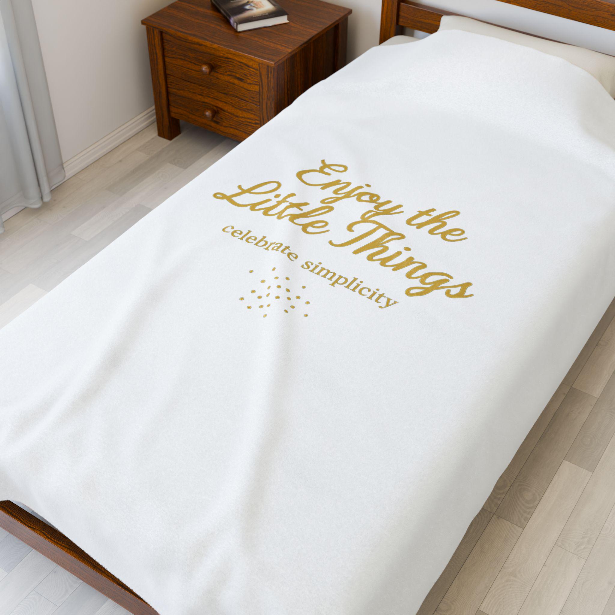 Soft velveteen blanket with a restrained gold-accented script and a tiny constellation motif on a matte cream ground — a quiet-luxury take on seasonal shimmer. The design pairs thin, elegant lettering with a subtle metallic-looking accent to read as refined and calm rather than ornate. Lightweight but cozy, it layers easily on a sofa or bed to add a whisper of minimal luxe to everyday moments.
