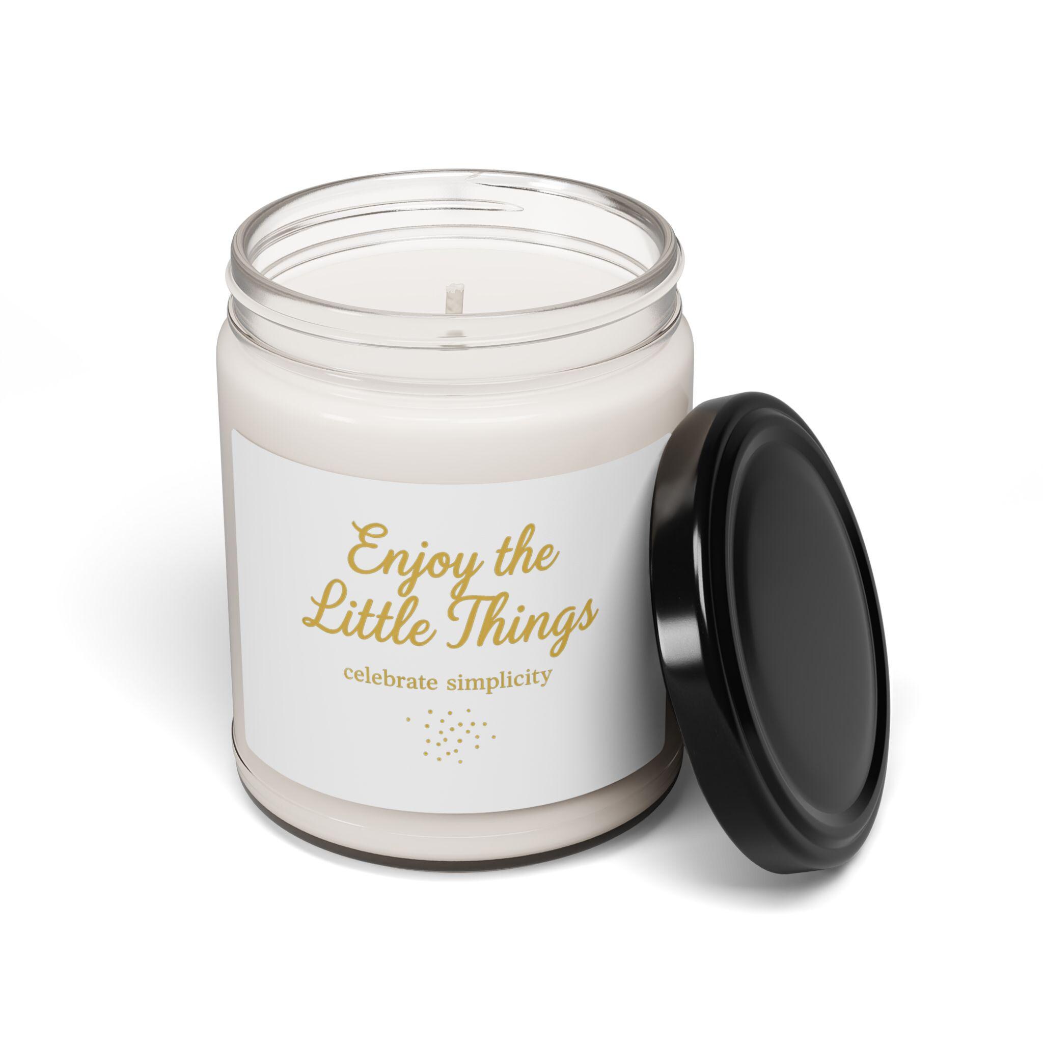 Matte cream soy candle with a delicate gold-script label that speaks to quiet luxury and minimal luxe design. The artwork is a single elegant phrase in thin metallic lettering set against a clean matte ground, creating a serene, refined accent for mantle, bedside, or workspace. Suits shoppers who favor understated metallic lines and timeless neutral palettes — a subtle seasonal touch that remains wearable year-round.