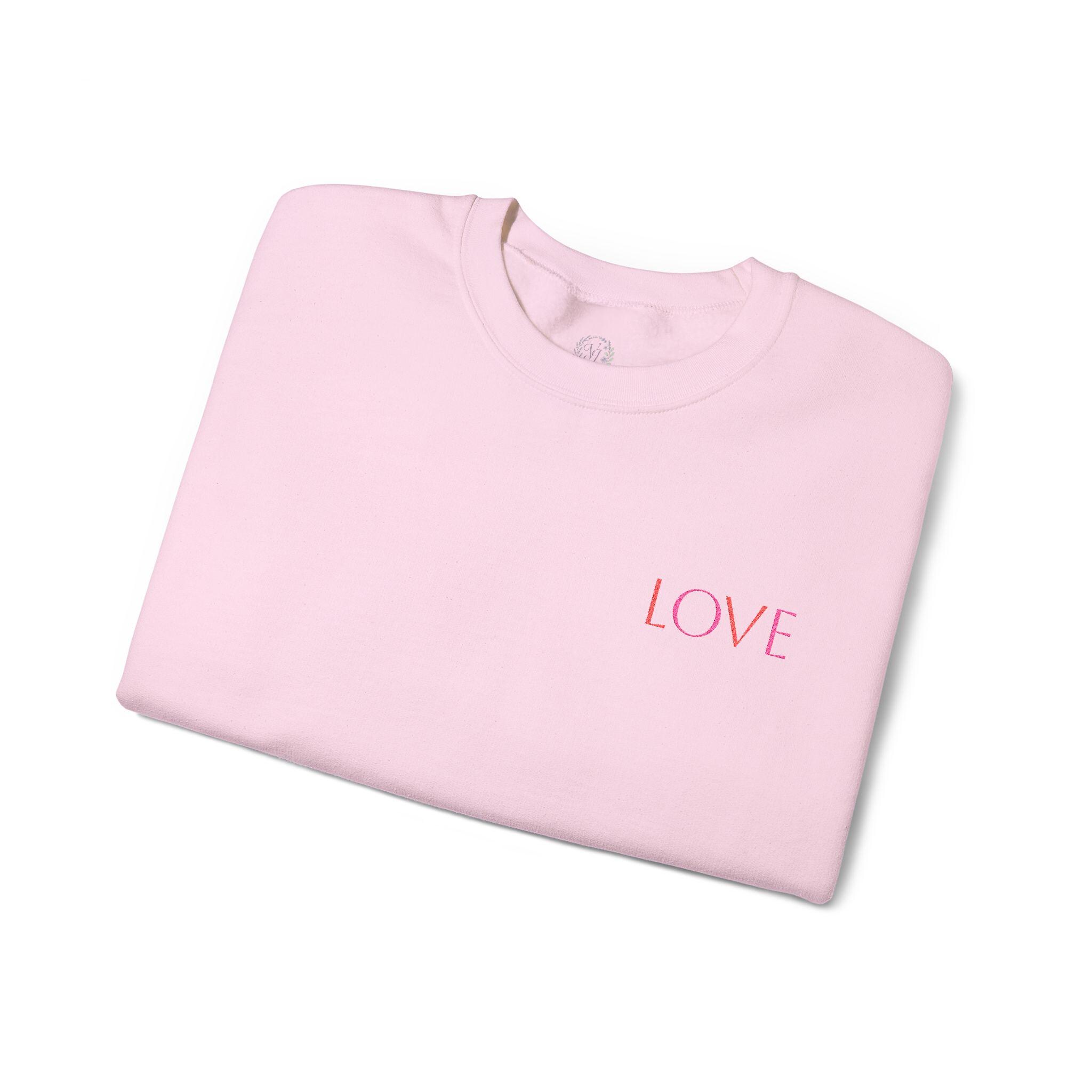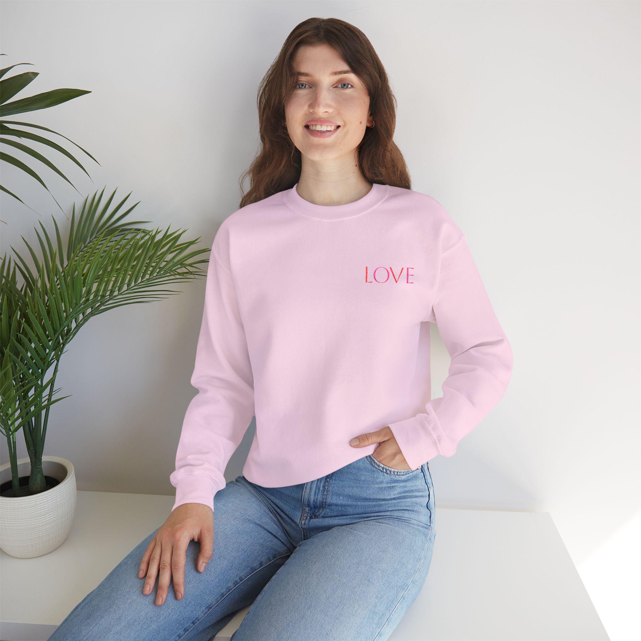 A soft, clean-lined crewneck that reads like a quiet declaration. This medium-weight sweatshirt wraps you in a plush 50/50 cotton‑poly blend that holds shape and color wash after wash. The embroidered 'LOVE' on the chest is subtle—delicate pink stitching that feels personal, not loud—so the sweatshirt slips easily into mornings with coffee, slow walks, or evenings curled up reading. The fit is classic and roomy without swallowing your frame; ribbed collar and cuffs keep their form while double-needle stitching strengthens every seam. Thoughtfully made with OEKO‑TEX dyes and US cotton standards, it’s a laid-back staple that whispers rather than shouts.