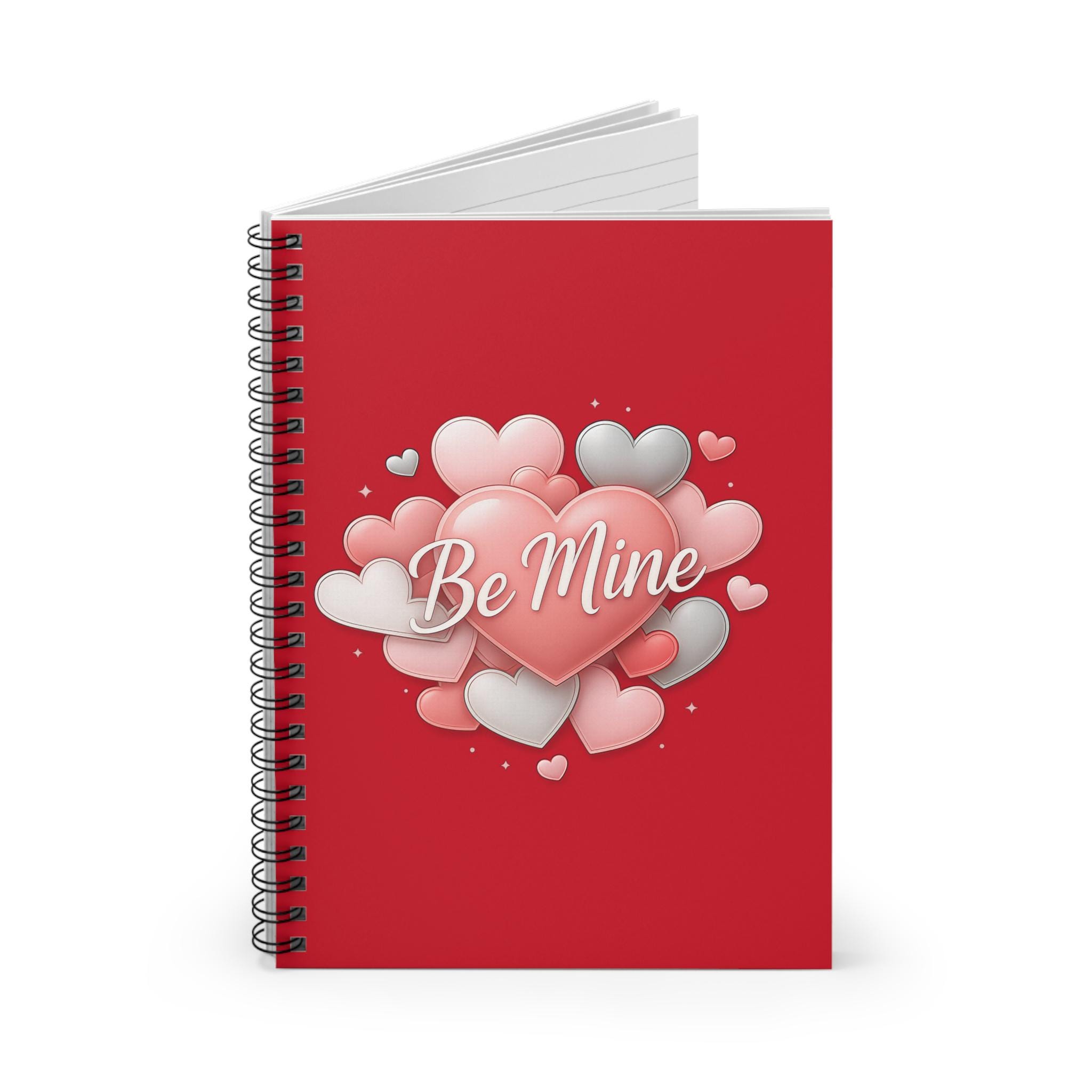 A small spiral-bound notebook that brings a warm, personal touch to everyday notes. The front cover features a sweet "Be Mine" Valentine heart design that feels like a handwritten note left on a table. Inside, ruled pages encourage steady handwriting and thoughtful lists. The compact 6" x 8" size fits into a tote or bedside stack, while the inside document pocket keeps loose mementos or receipts tucked safely away. The metal spiral lets pages flip flat or be removed cleanly when you want to share a page or tuck a love note into an envelope. Use it for quick journal entries, to-do lists, or secret scribbles — it sits comfortably in the corner of quiet moments and small rituals.