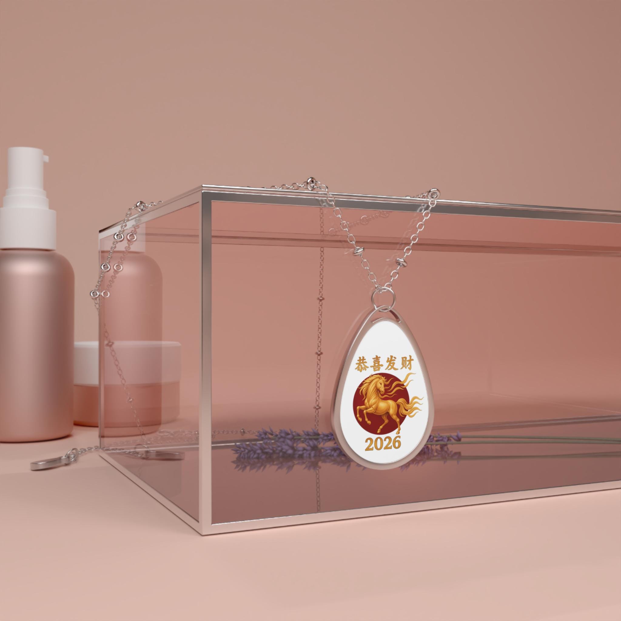 This oval (ellipse) pendant necklace carries a warm, personal feeling — glossy, detailed color sits on a smooth white aluminum face framed by a polished zinc-alloy bezel. The art rests under a clear glossy finish that keeps colors vivid and crisp, while the delicate chain with lobster clasp feels reliable and easy to wear every day. It settles close to the collarbone and reads like a small keepsake: a little emblem you can carry into gatherings, quiet mornings, or travel. The design shown evokes tradition and the coming year, but the pendant also welcomes personalized artwork or meaningful symbols to make the piece uniquely yours.